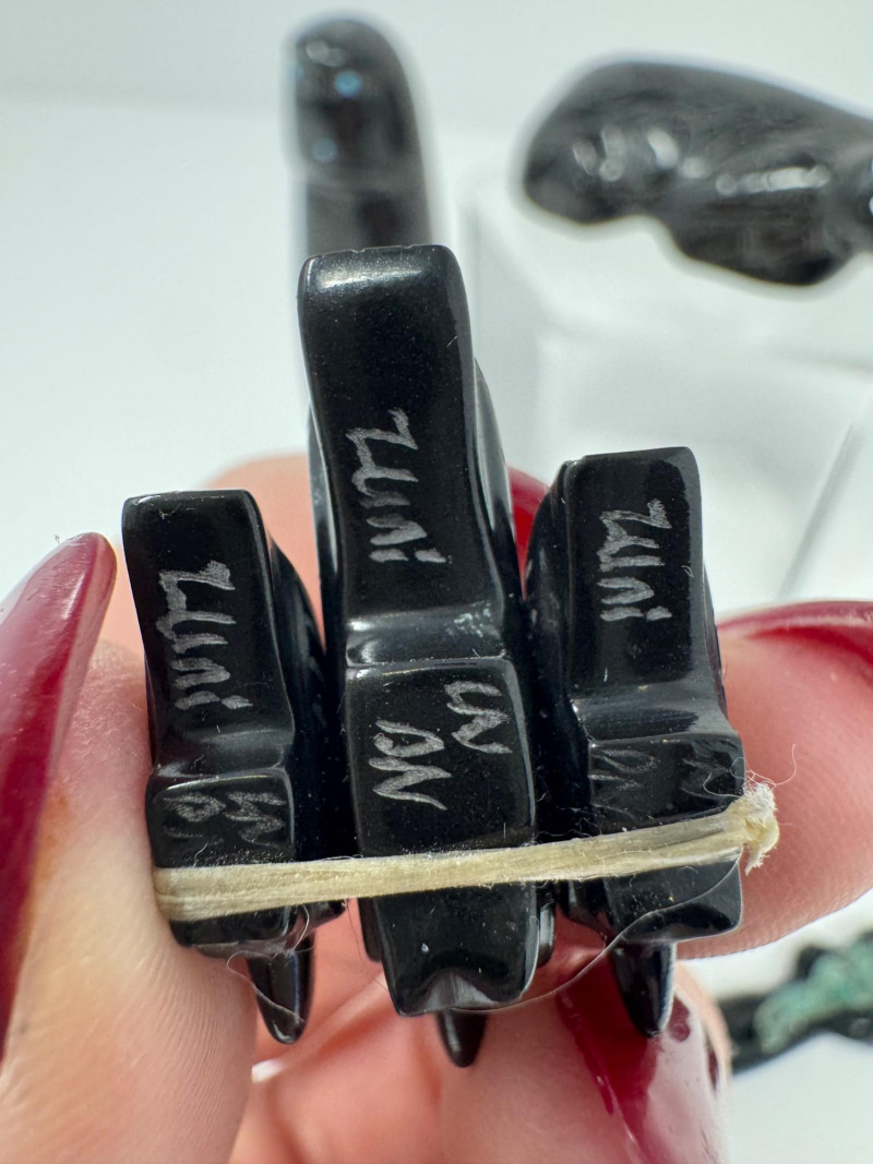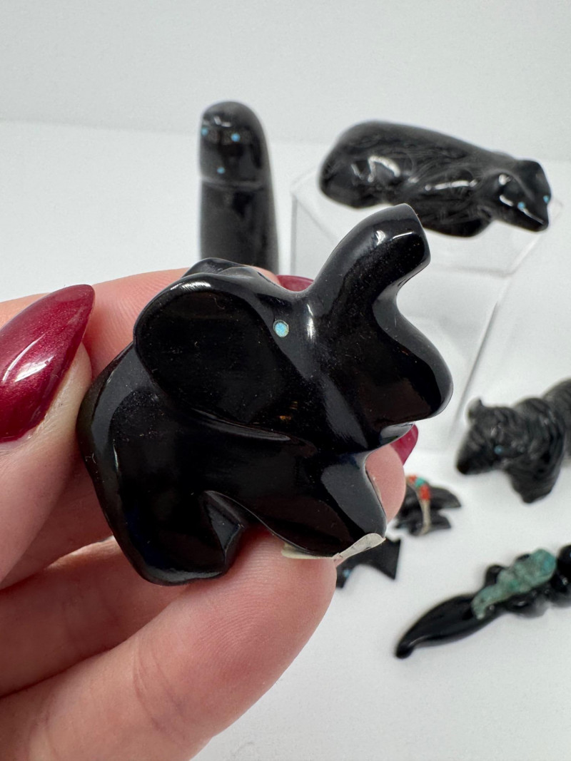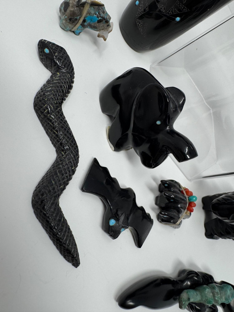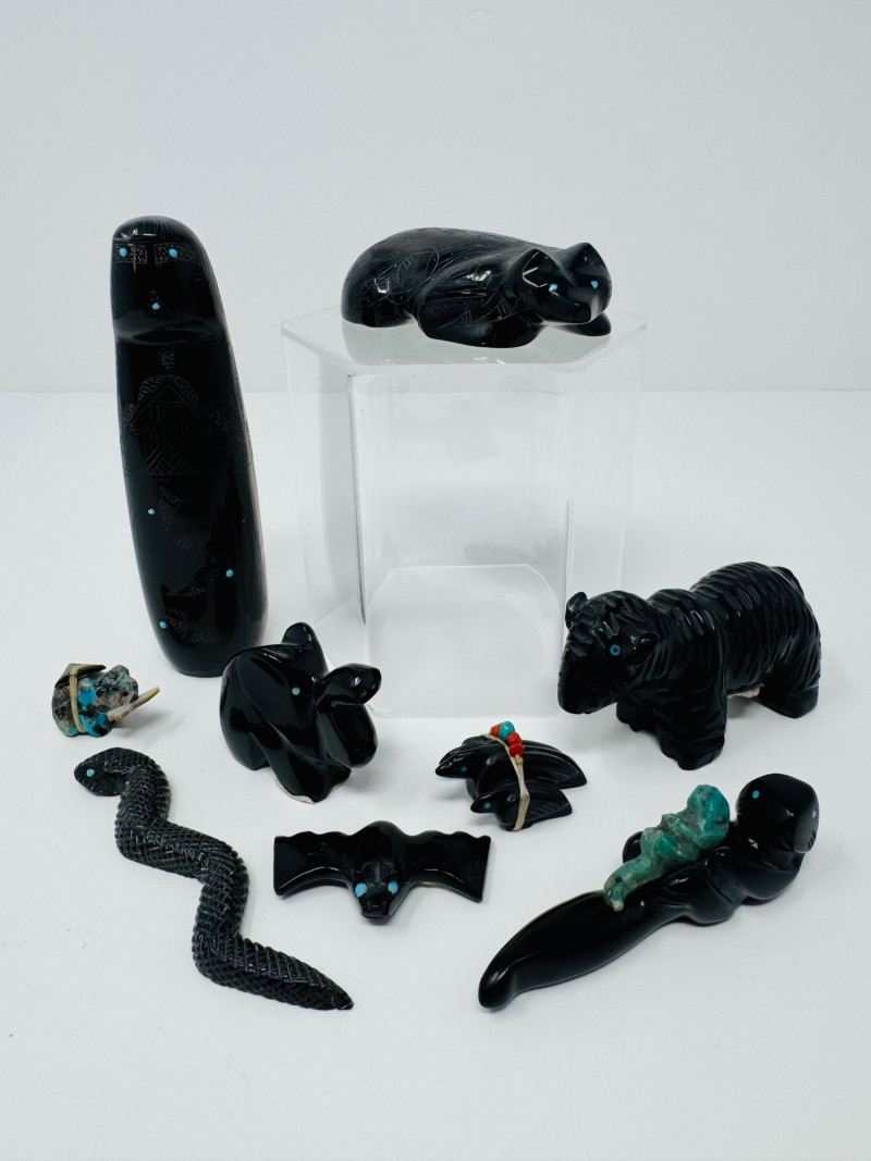 Lot # 81 - Set of 9 Carved Zuni Stone Fetishes – Signed Artists