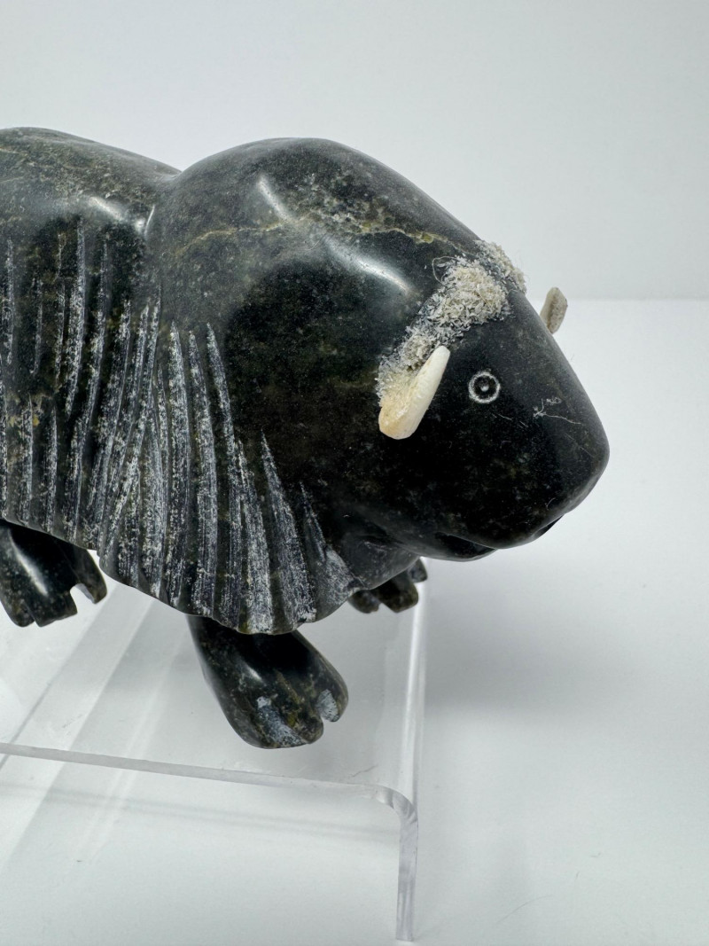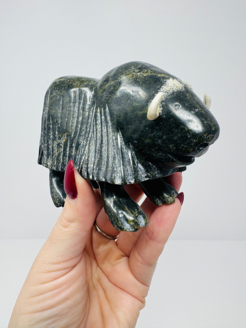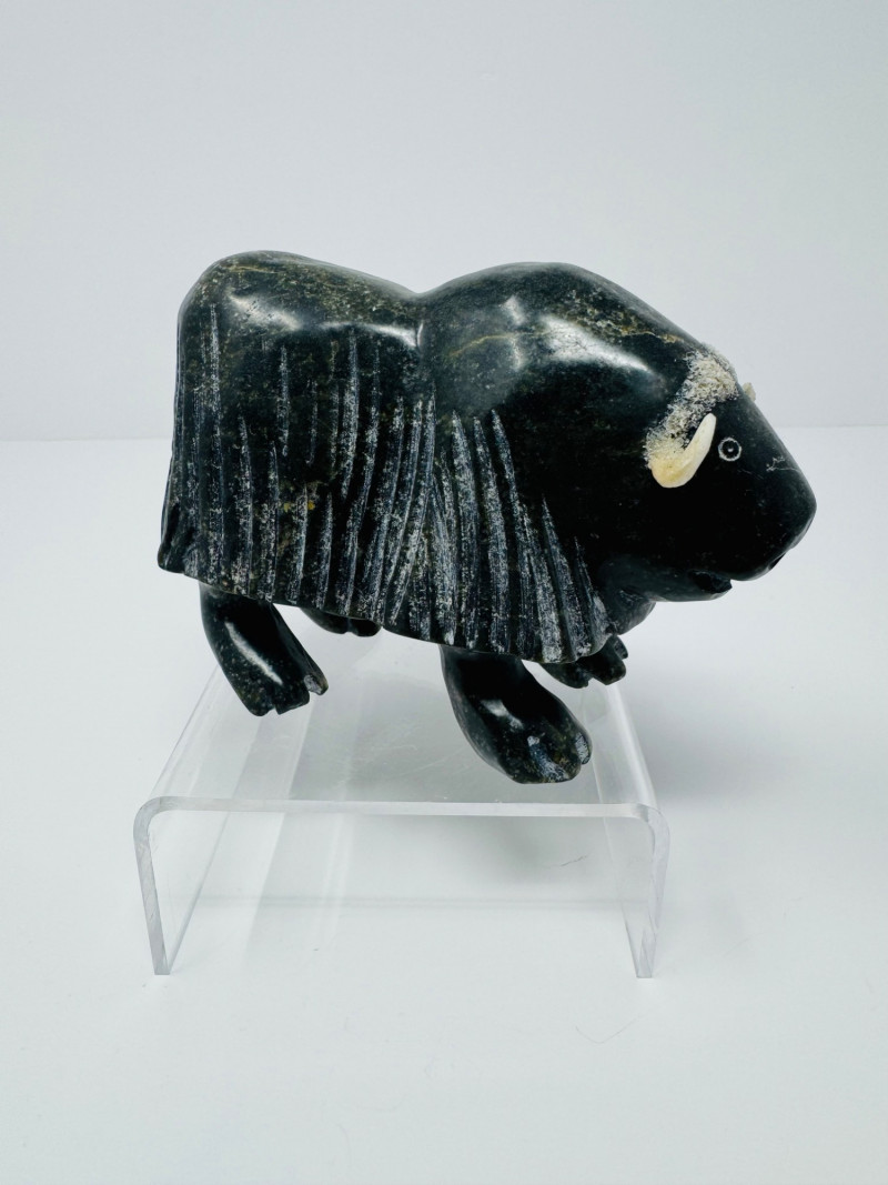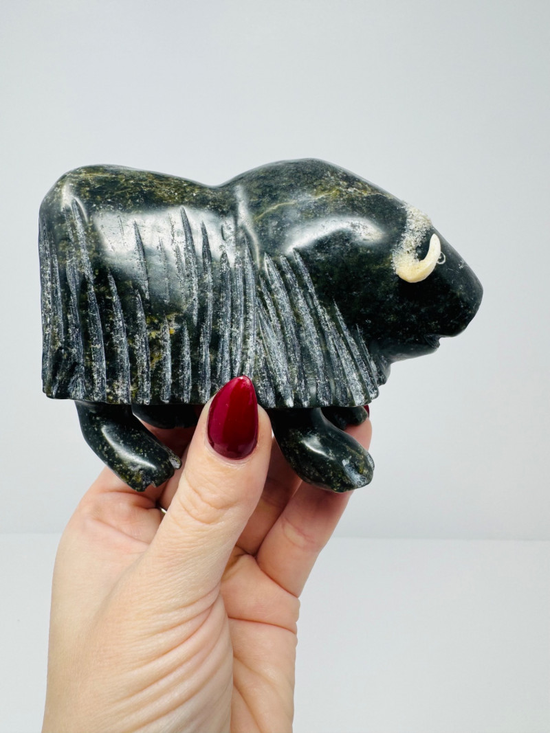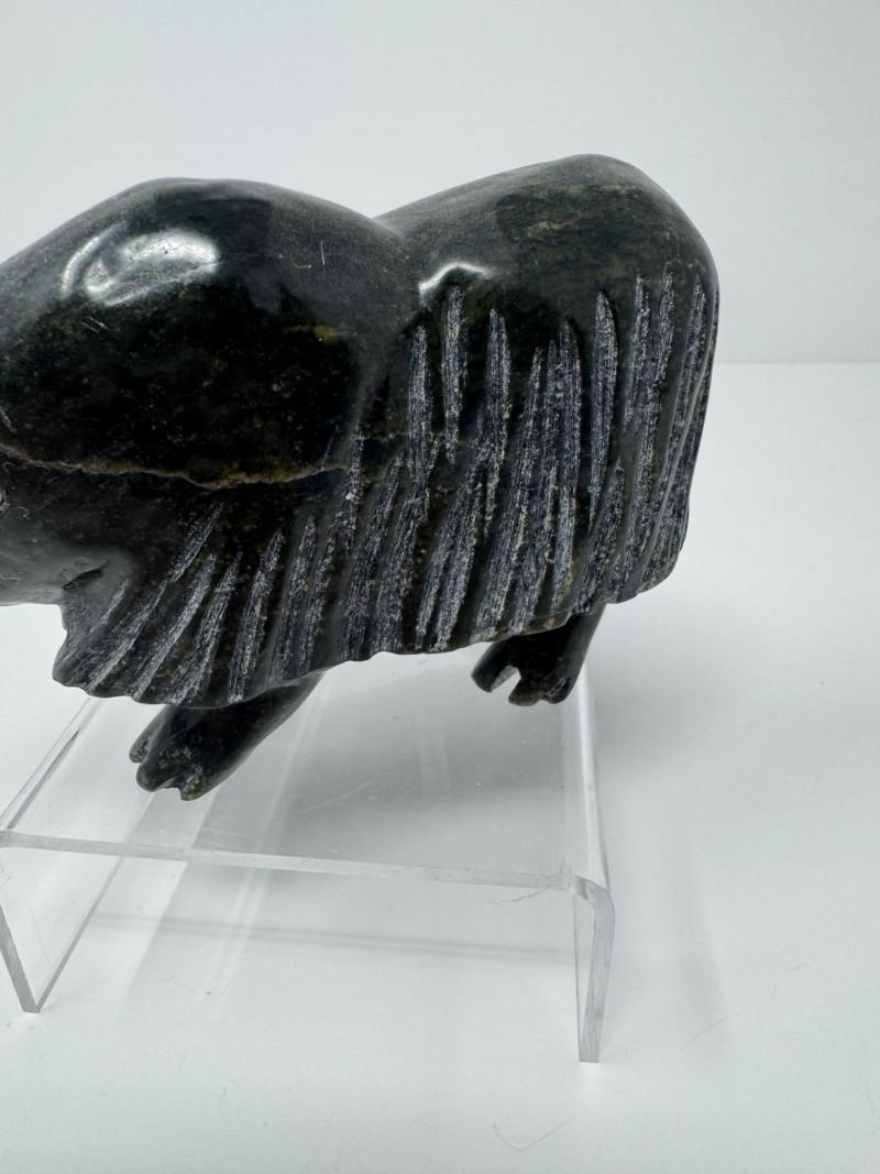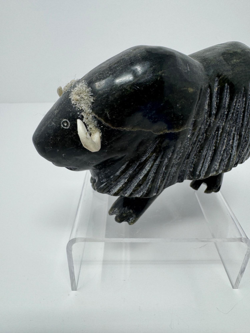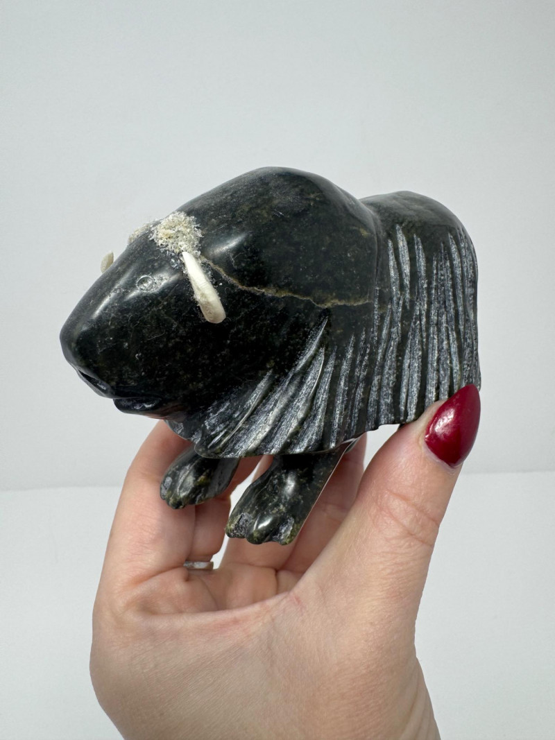 Inuit Carved Stone Muskox – Signed David Qimirpik, Cape Dorset.