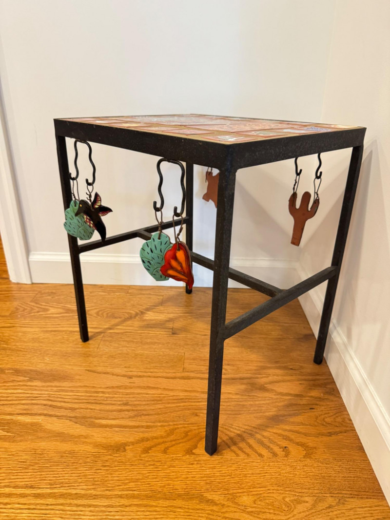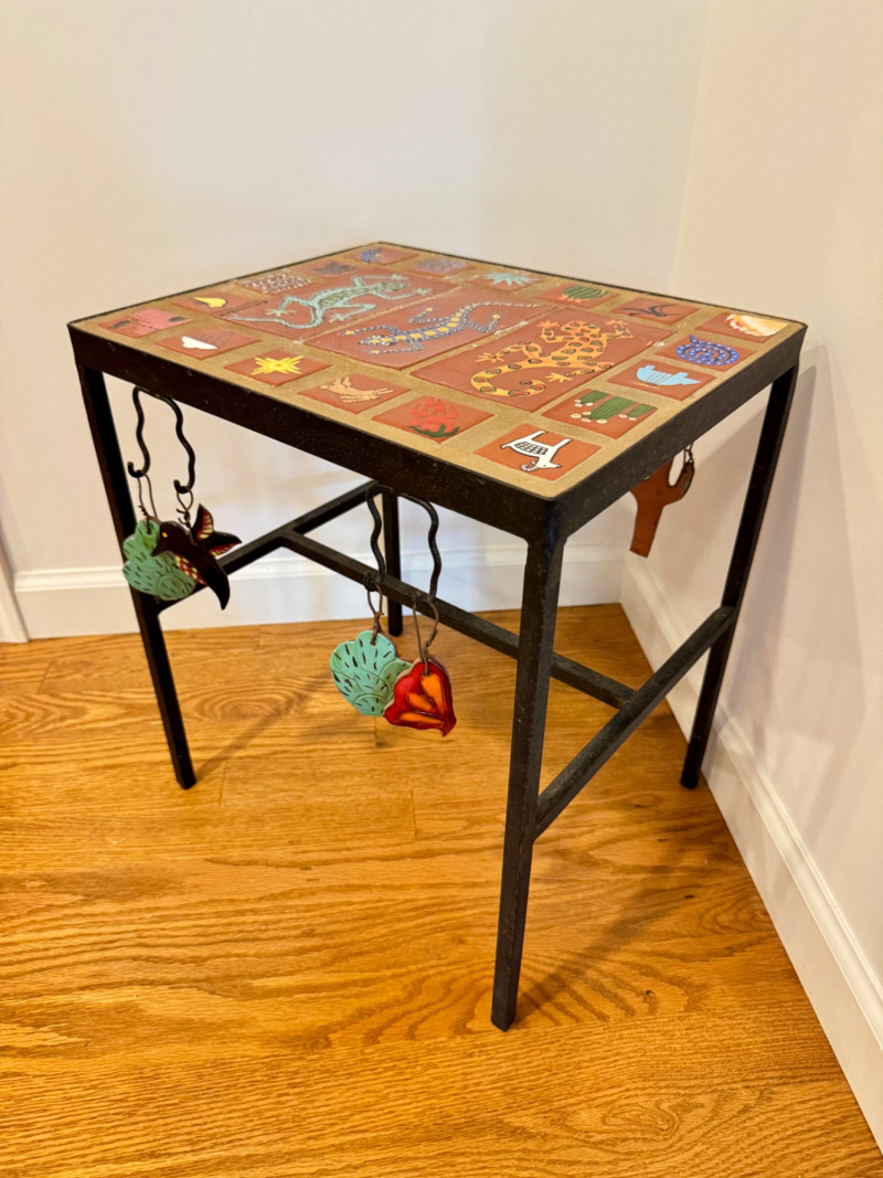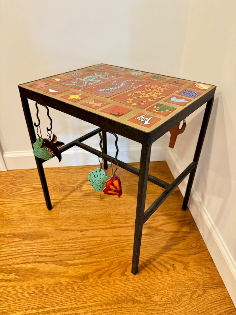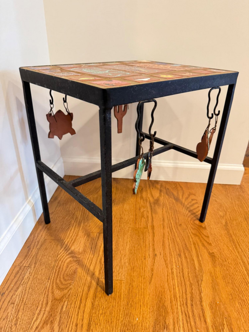 Hand-Painted Southwest Tile & Iron Accent Table – Signed.