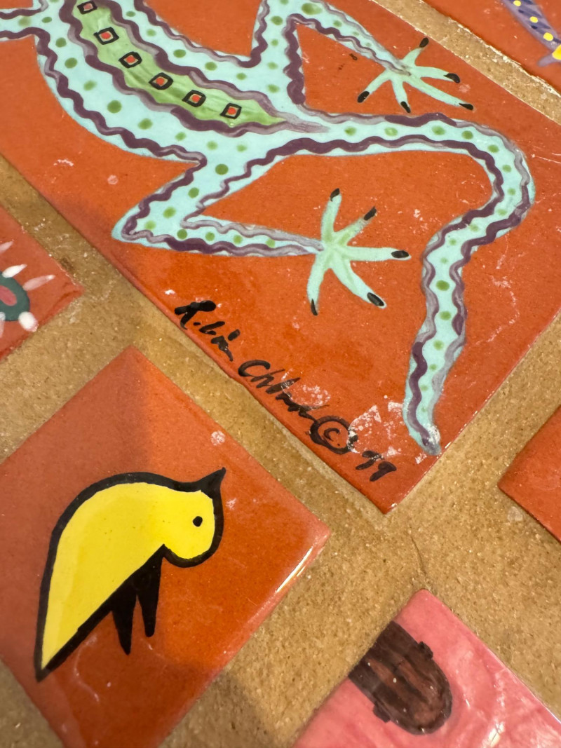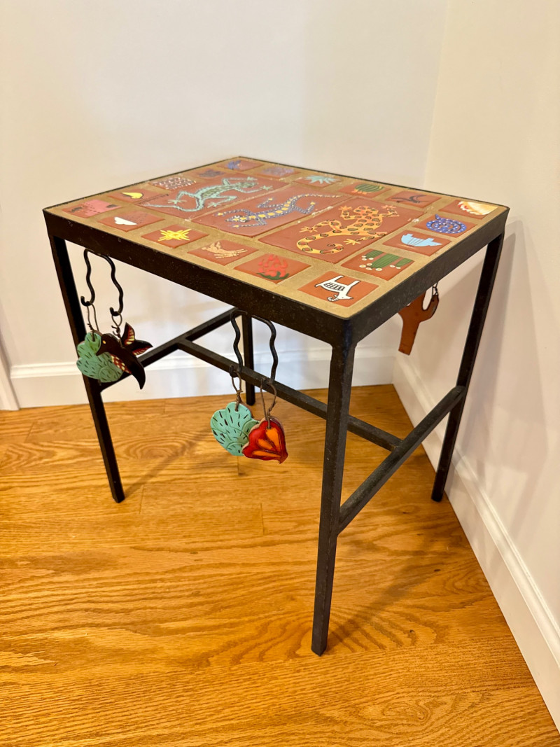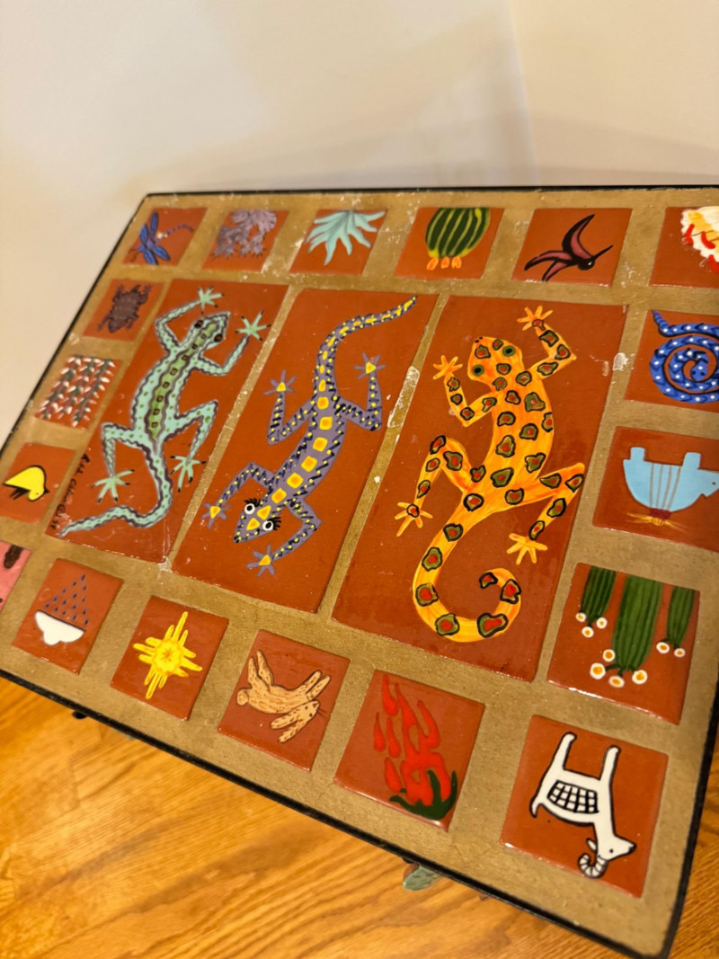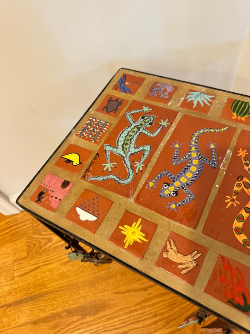 Hand-Painted Southwest Tile & Iron Accent Table – Signed.