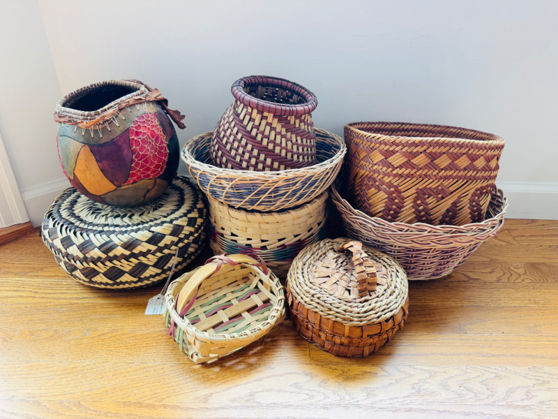 Collection of 9 Handwoven Baskets – Tarahumara, Mexican & Folk.