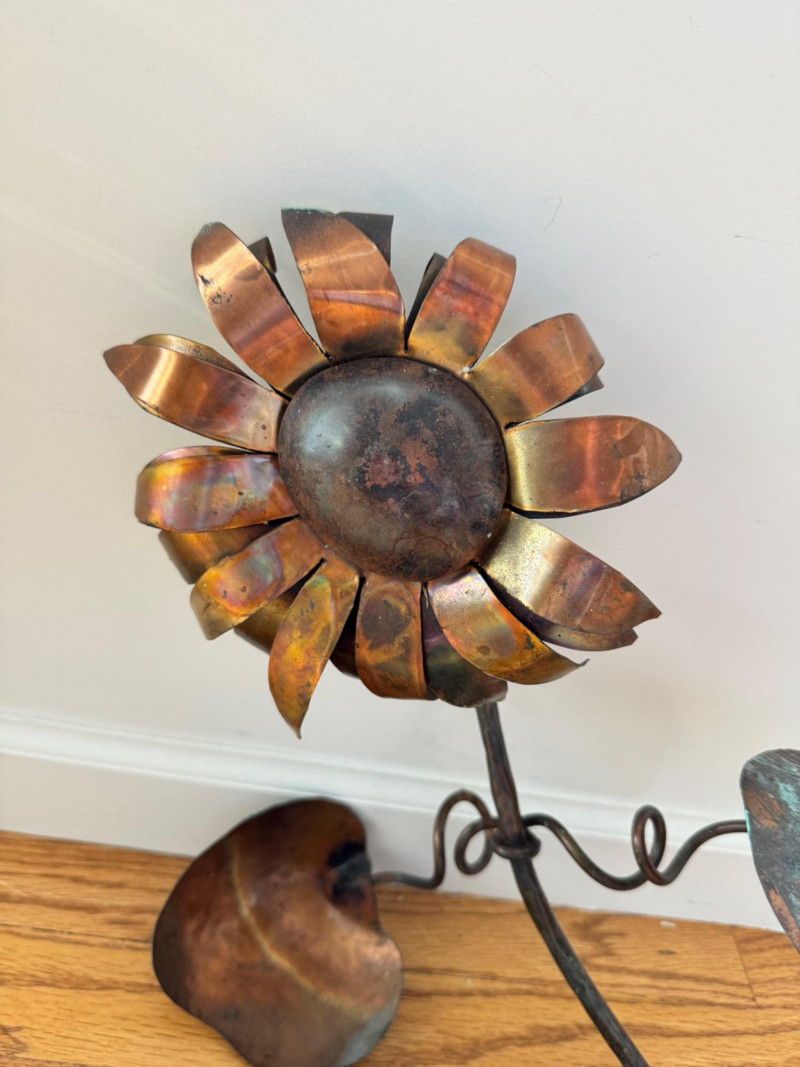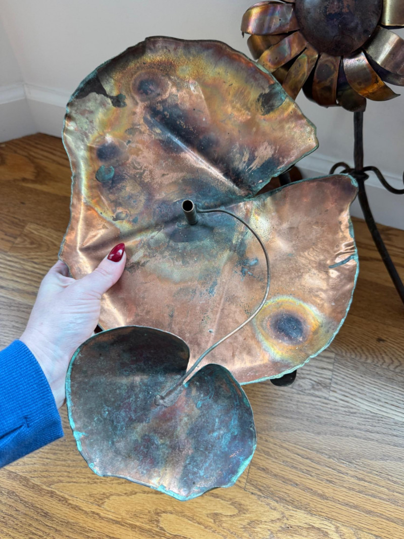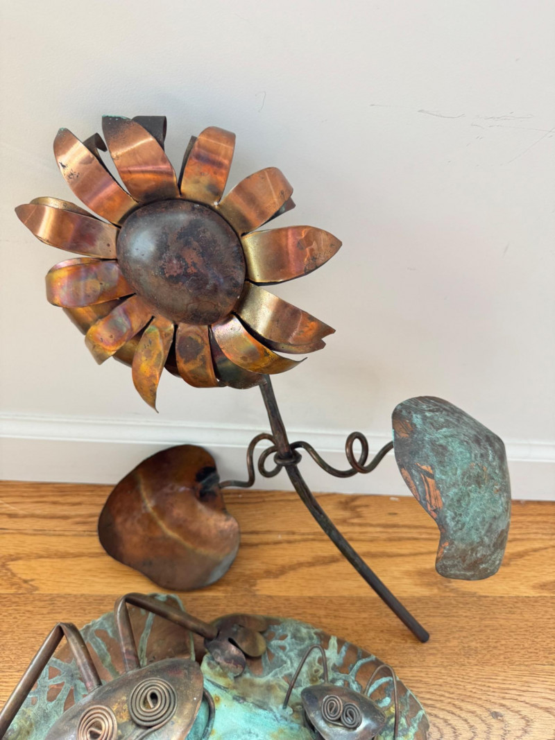 Copper Yard Art Sculpture – Sunflower, Lily Pads & Frogs.
