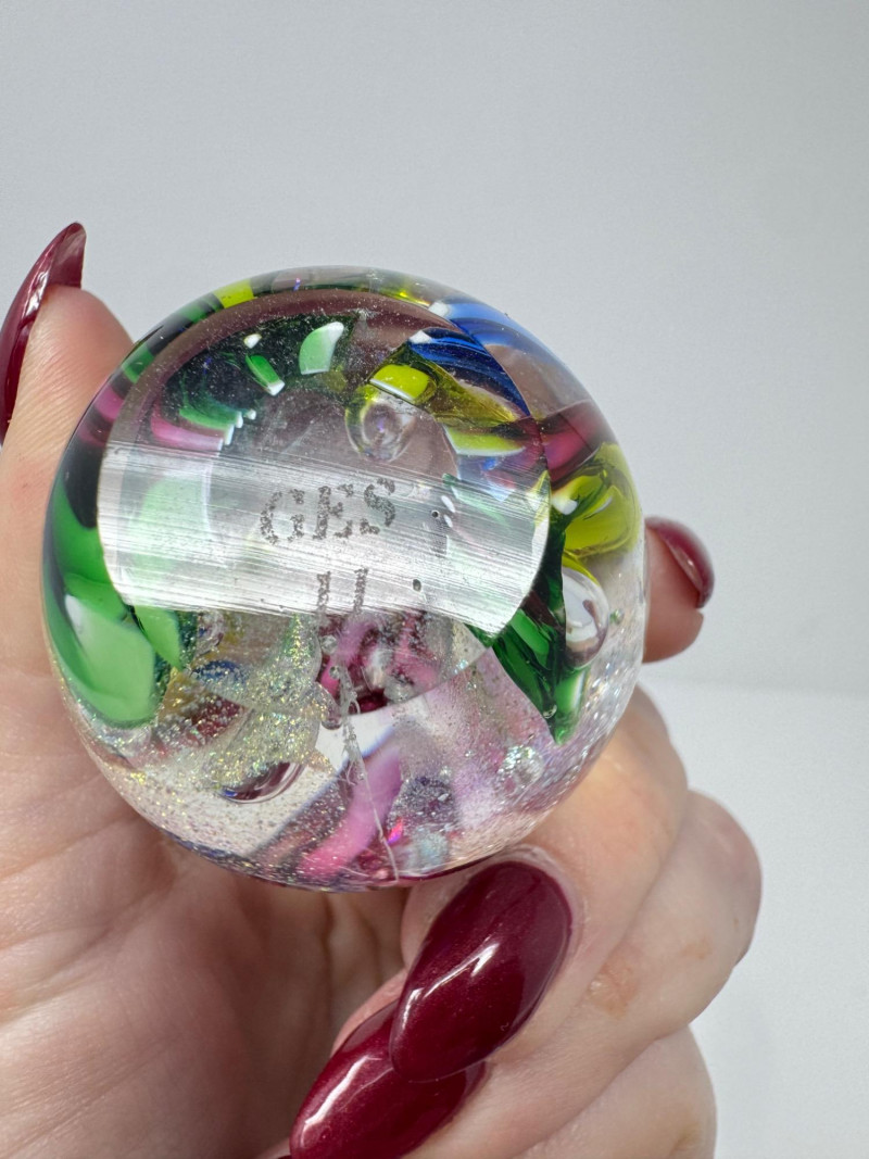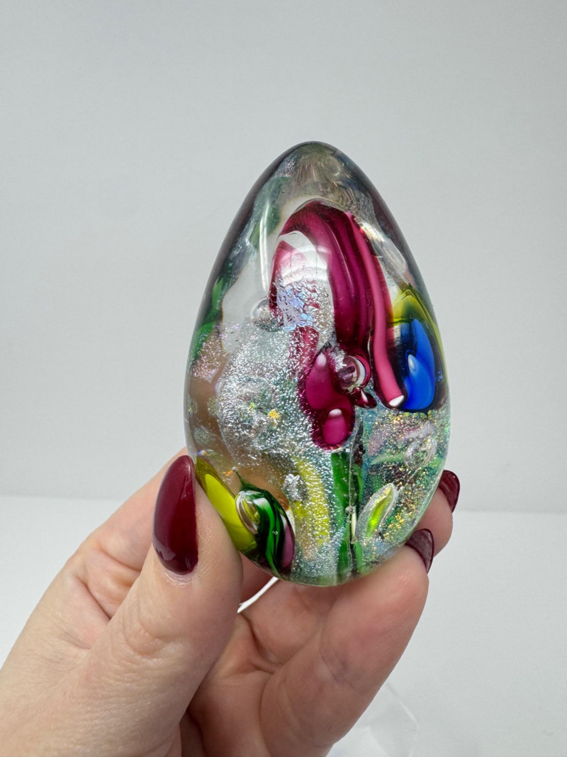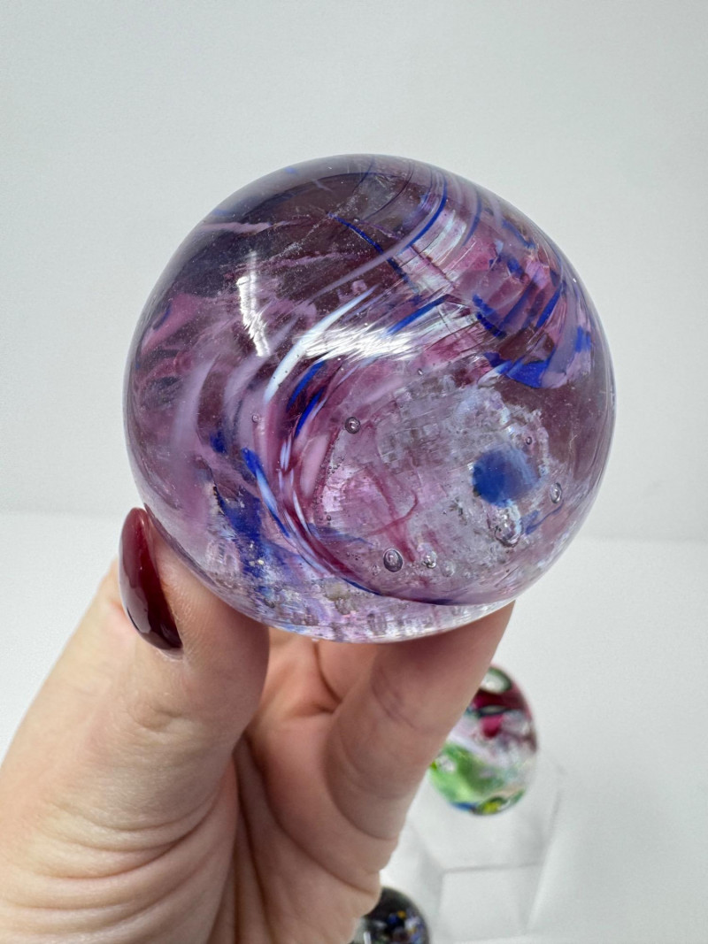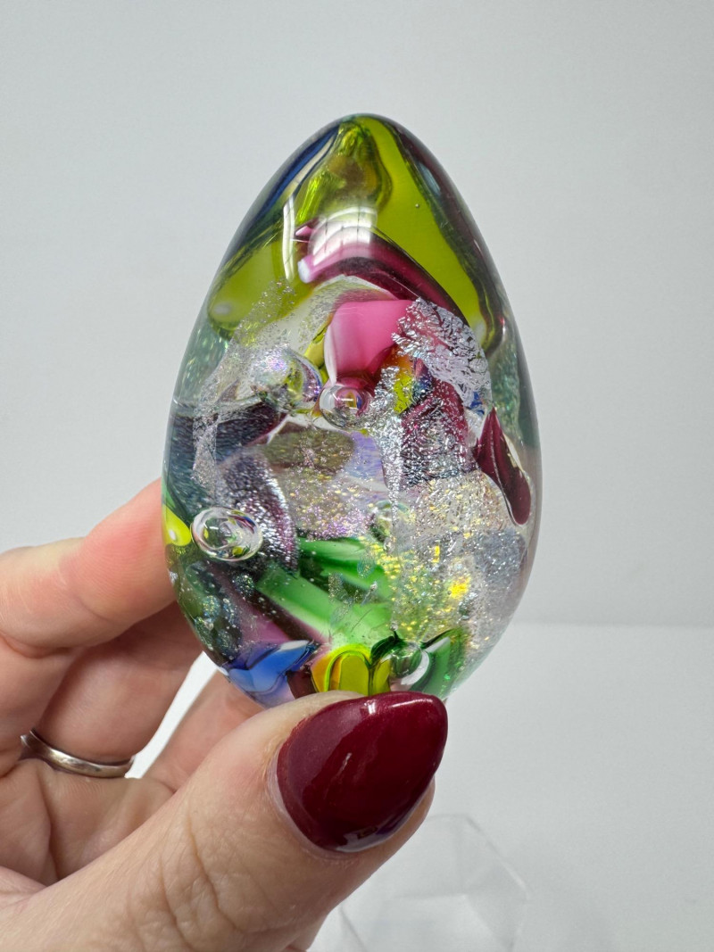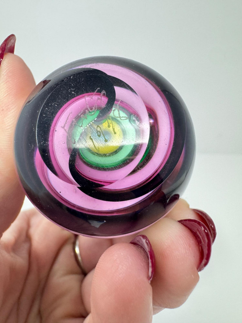 Blown Glass Paperweights & Sculptures – Some Signed. Includes vibrant abstract, swirl, and millefiori-style designs