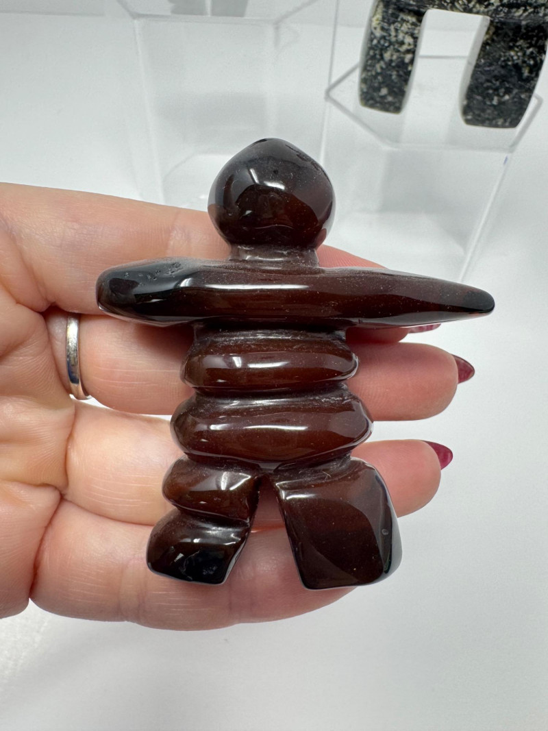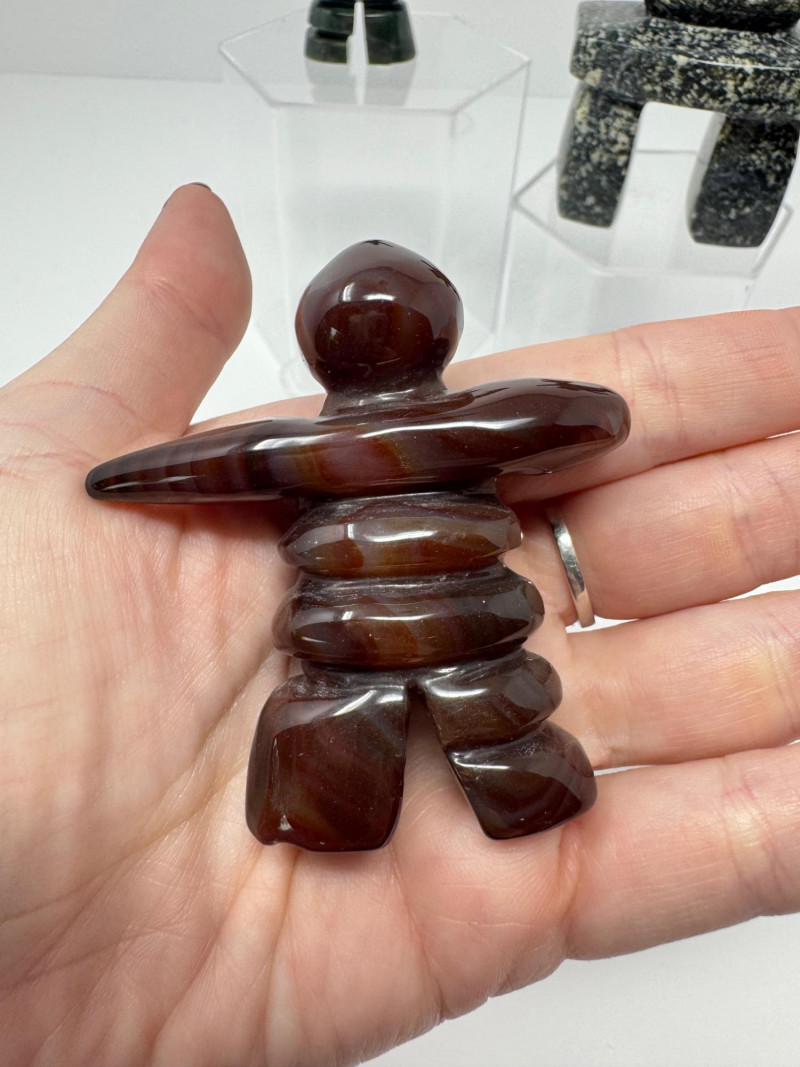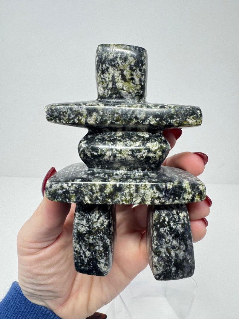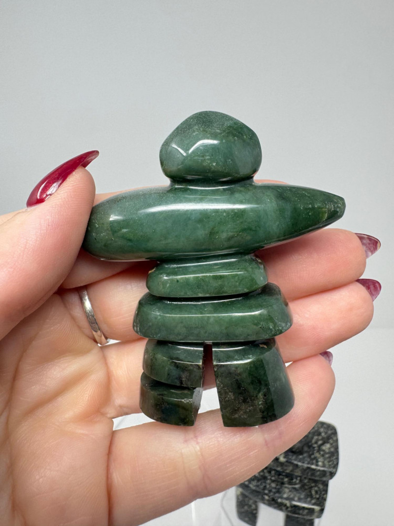 Set of 3 Stone Inukshuk Sculptures – Jade, Marble, Reddish Stone. Disclaimer: Stones and minerals are not tested for authenticity, origin, or treatment. Offered as-is from visual assessment only. No refunds based on identification or quality.