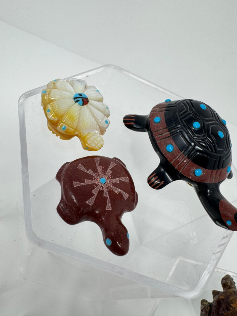 Lot # 102 - Zuni Tribe Turtle Fetishes & Other Carvings – Many Signed