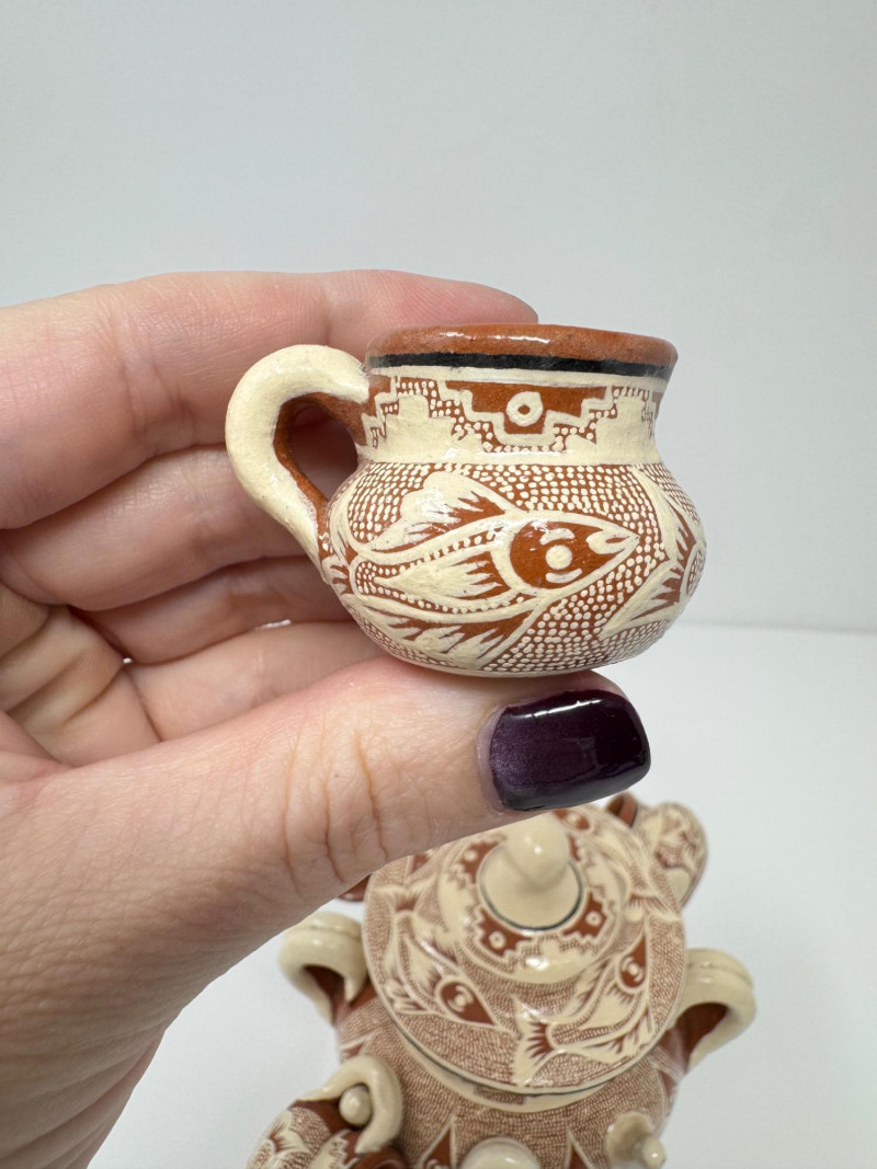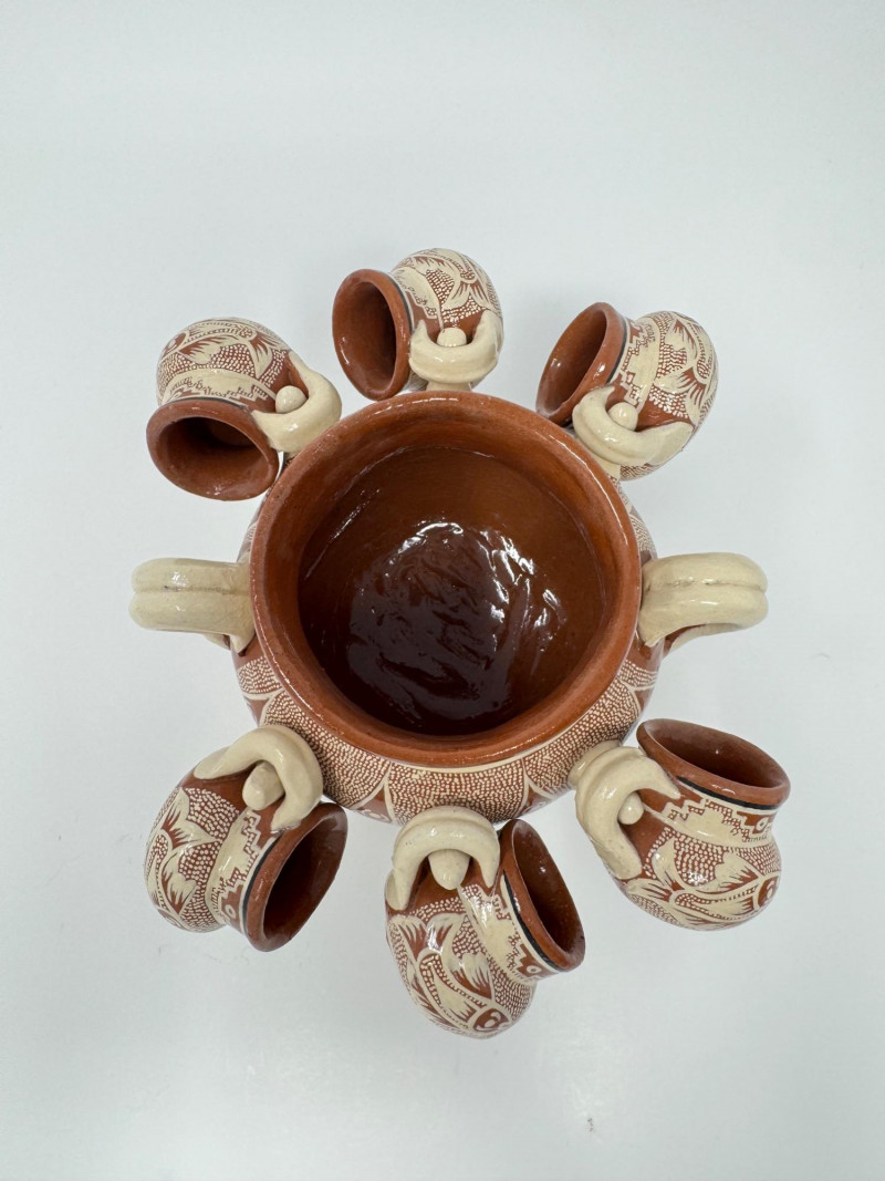 Mini Mexican Ponchera w/ 8 Attached Miniature Handled Cups.