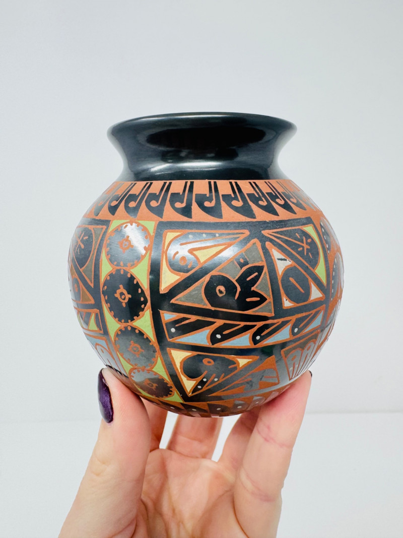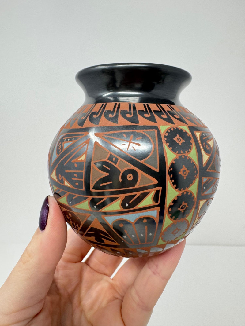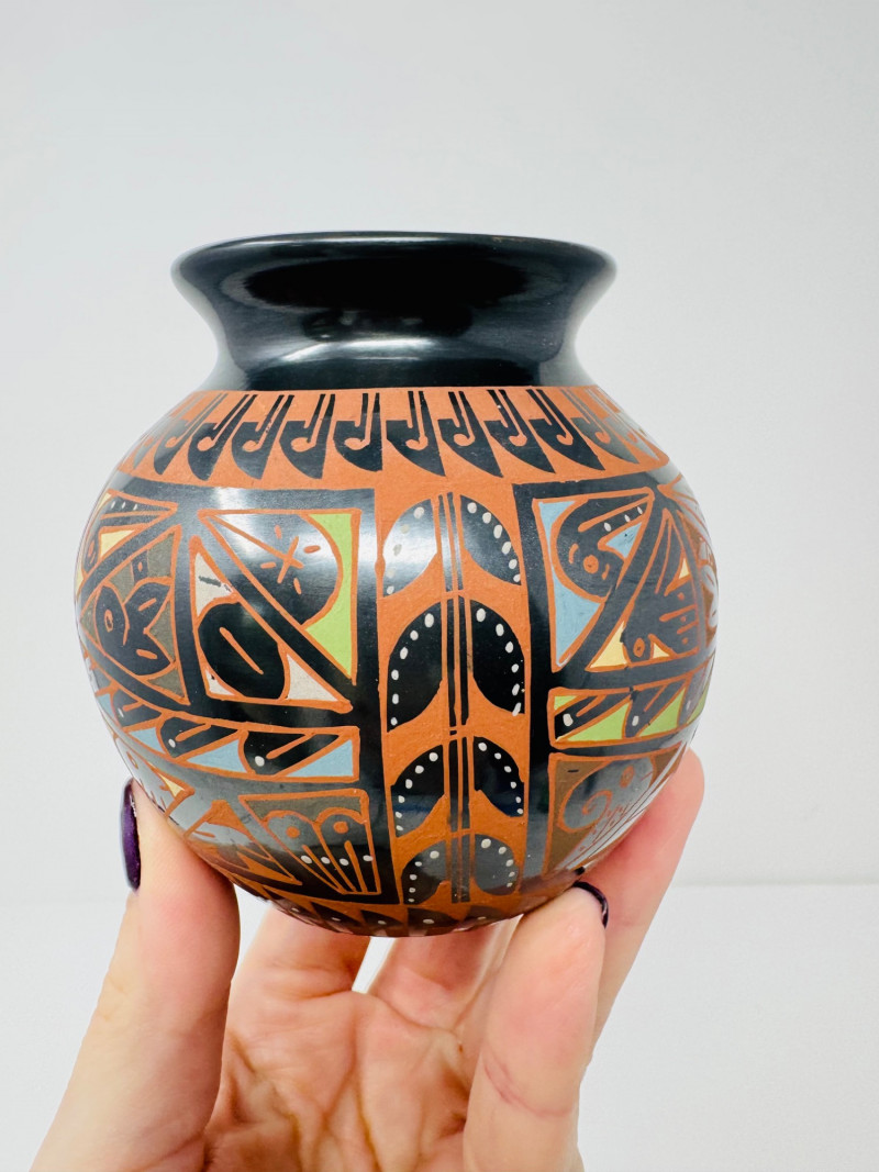 Mata Ortiz Mini Pottery Jar Design by Naty Ortega & Cesar Nuñez.