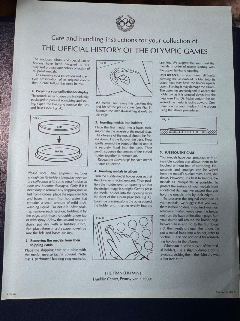 Franklin Mint Sterling Silver Olympic Games 50-Medal Proof Set - 980g.