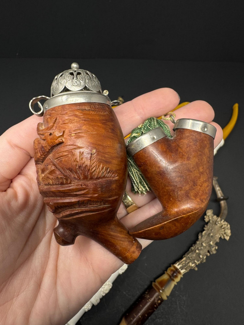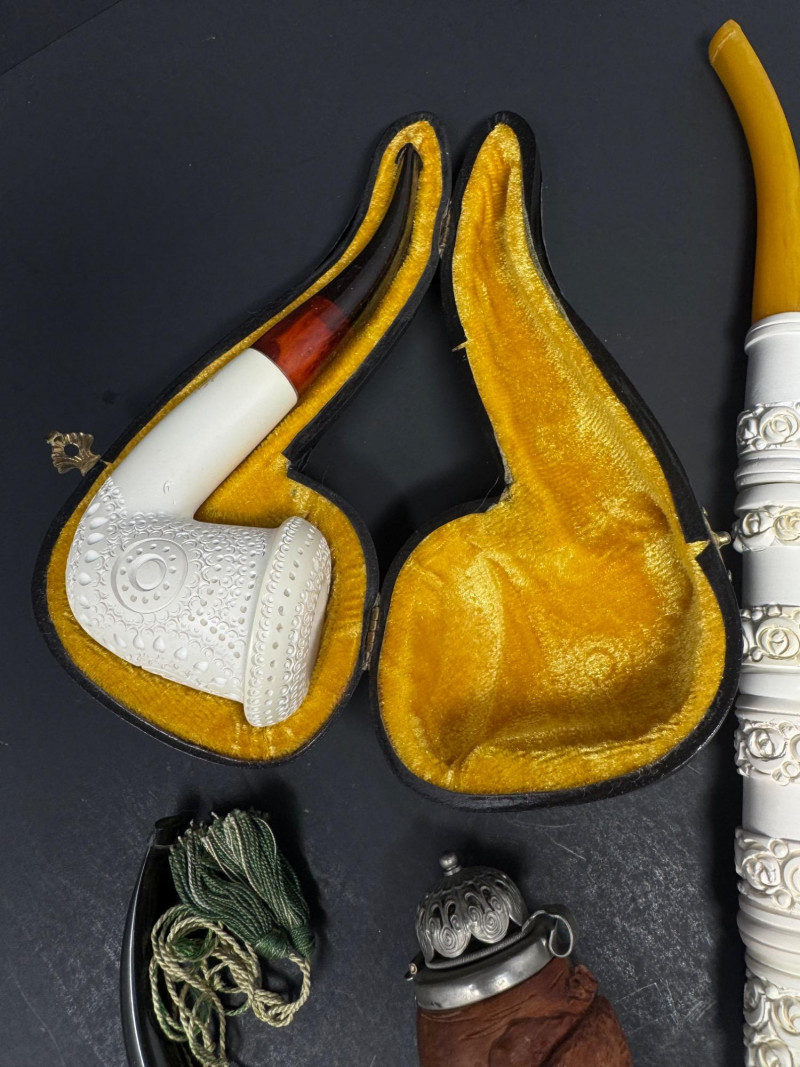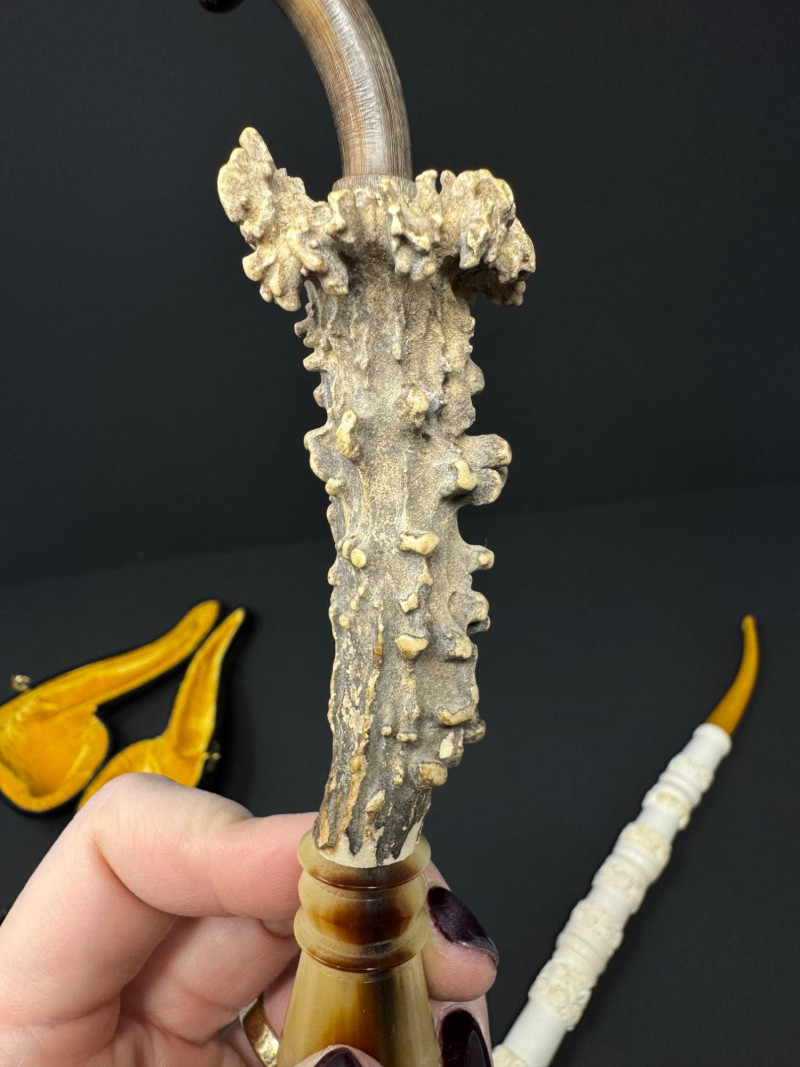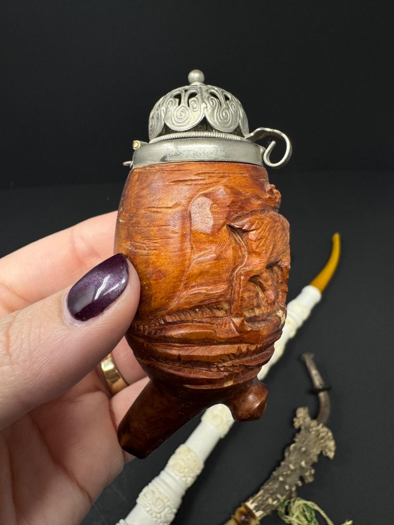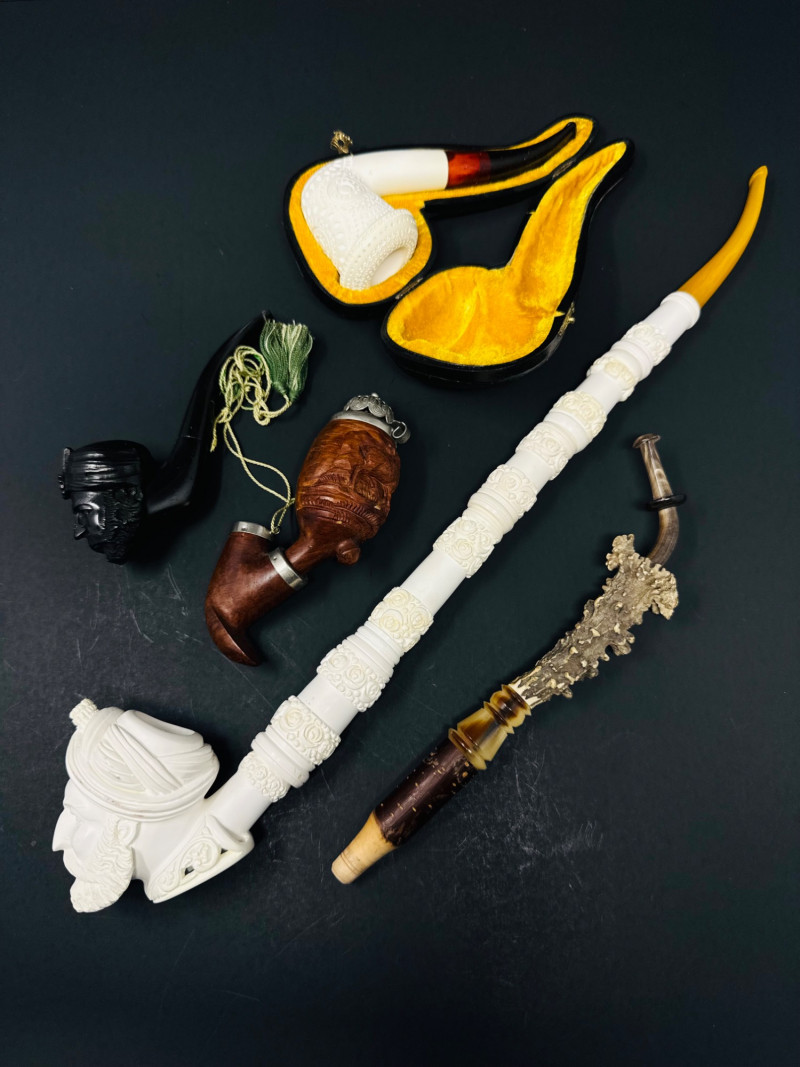 Set of 5 Carved Smoking Pipes – Meerschaum, Briar & Antler Mix.