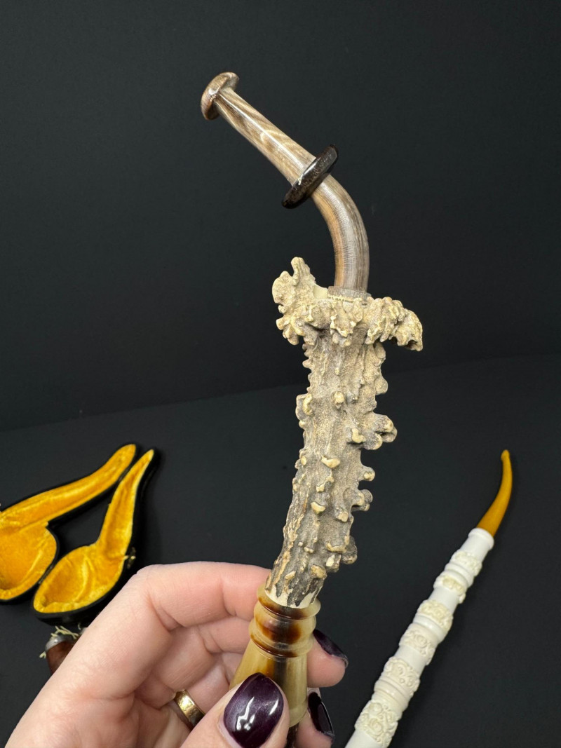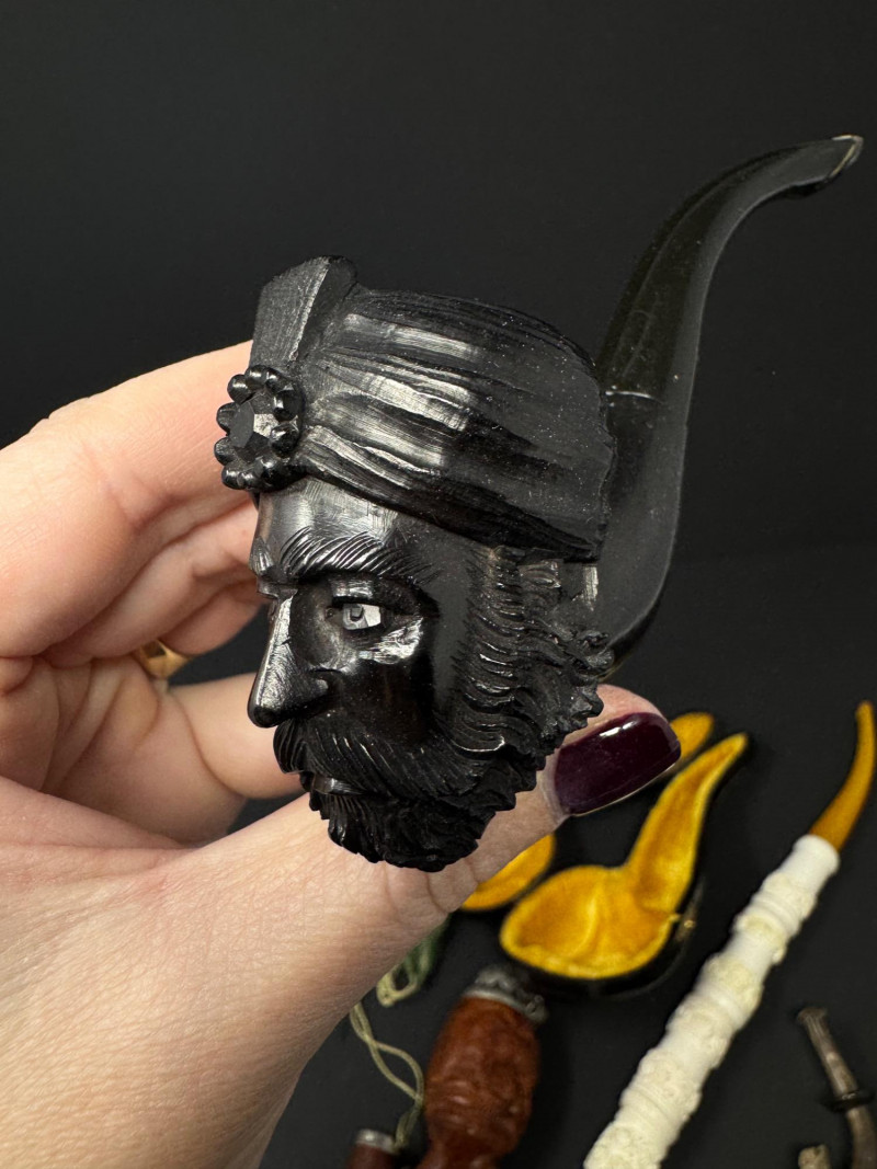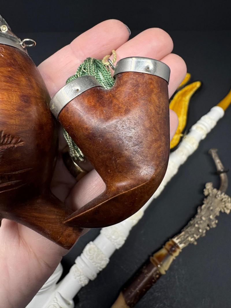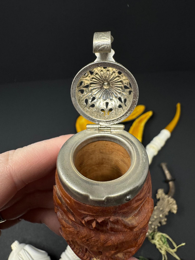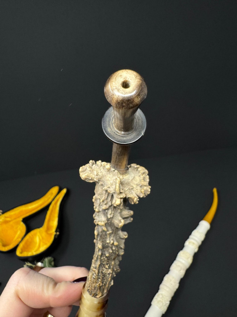 Set of 5 Carved Smoking Pipes – Meerschaum, Briar & Antler Mix.