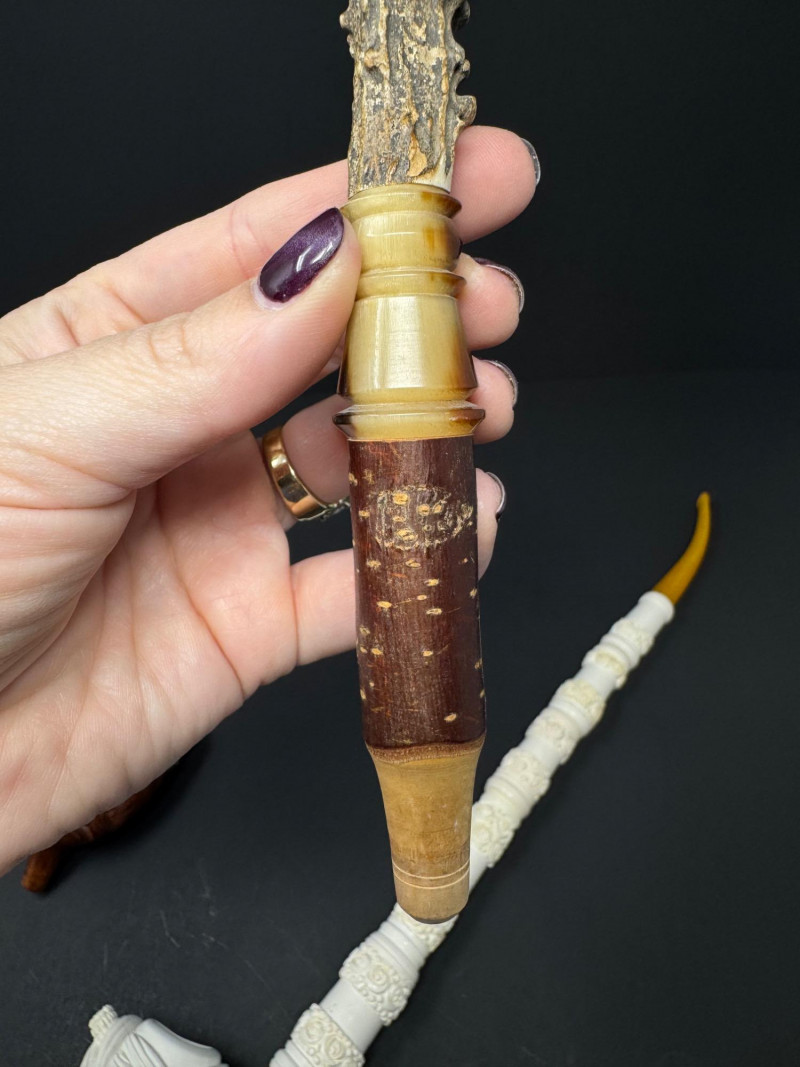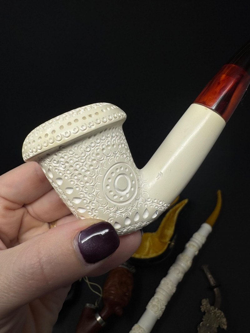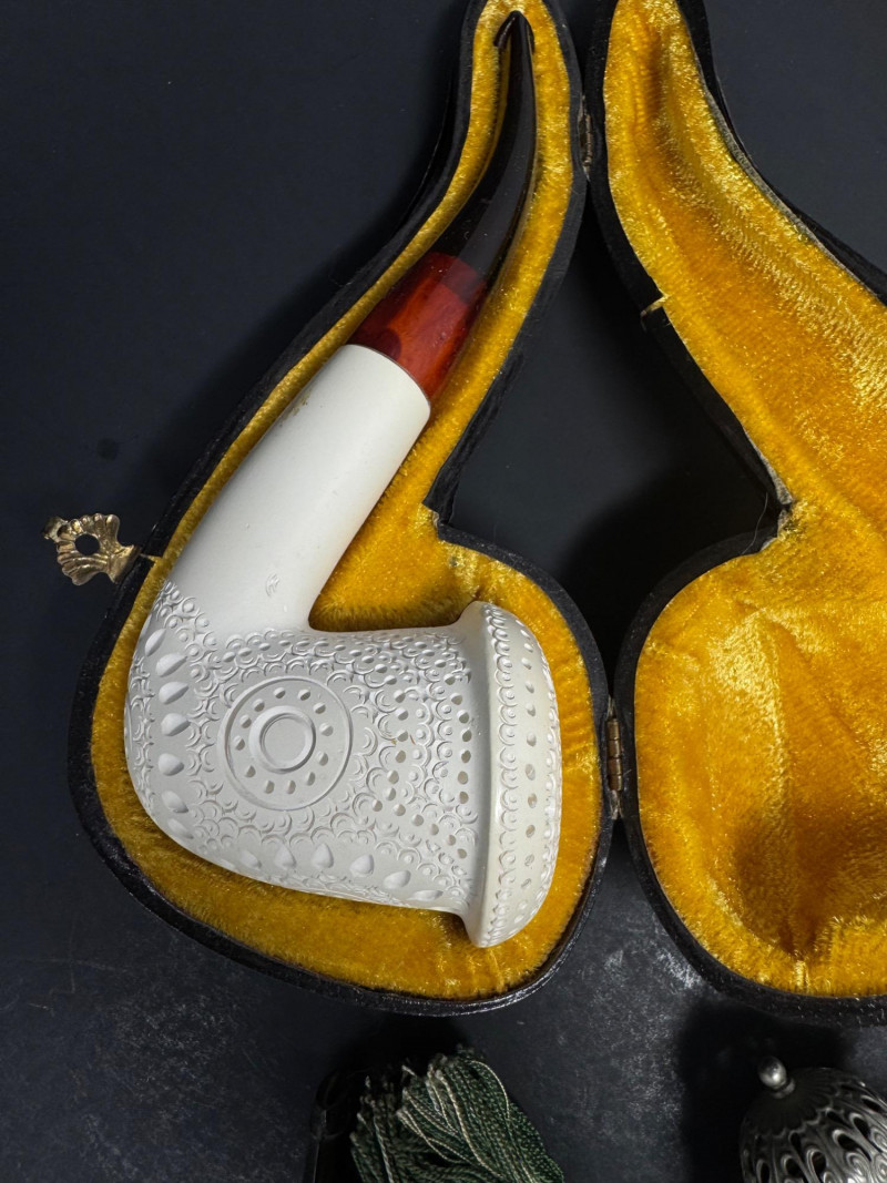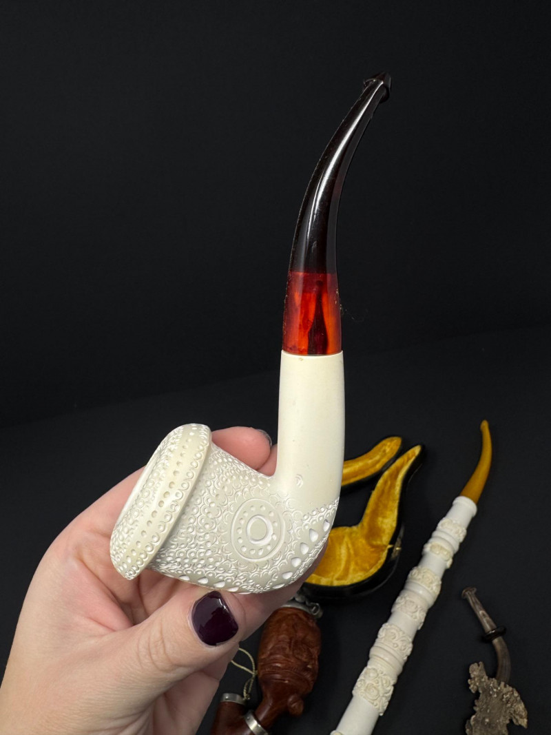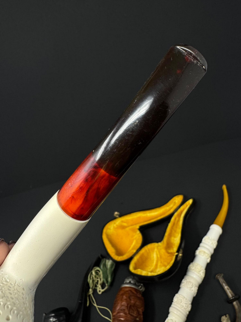 Set of 5 Carved Smoking Pipes – Meerschaum, Briar & Antler Mix.