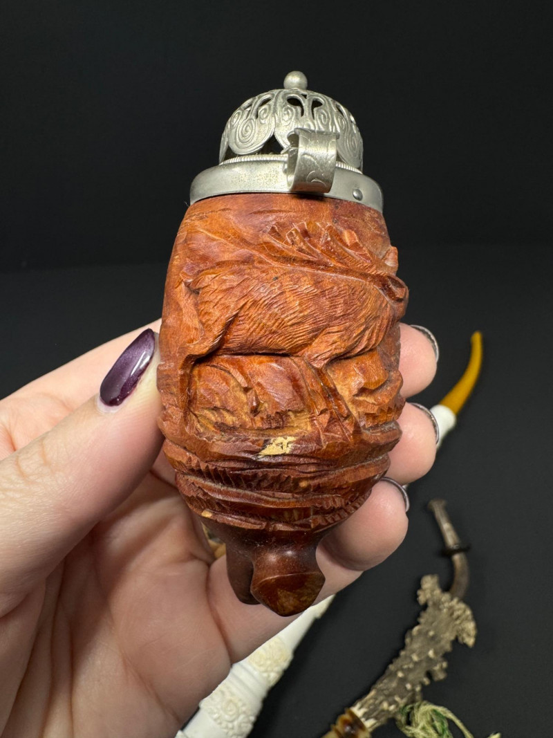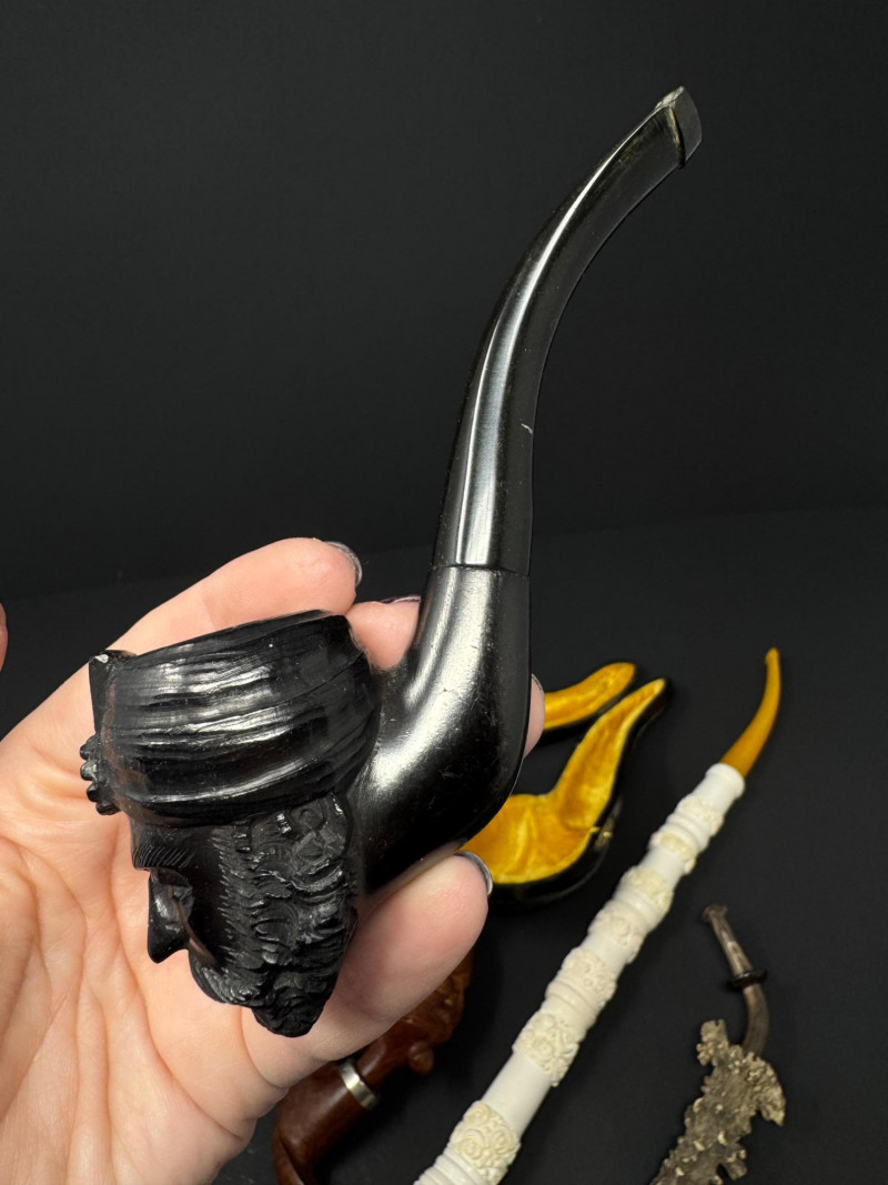 Lot # 9 - Set of 5 Carved Smoking Pipes – Meerschaum, Briar & Antler Mix