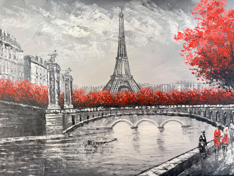 Lot # 17 - Caroline Burnett Signed Acrylic Painting of Paris
