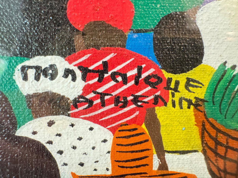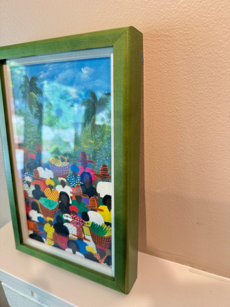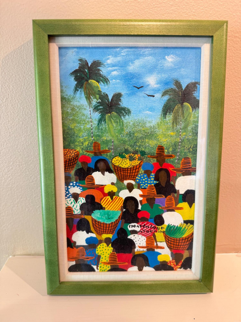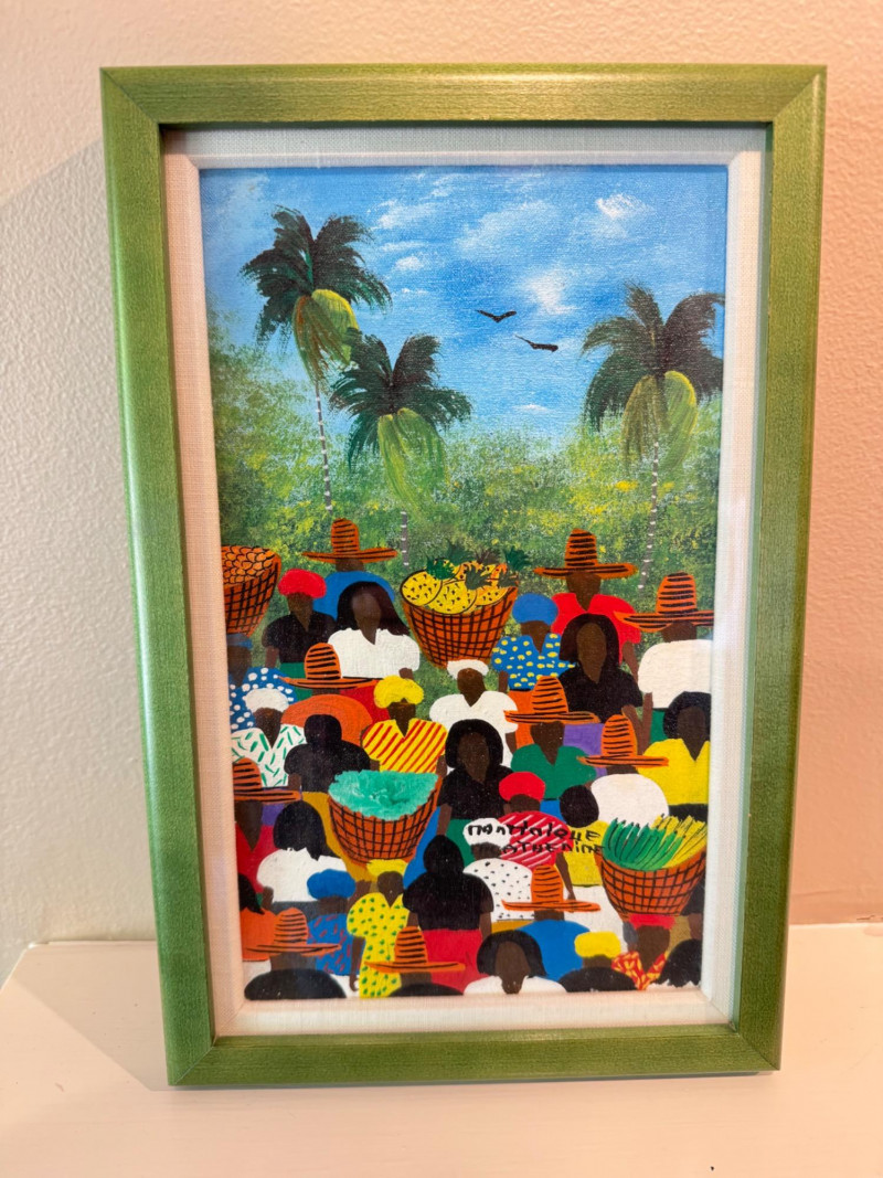 Colorful Market Scene Painting – Signed by Artist, Framed.