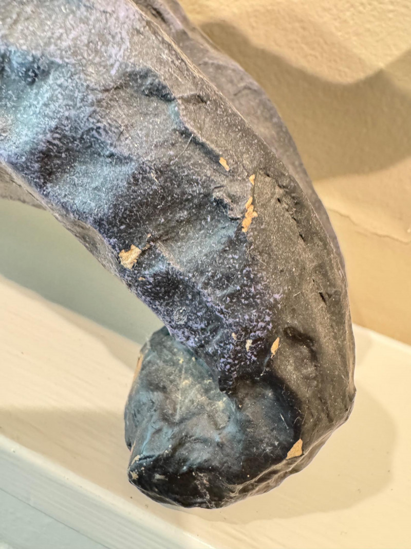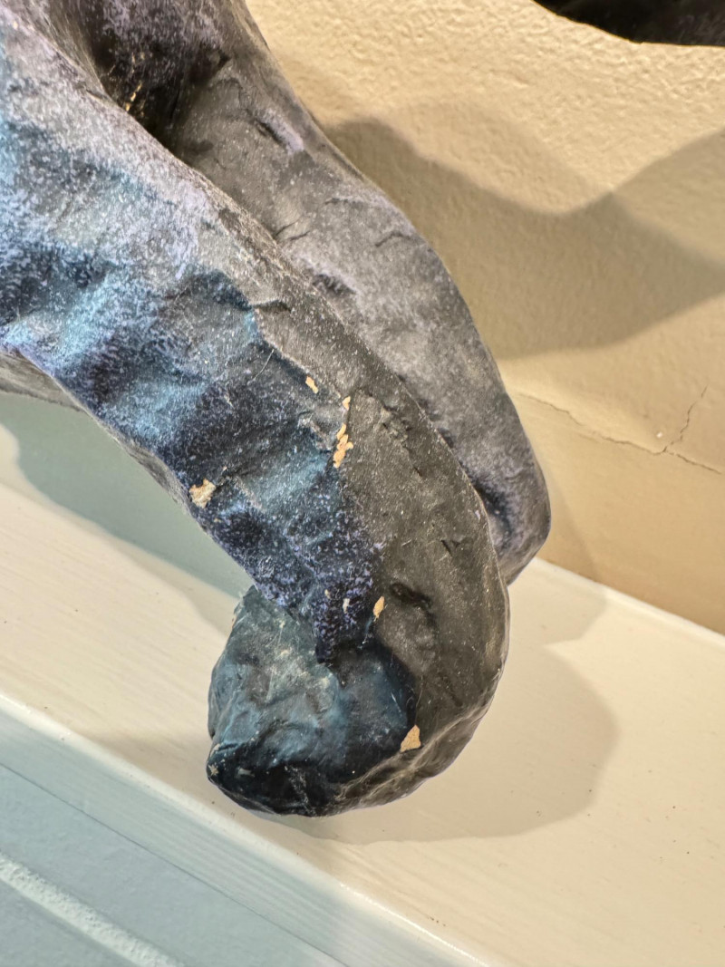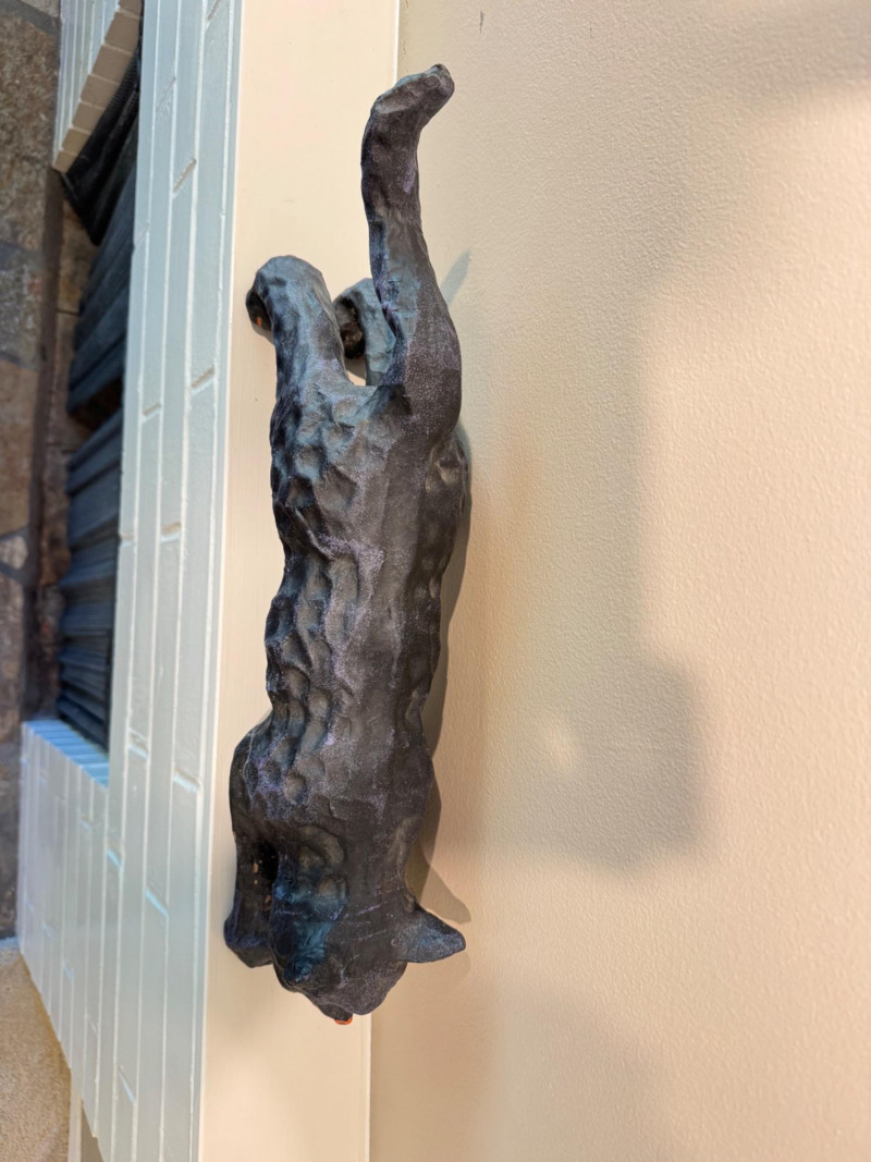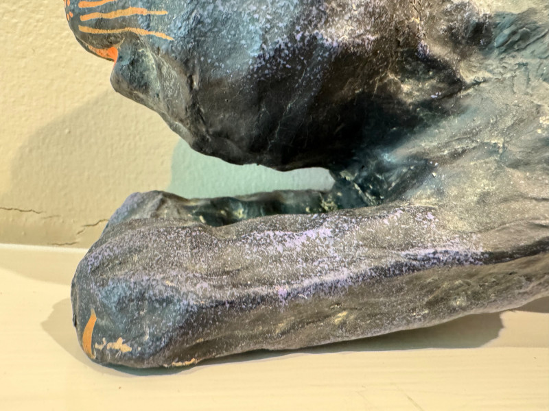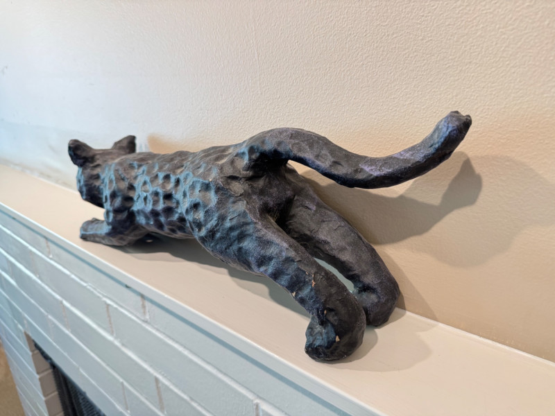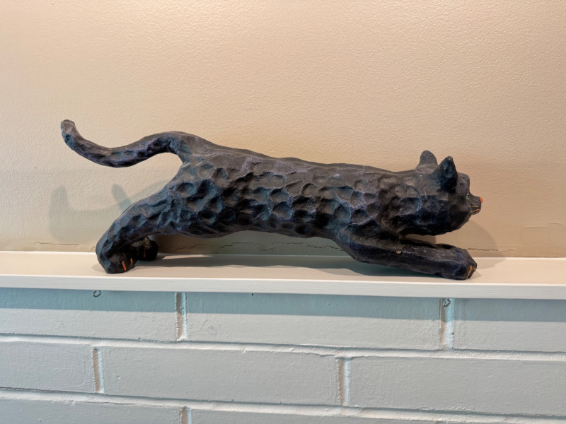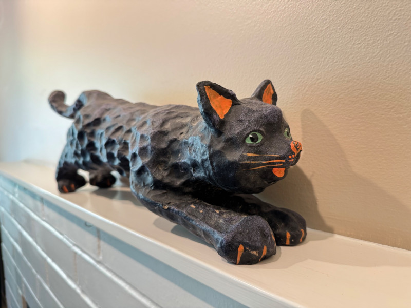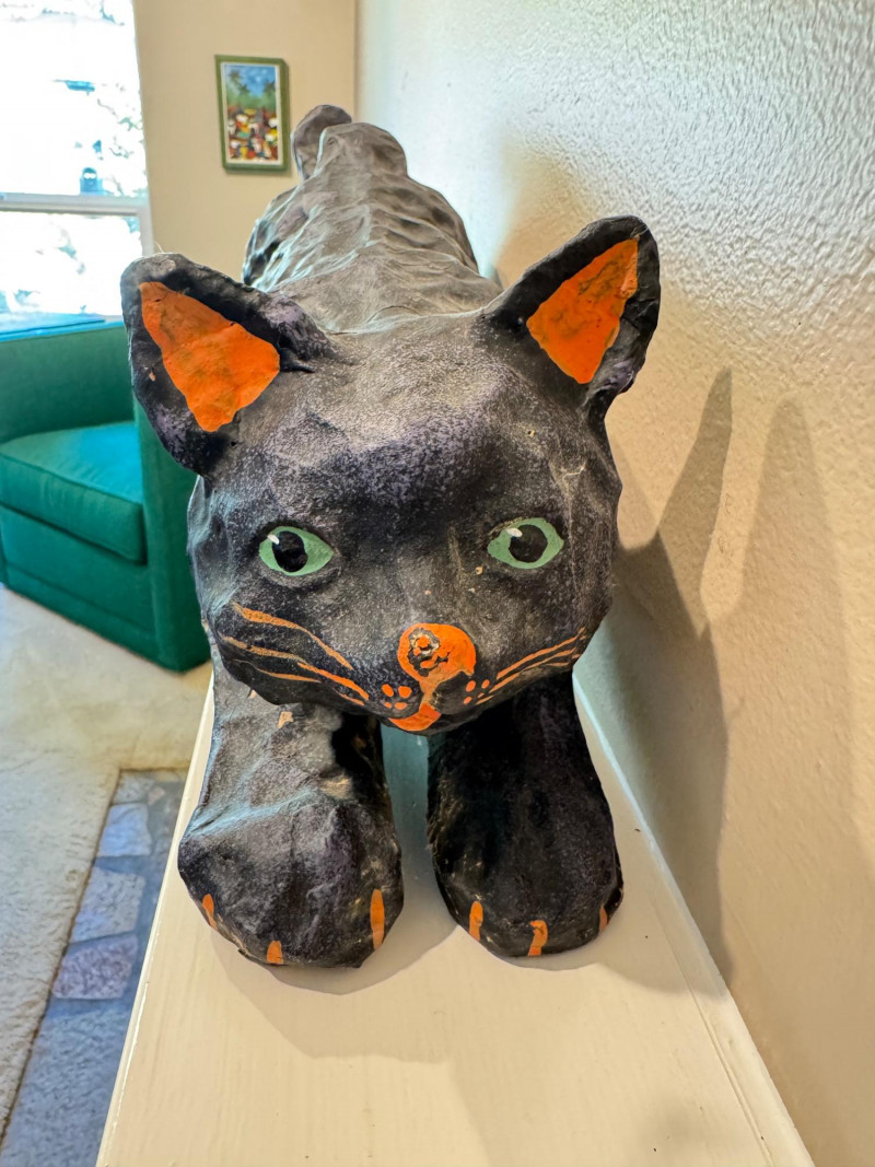 Halloween Paper Mache Black Art Cat w/ Green Eyes.
