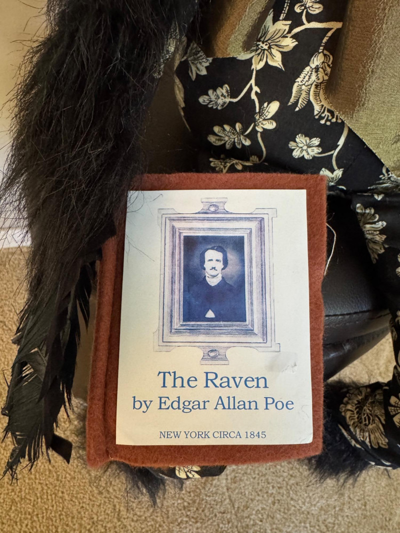 Sitting Raven Decoration w/ "The Raven" Booklet by Edgar Allan Poe.