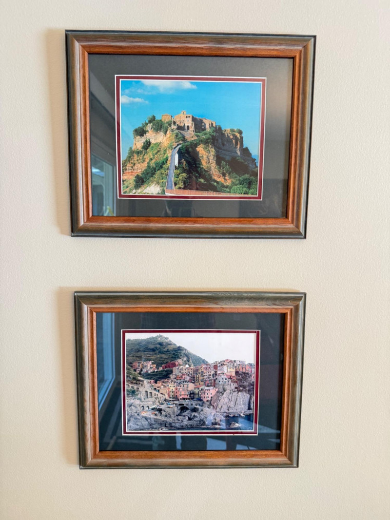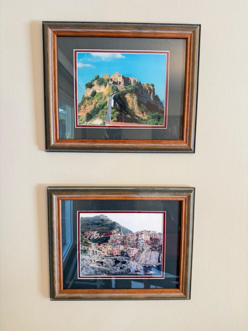 Set of 2 Framed Italy Prints – Hilltop Village & Coastal Town.