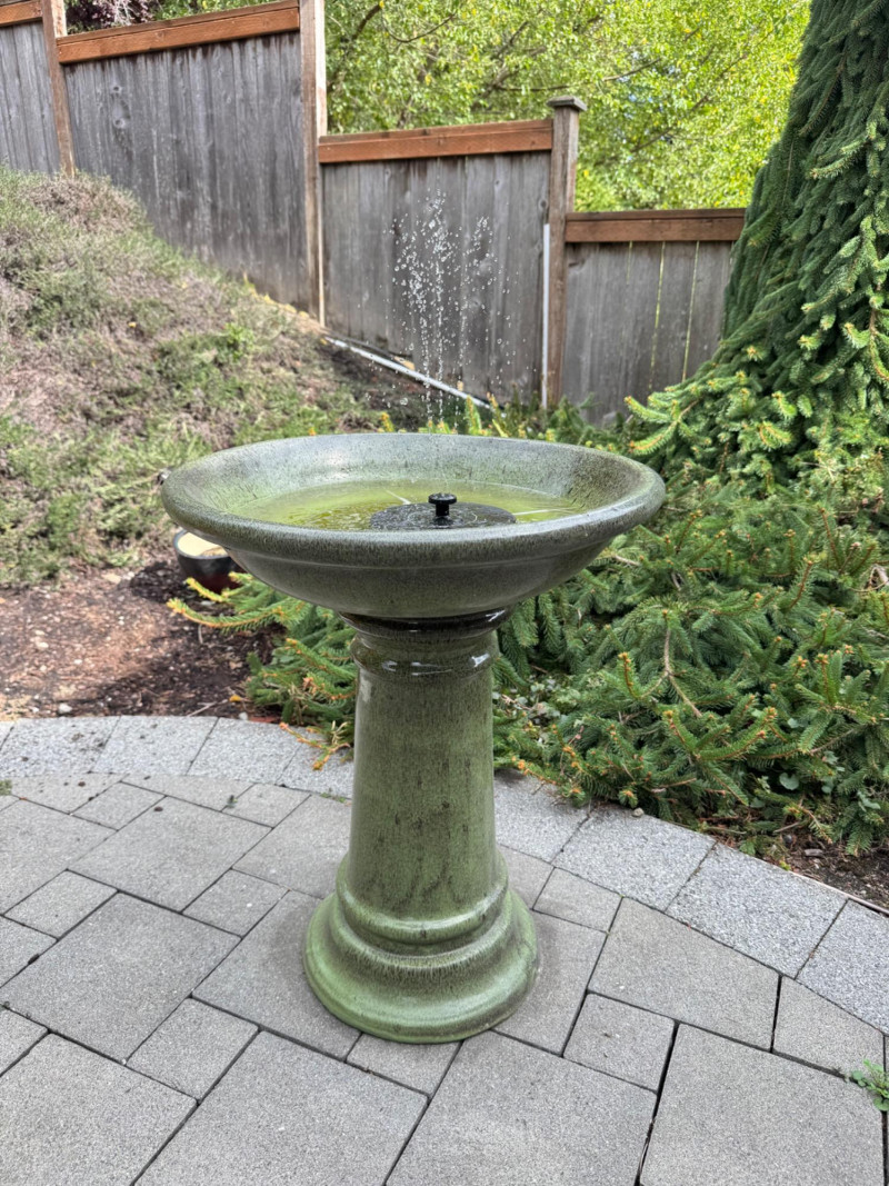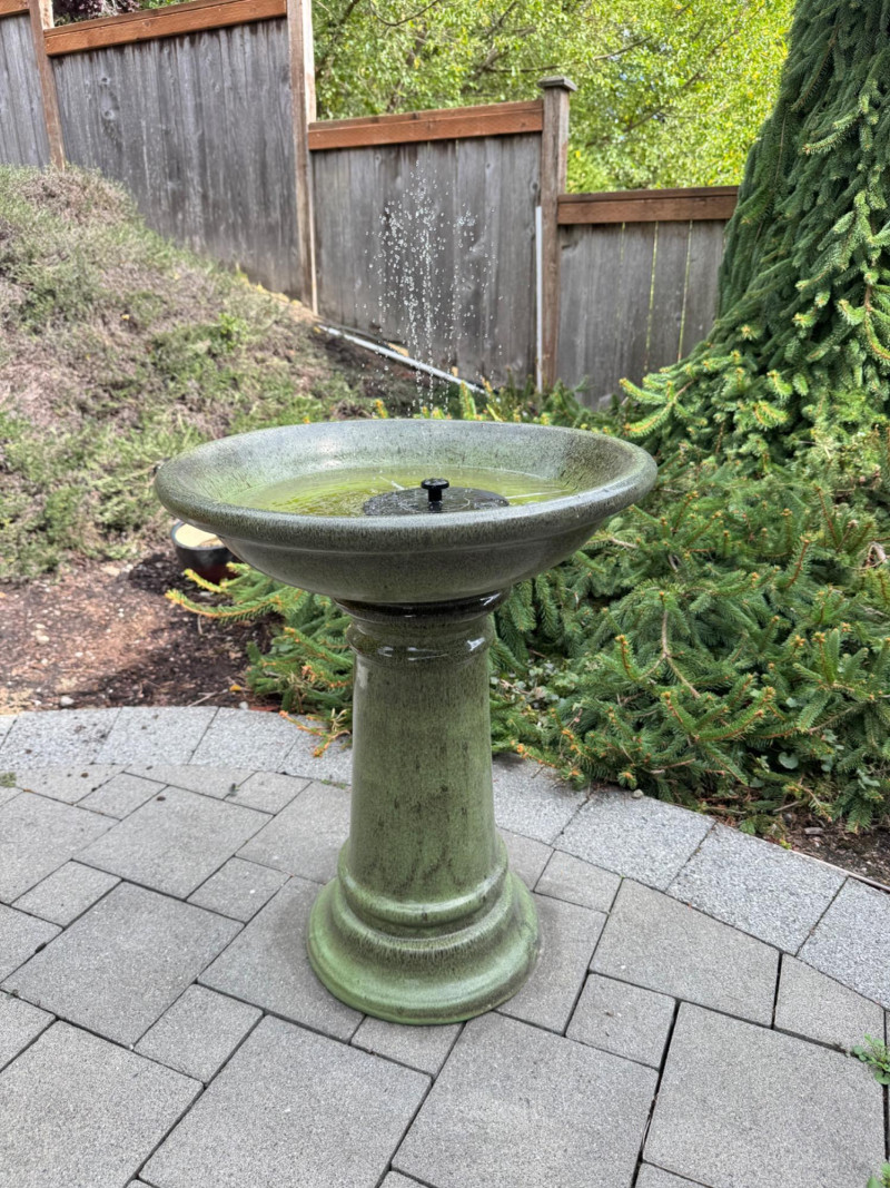Lot # 44 - Outdoor Pedestal Bird Bath Fountain – Green Glazed Ceramic