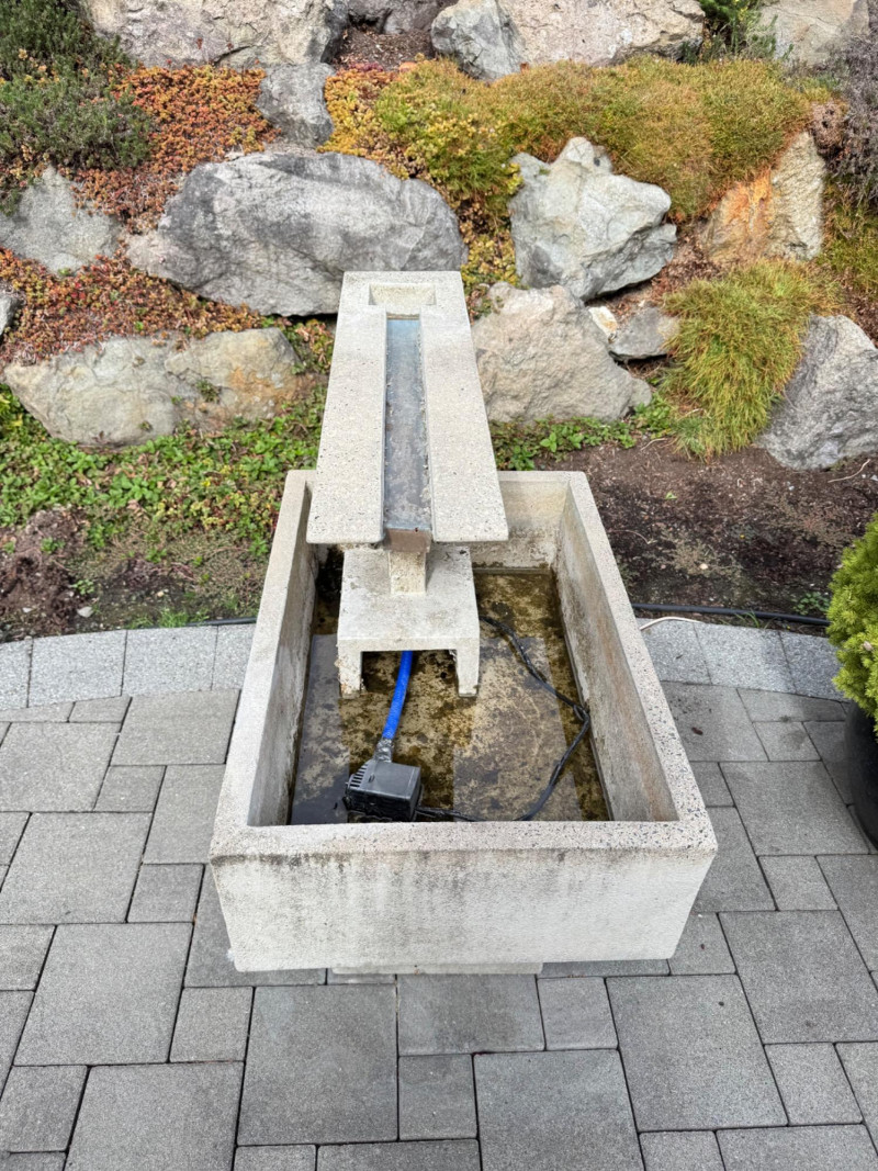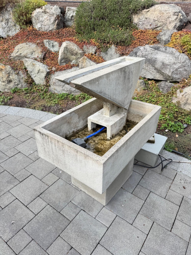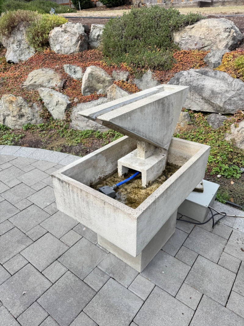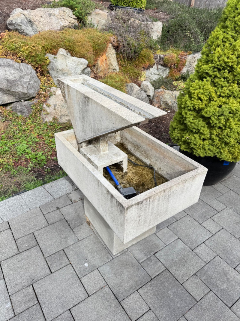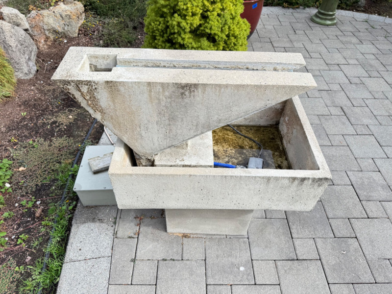 Modern Geometric Cement Outdoor Water Fountain – Heavy. Bidding on this lot is an agreement that: (1.) You will have at least 2 capable, able bodied persons to lift and load at a minimum. (2.) You will bring a hand truck and/or any other tools needed to remove this item. If these steps are not followed your item will be forfeit and no refund given.