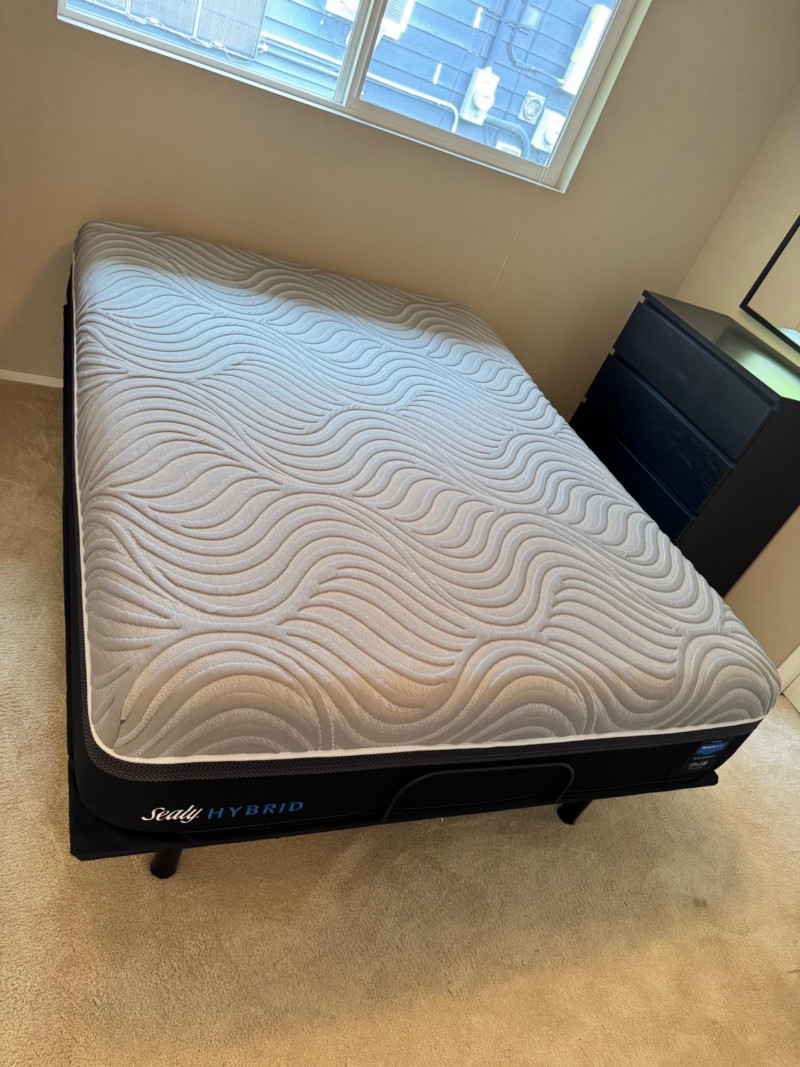 Sealy Hybrid Queen Mattress w/ Posturepedic Tech & Adjustable Bed Frame. Bidding on this lot is an agreement that: (1.) You will have at least 2 capable, able bodied persons to lift and load at a minimum. (2.) You will bring a hand truck and/or any other tools needed to remove this item. If these steps are not followed your item will be forfeit and no refund given.