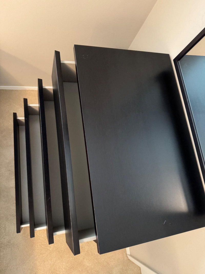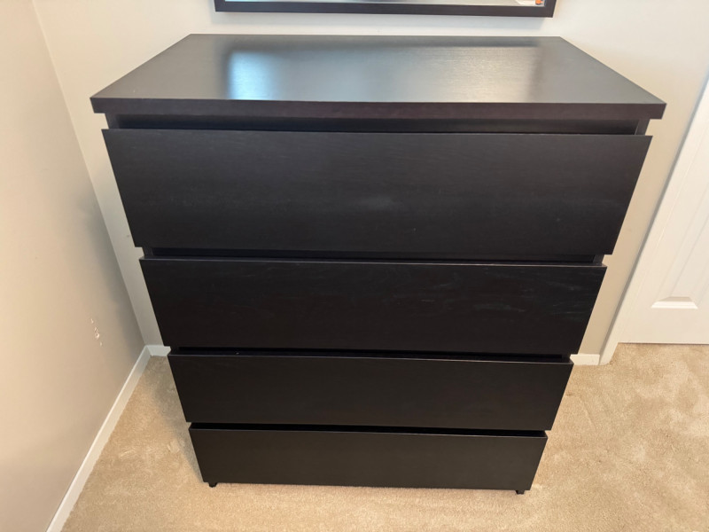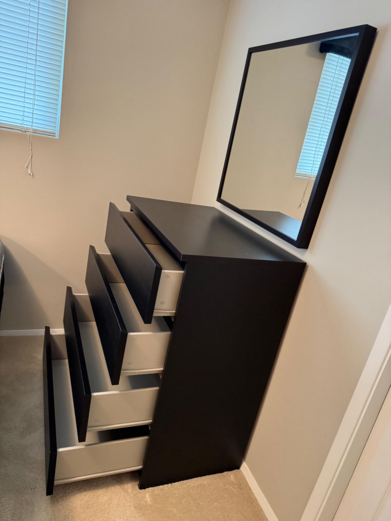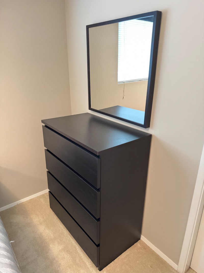 Black 4-Drawer Dresser w/ Matching Framed Wall Mirror.