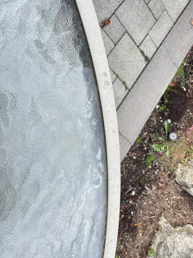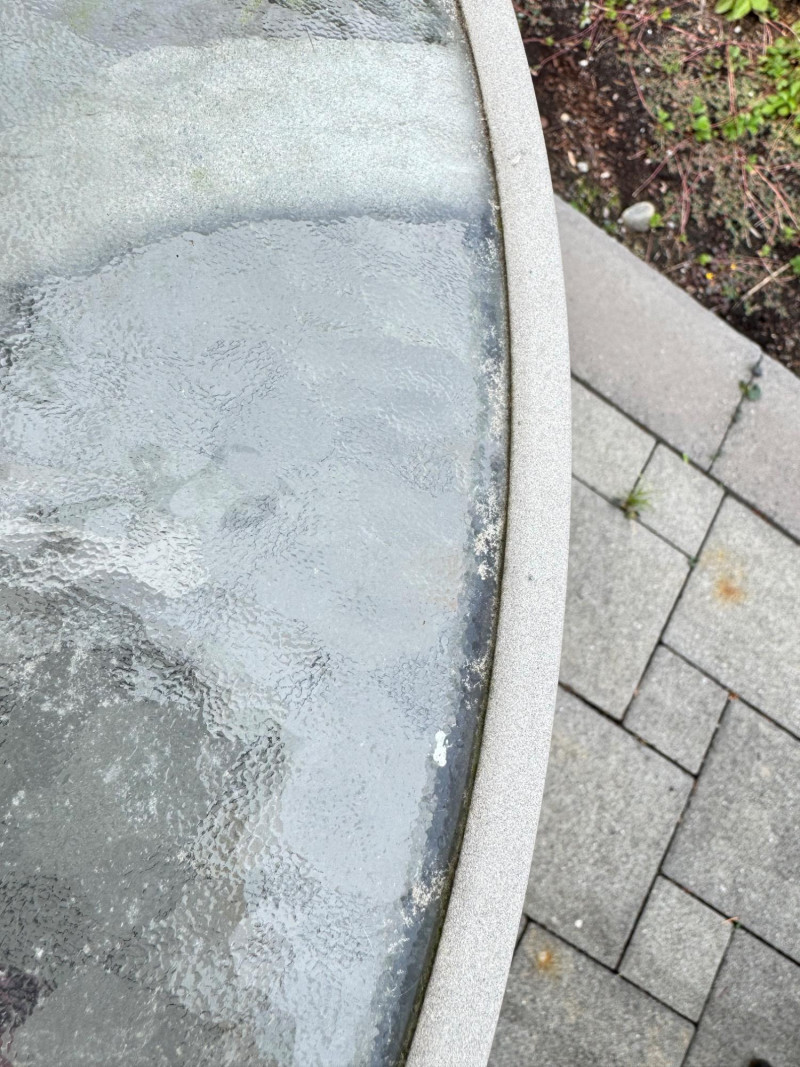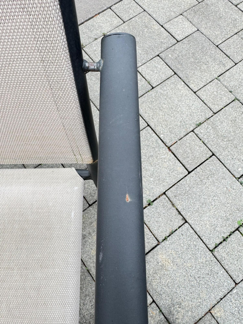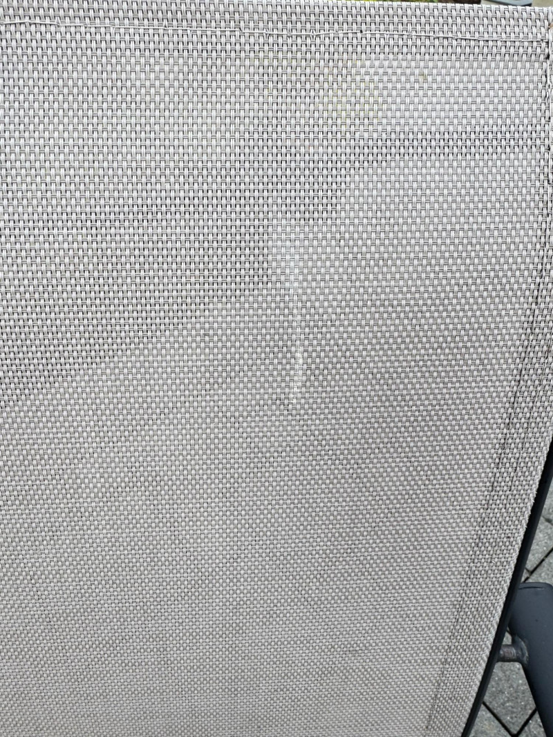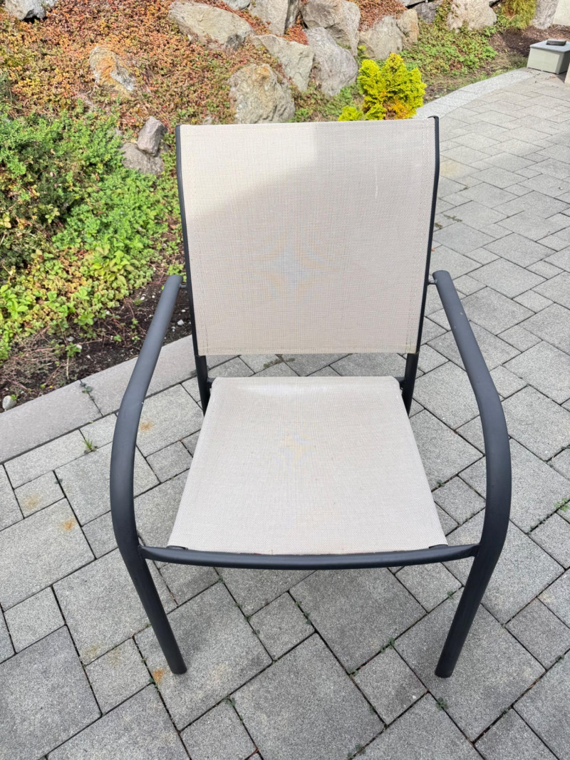 Outdoor Patio Set – Round Glass Table & 2 Sling Chairs.