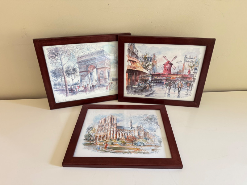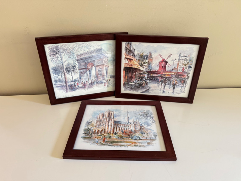 3 Paris Prints by Legai – Moulin Rouge, Notre Dame, Arc de Triomphe.