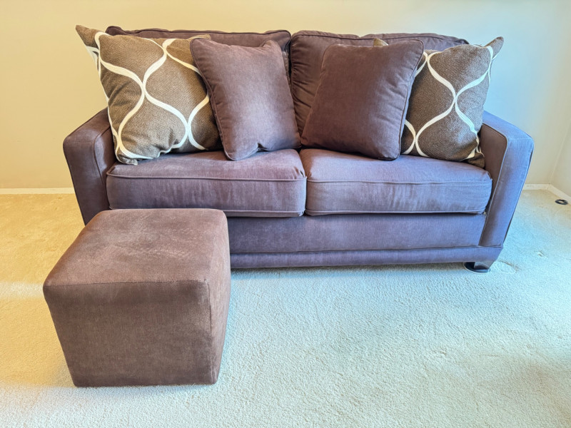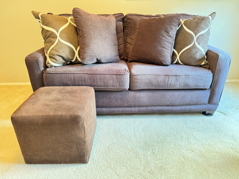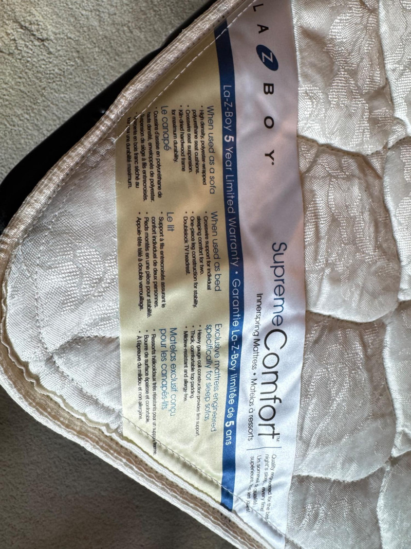 La-Z-Boy Sofa Sleeper w/ Supreme Comfort Mattress + Ottoman. Bidding on this lot is an agreement that: (1.) You will have at least 2 capable, able bodied persons to lift and load at a minimum. (2.) You will bring a hand truck and/or any other tools needed to remove this item. If these steps are not followed your item will be forfeit and no refund given.