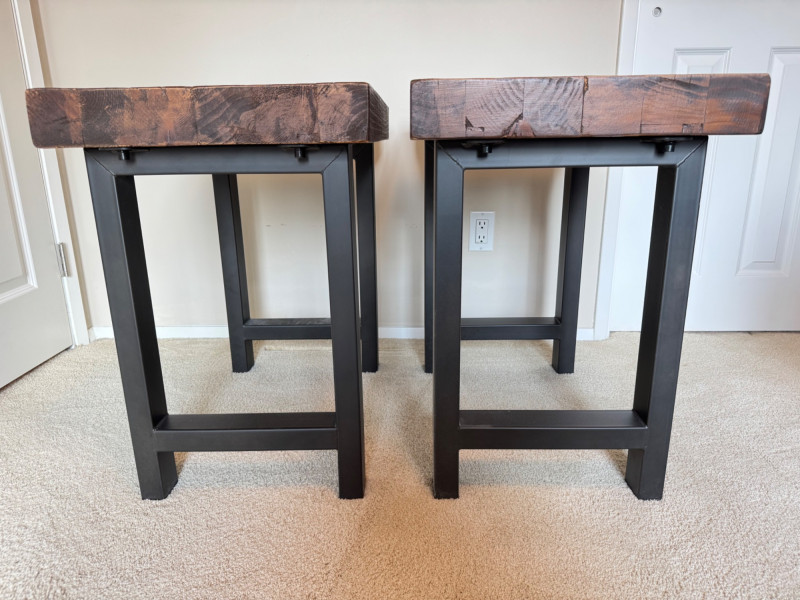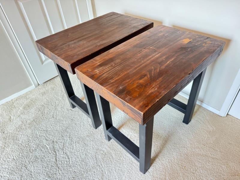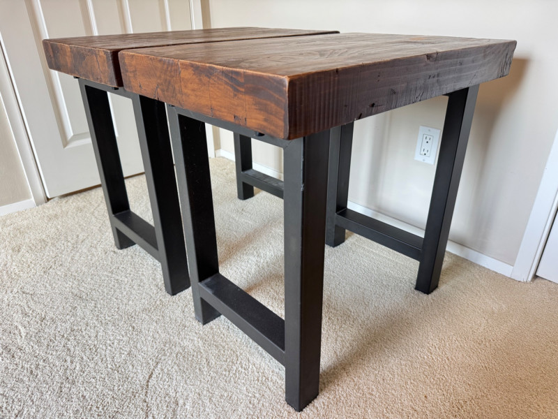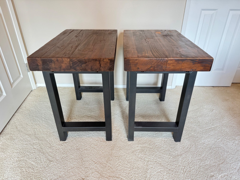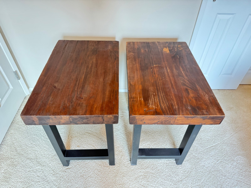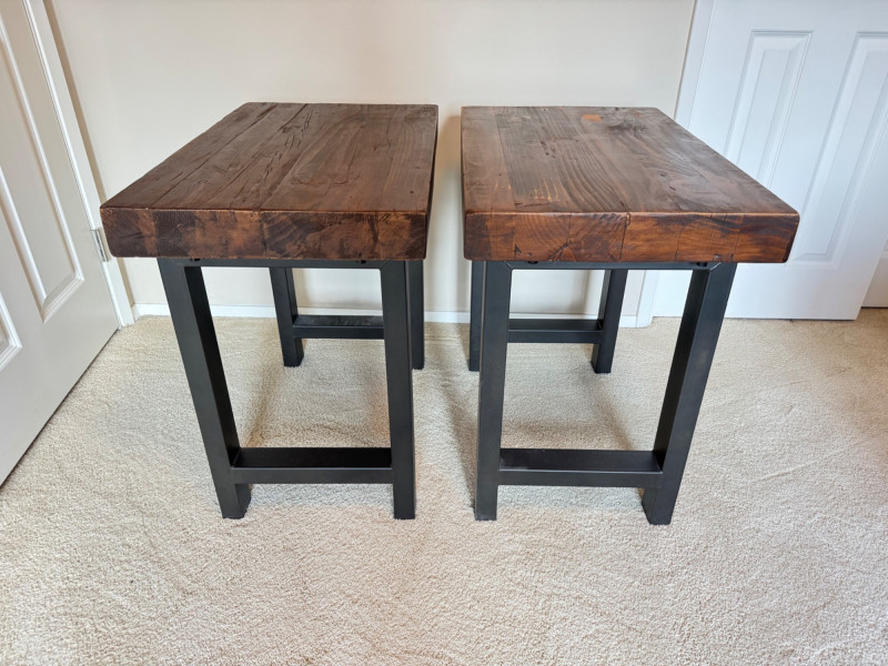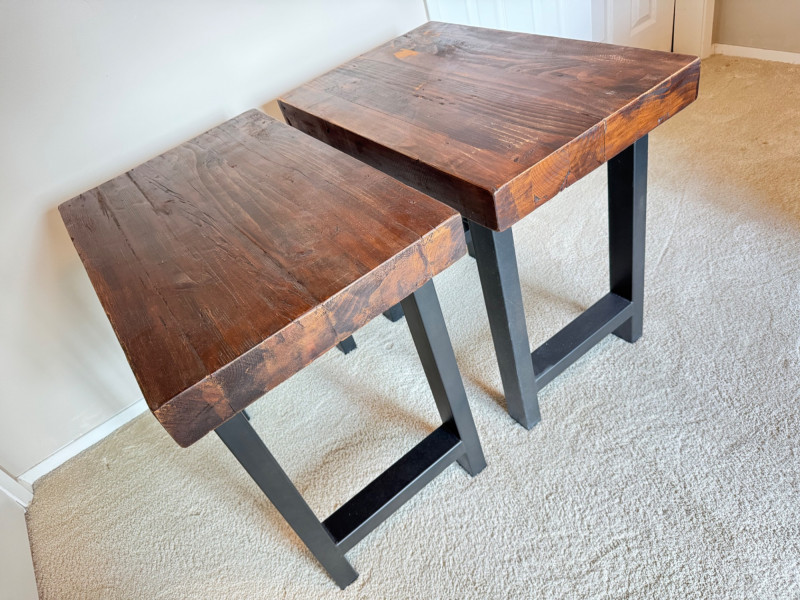 Pair of Rustic Wood & Metal End Tables – Thick Slab Tops.