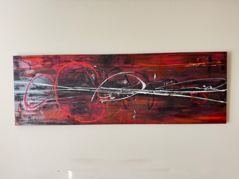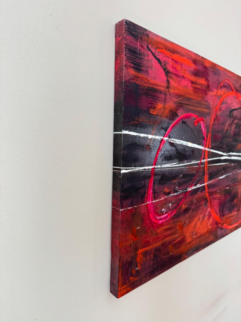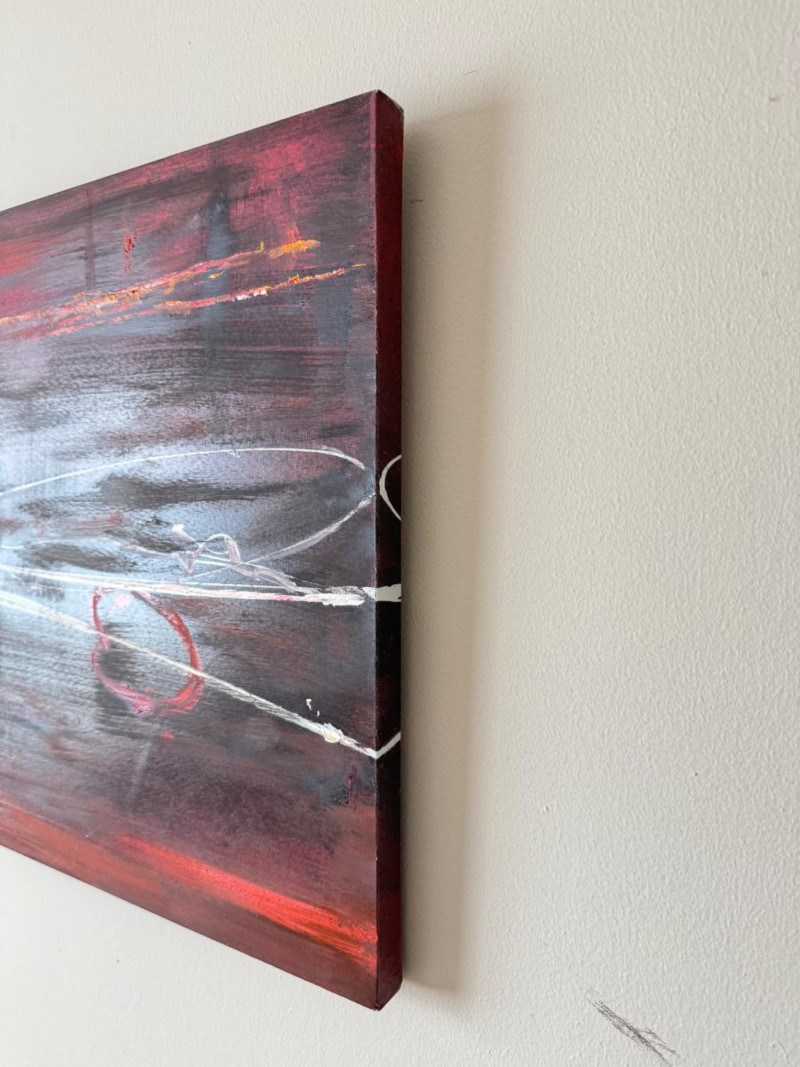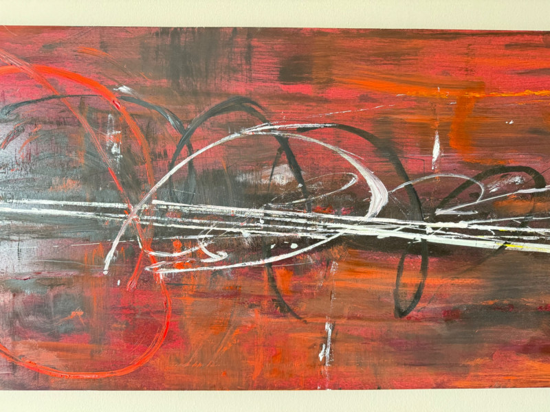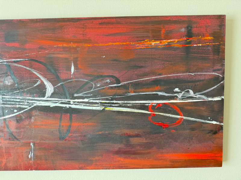 Lot # 67 - Abstract Red & Black Painting on Wood Panel