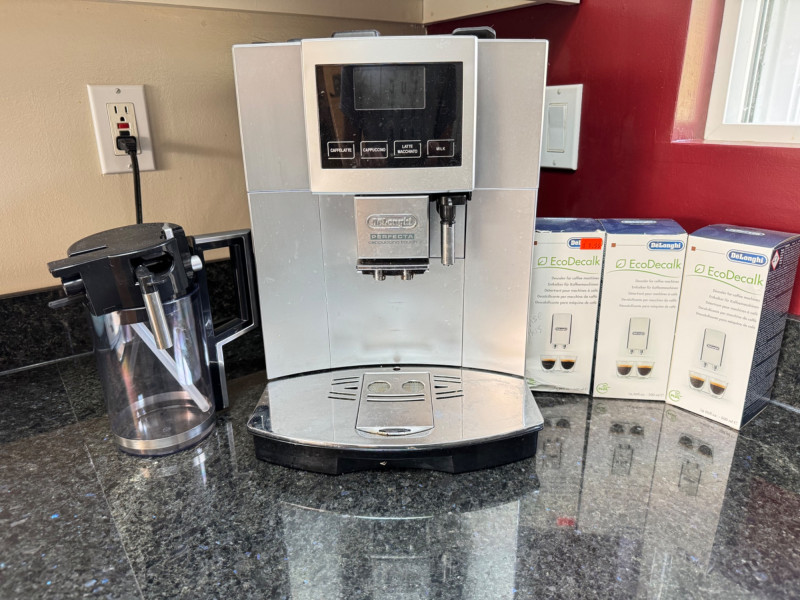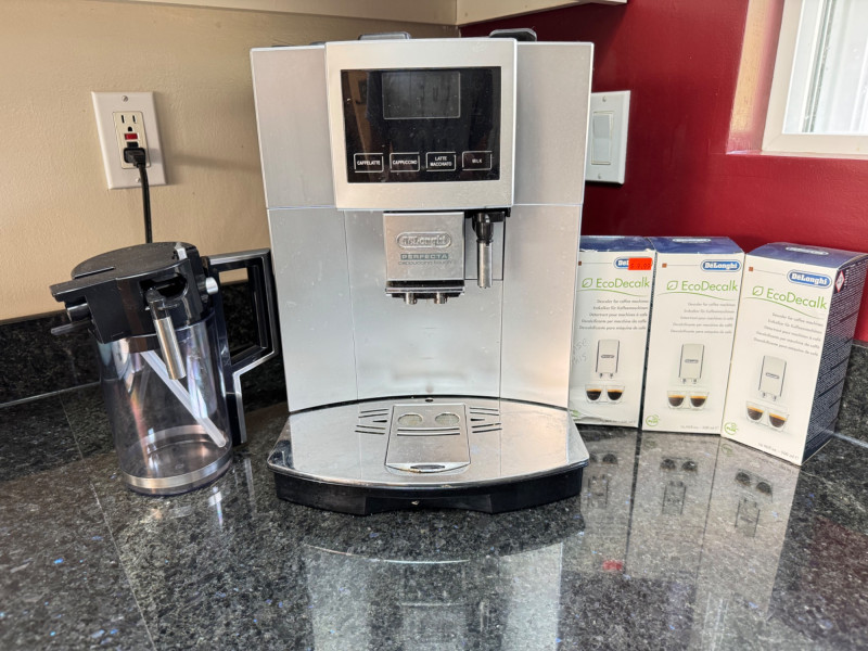 DeLonghi Perfecta Cappuccino Touch Coffee Machine w/ Descaler & Manual. 11" x 16" x 15"