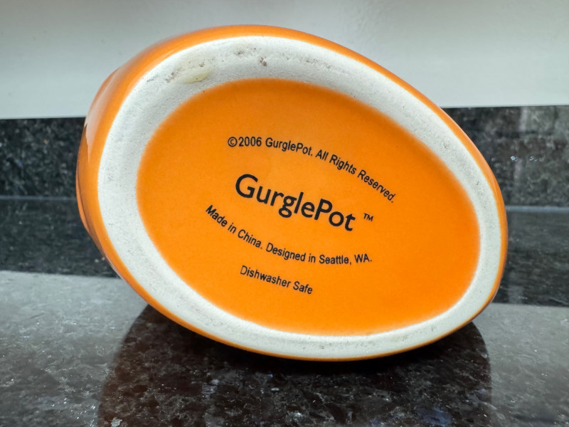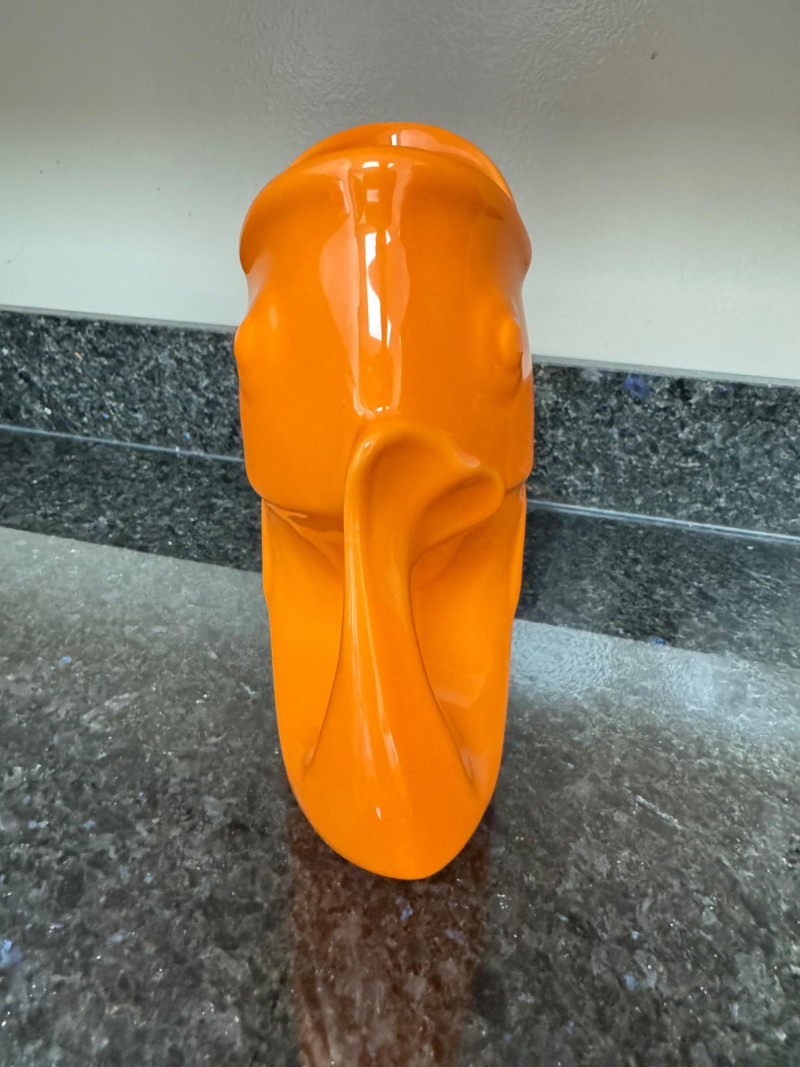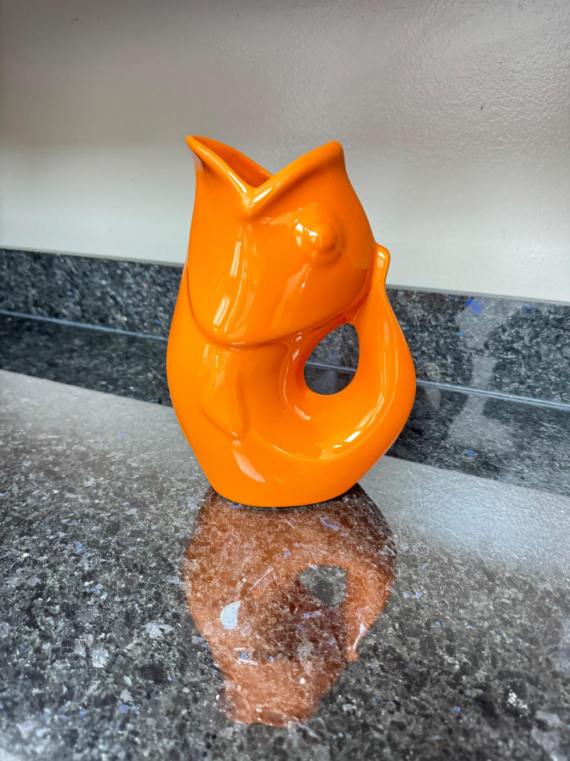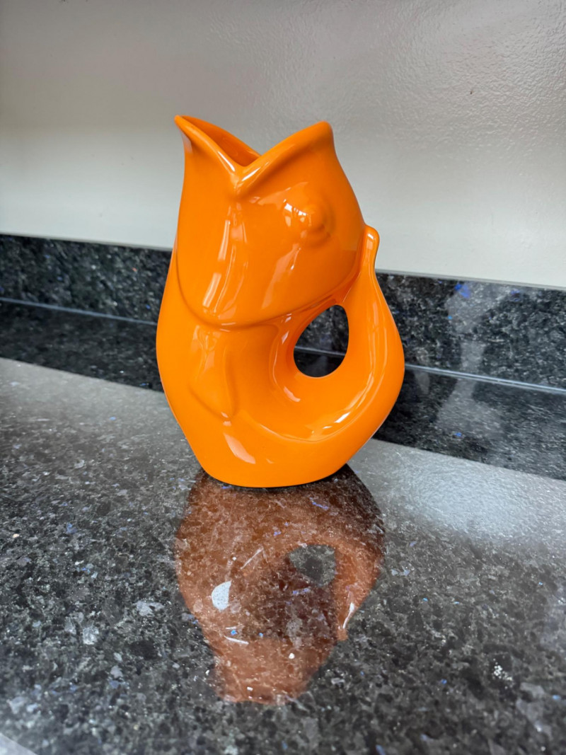 Bright Orange GurglePot Fish Pitcher. 6" x 10"
