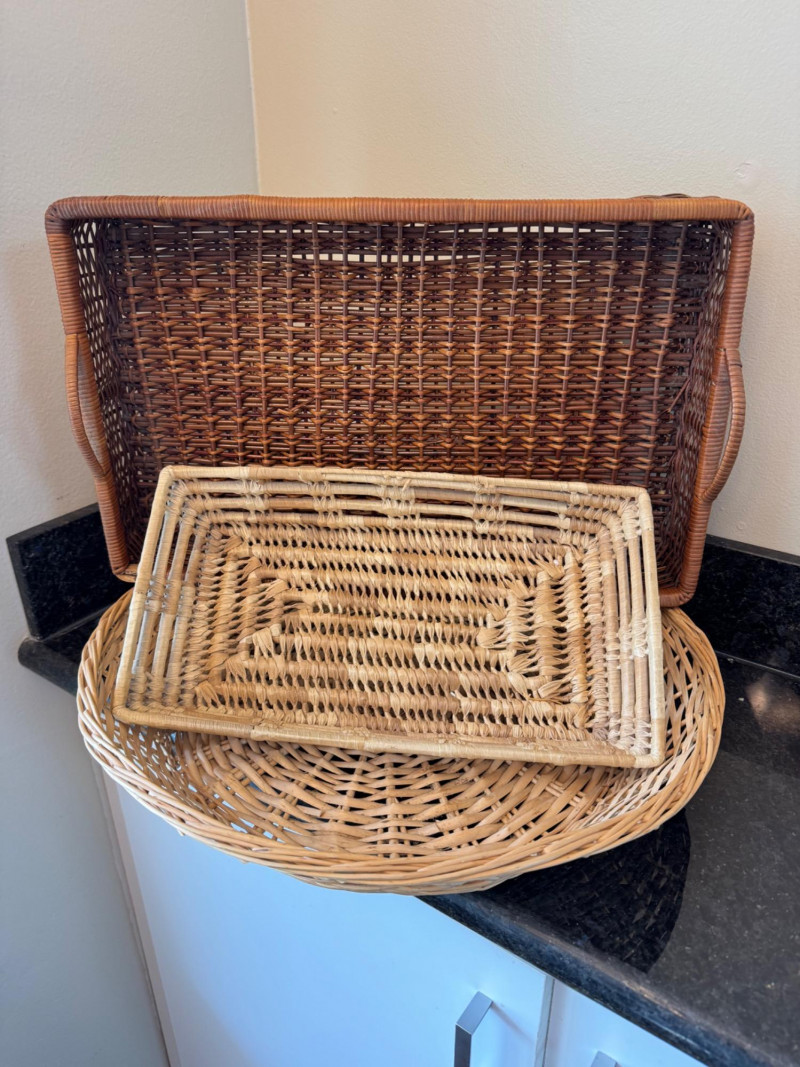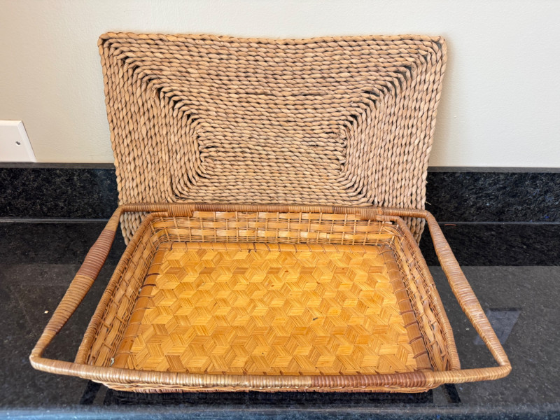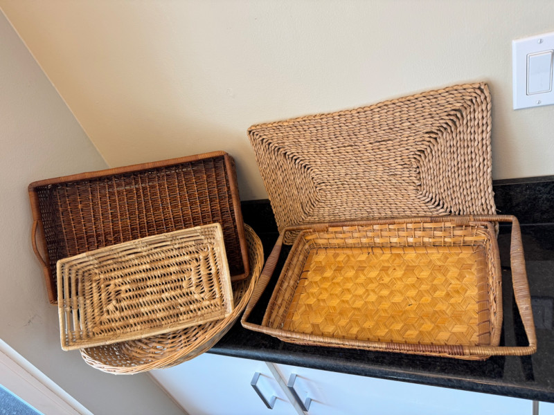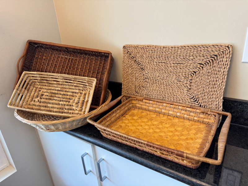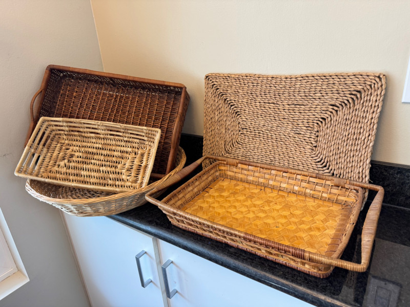 Lot of 5 Woven Serving Trays – Various Sizes & Designs.