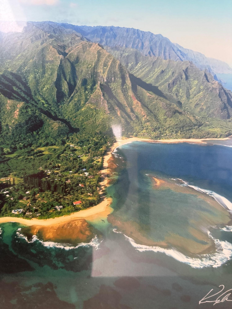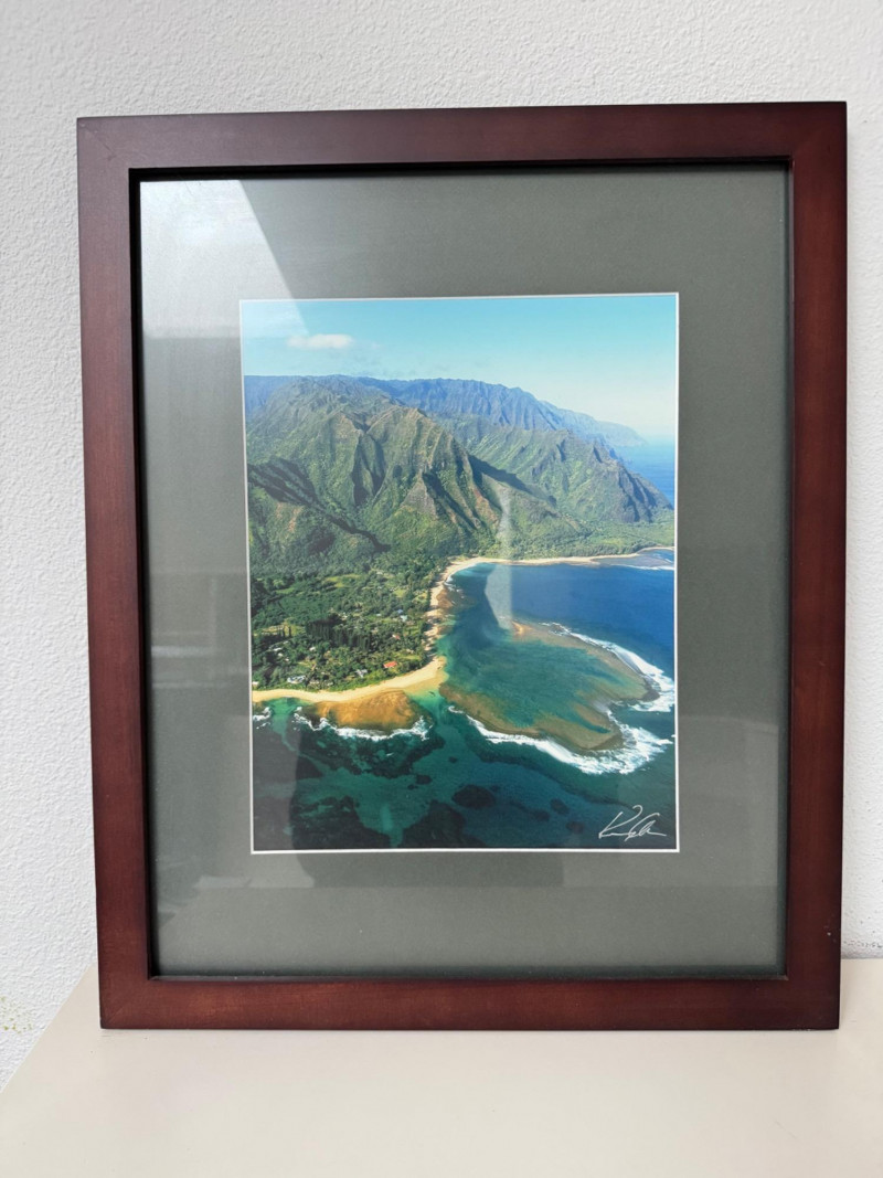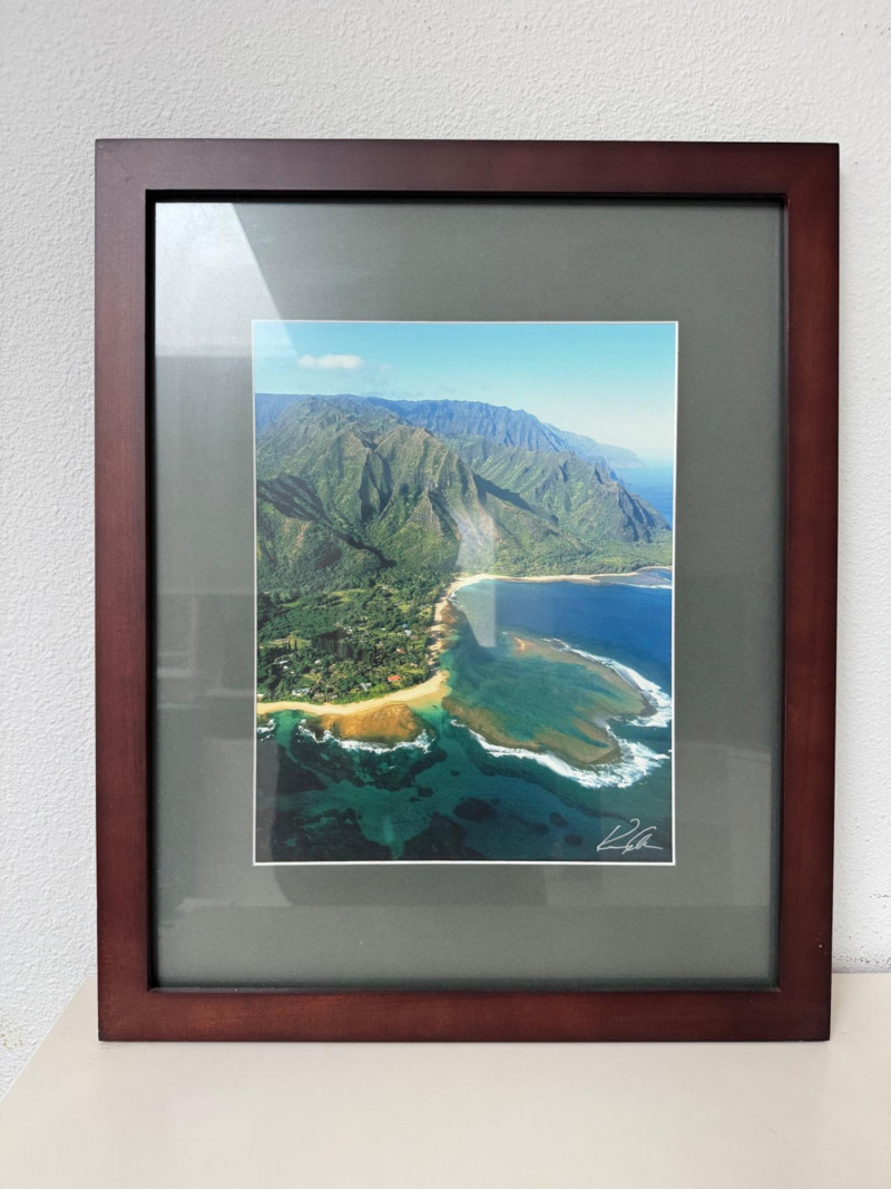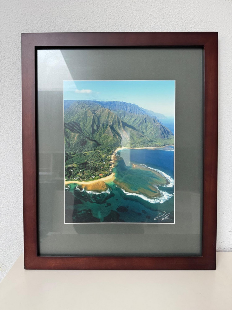 Signed Aerial Hawaii Coastline Photograph – Matted & Framed.
