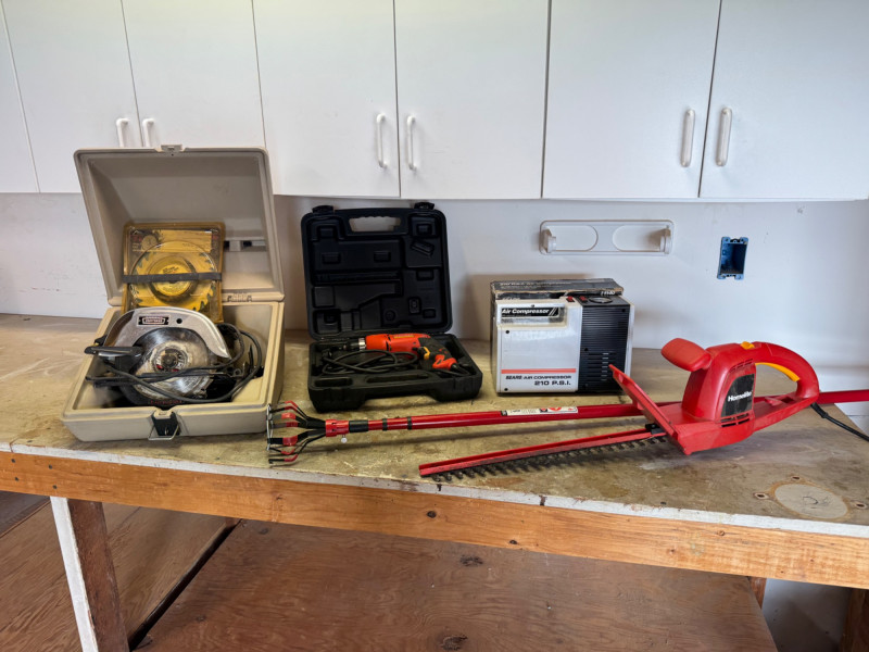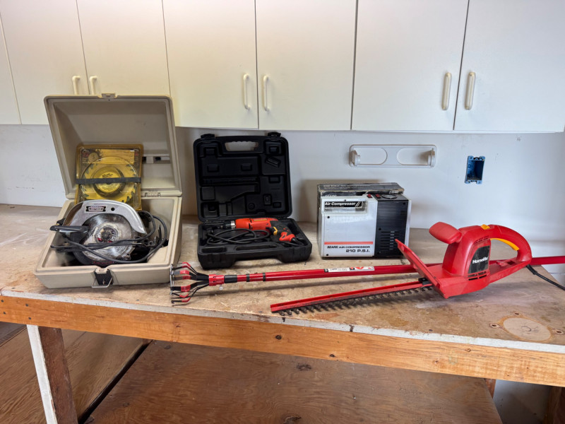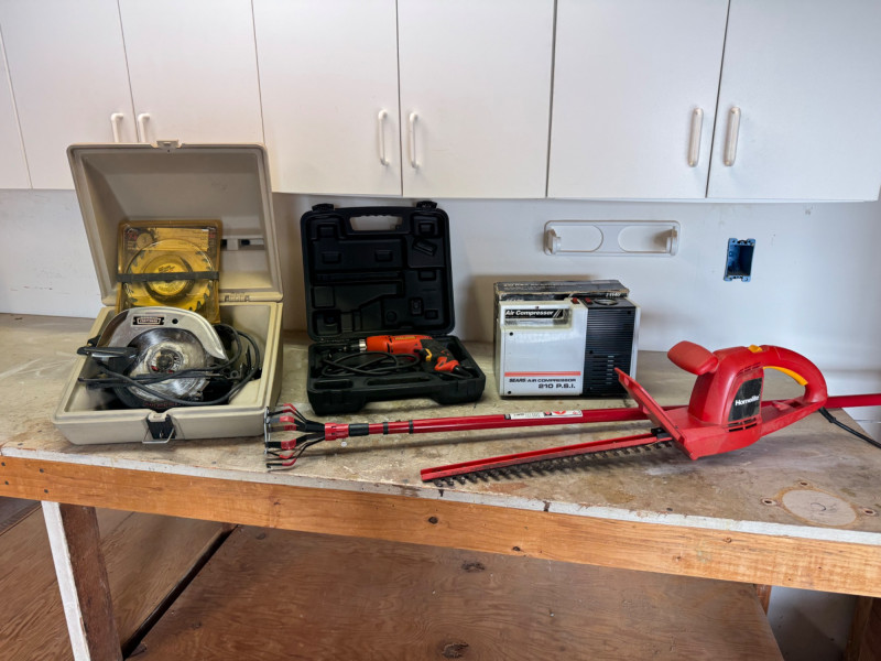 Power Tools & Workshop Lot – Craftsman, Homelite, Sears Air Compressor.