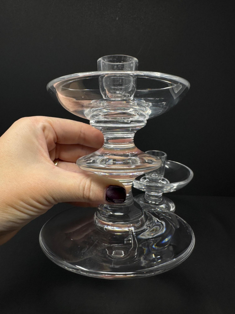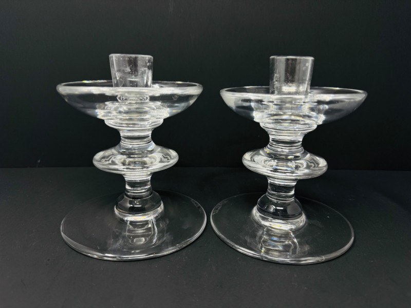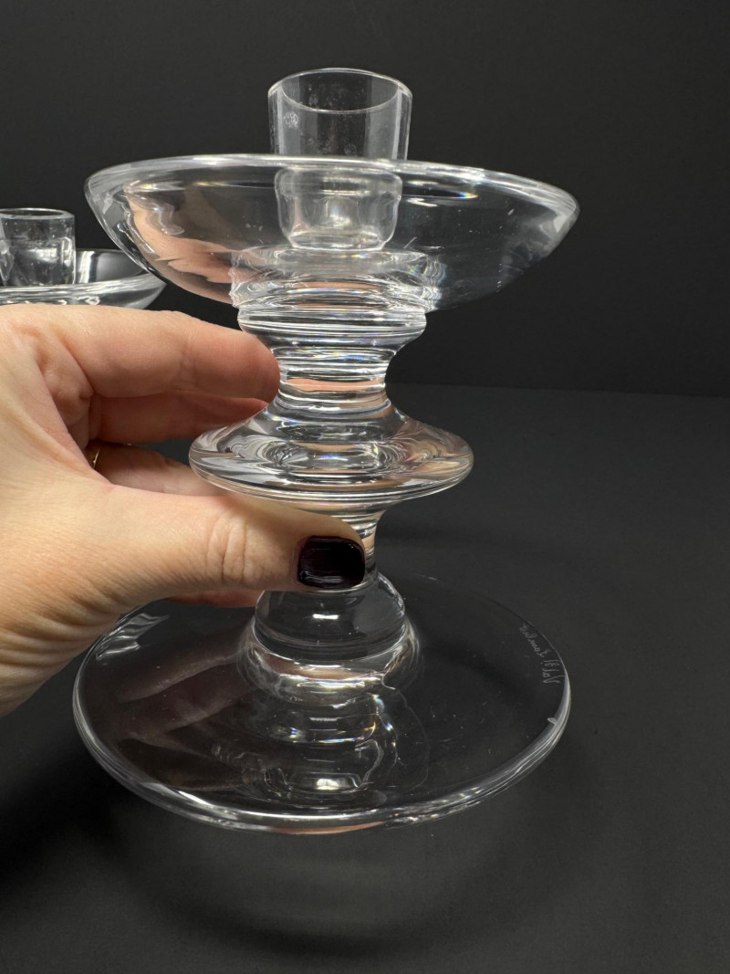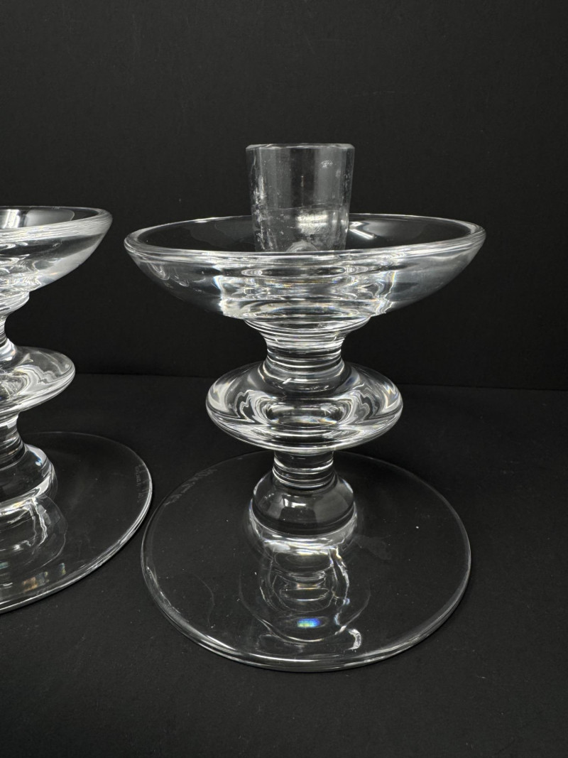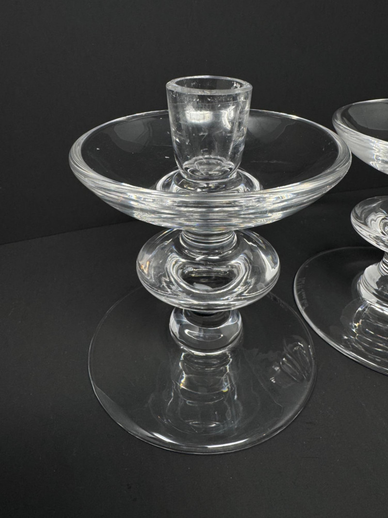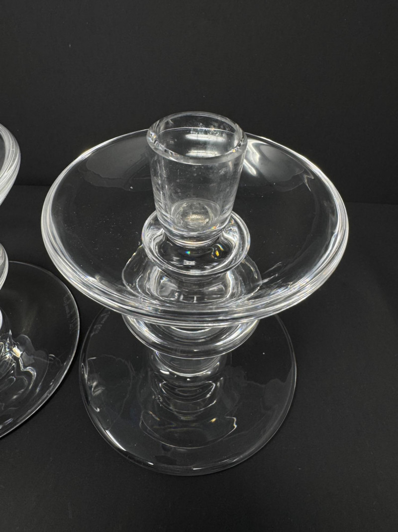 Lot # 132 - Pair of Val Saint Lambert Signed Crystal Candle Holders – 5.5” Tall