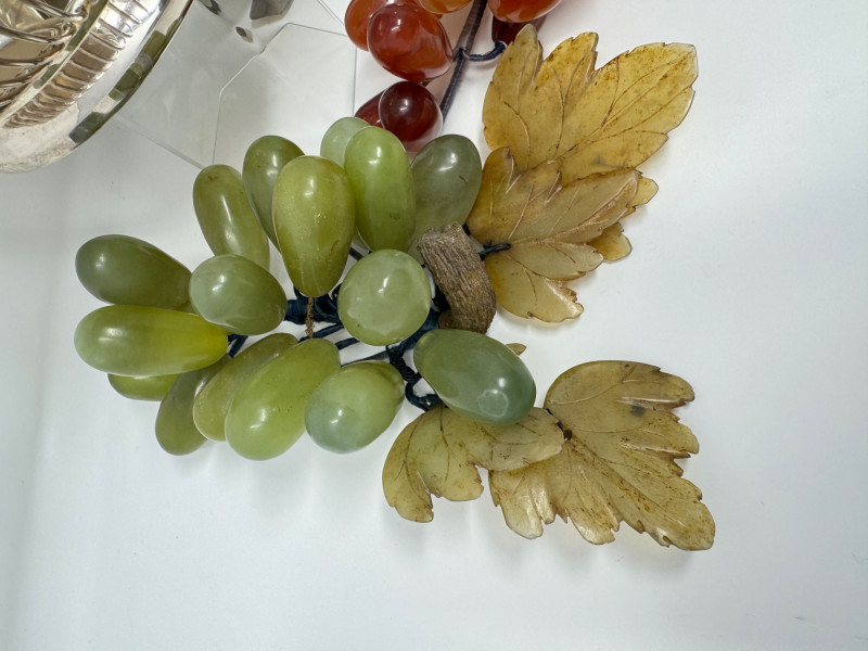 Lot # 142 - Jade Grapes & Apple Lot w/ Silver Plate Bowl & Napkin Rings