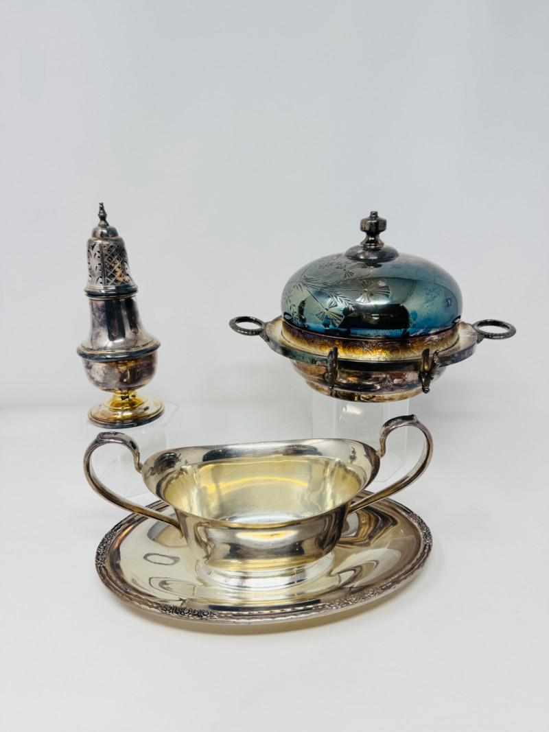 Vintage Silverplate Tableware Lot – Webster, Camille, England. Disclaimer: Metals are not tested. All items are sold as is with no guarantees on metal content or purity. No refunds based on metal quality.