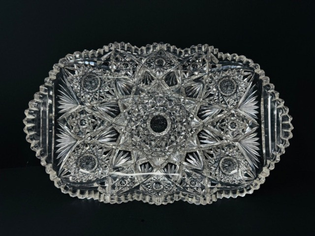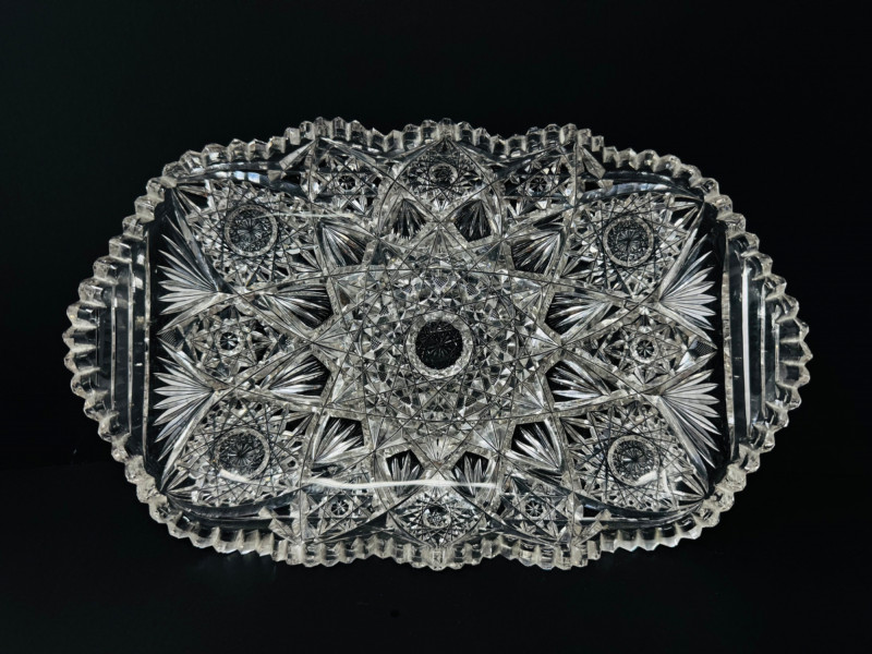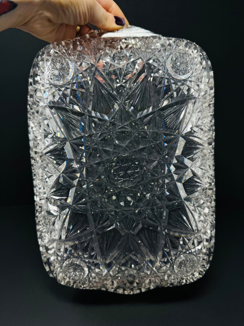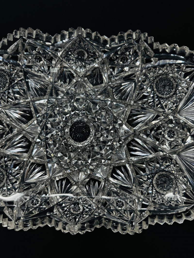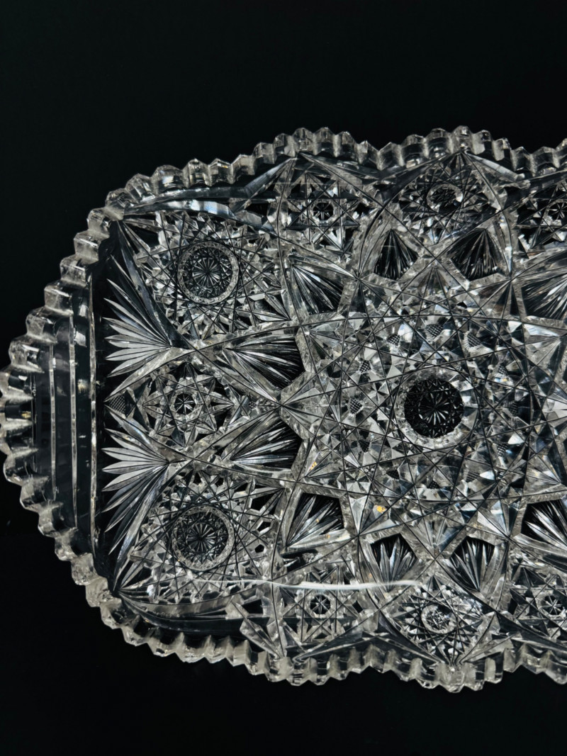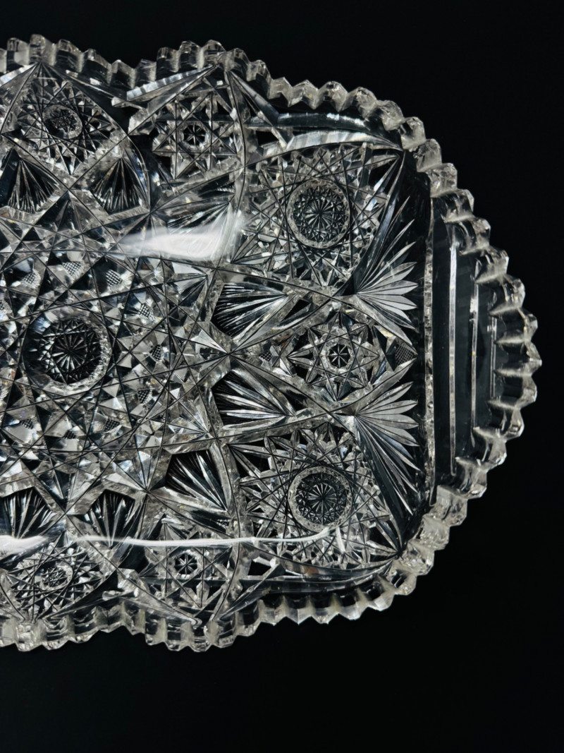 Cut Crystal Serving Tray – Starburst & Fan Pattern, Faceted Design.