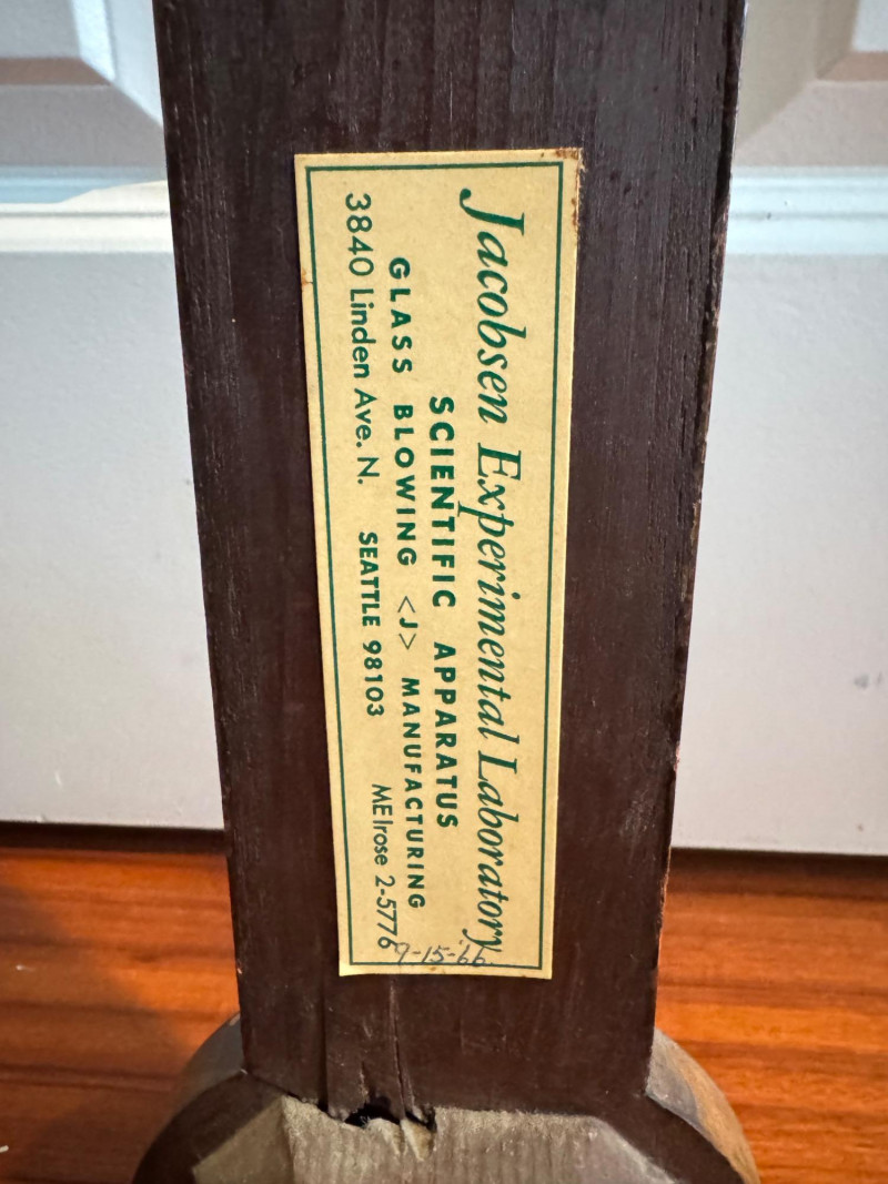 Antique Jacobsen Experimental Laboratory Stick Barometer – 37.5” Tall.