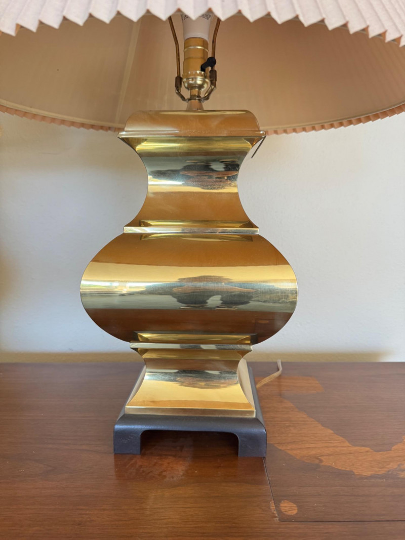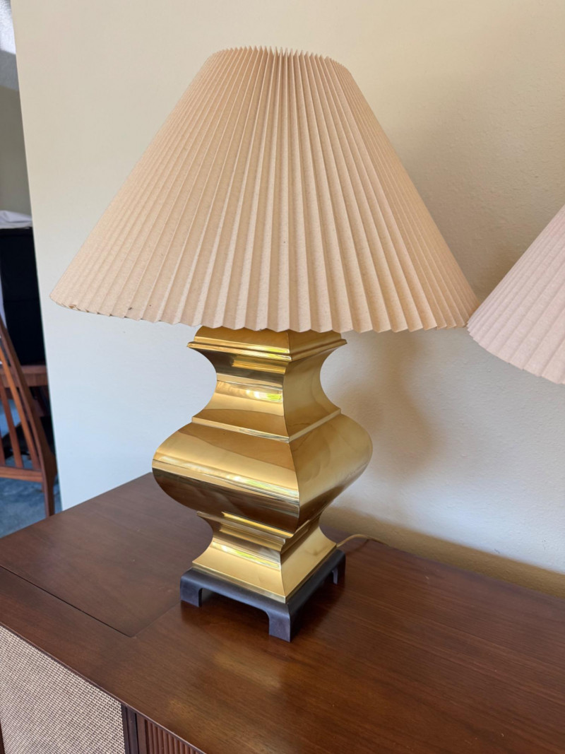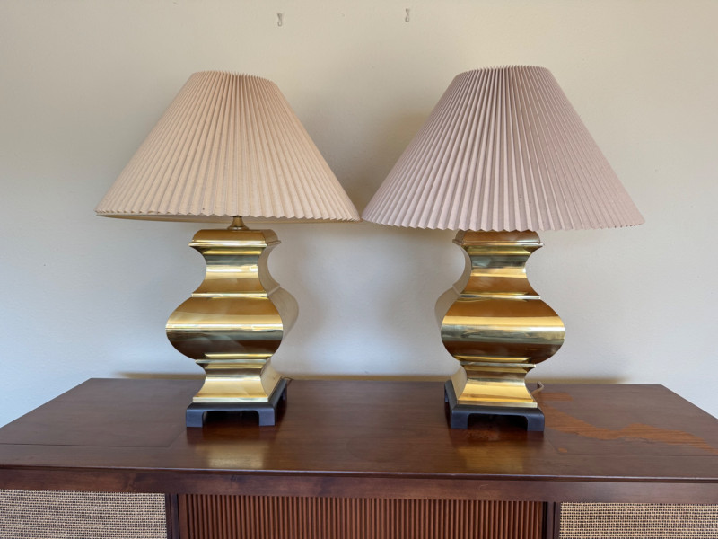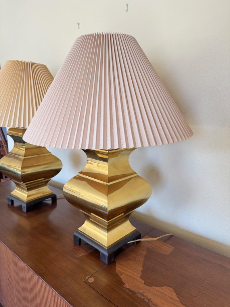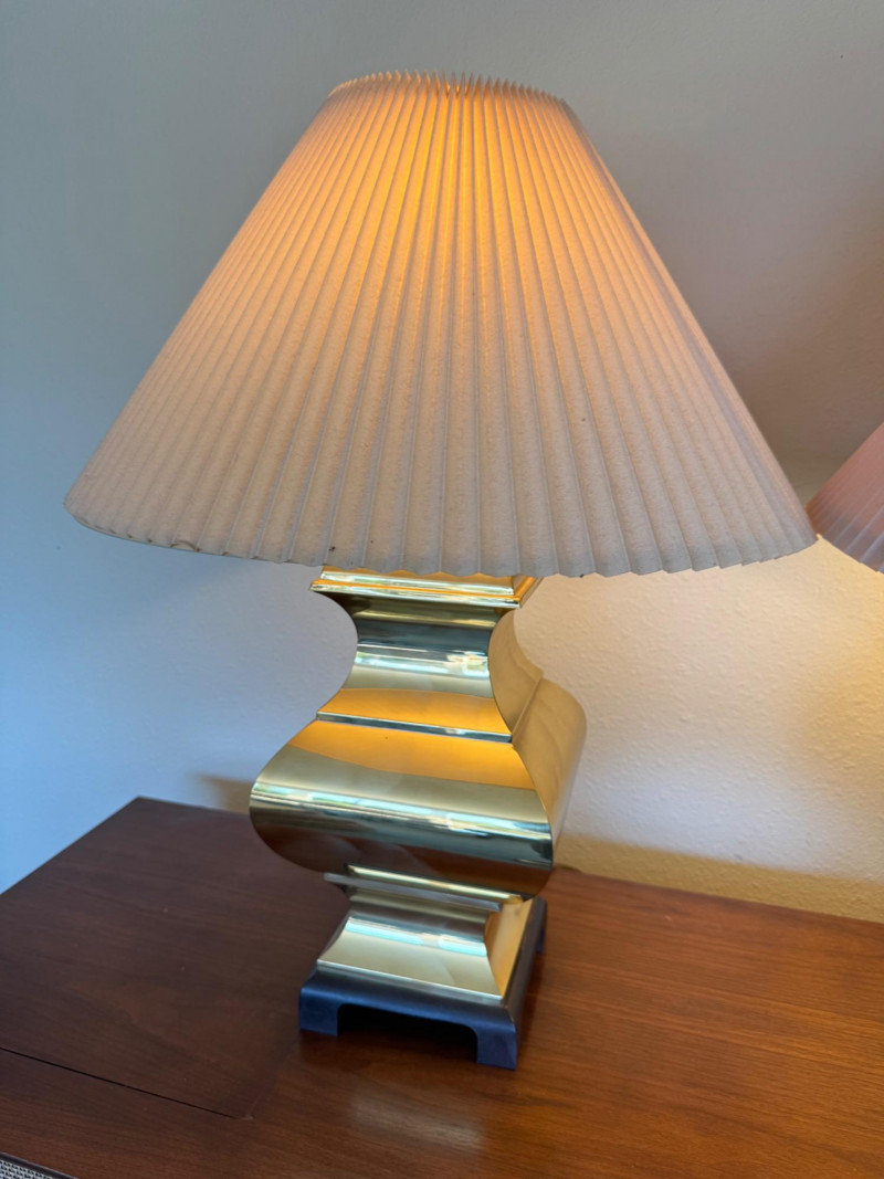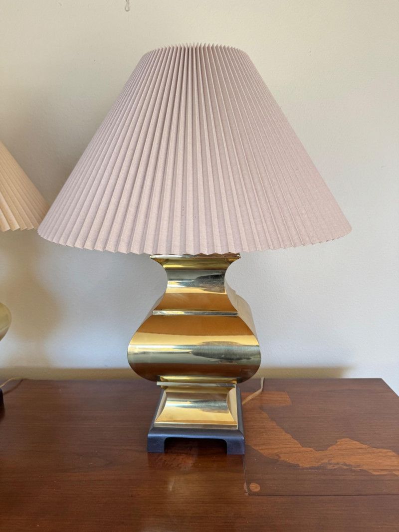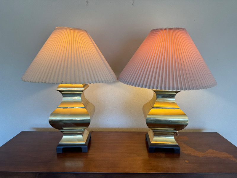 Lot # 29 - Pair of Curved Brass Table Lamps w/ Pleated Shades