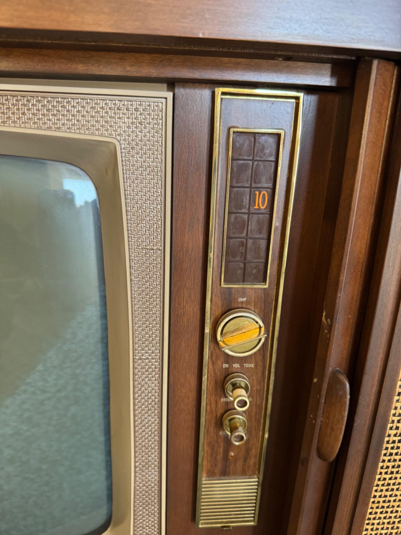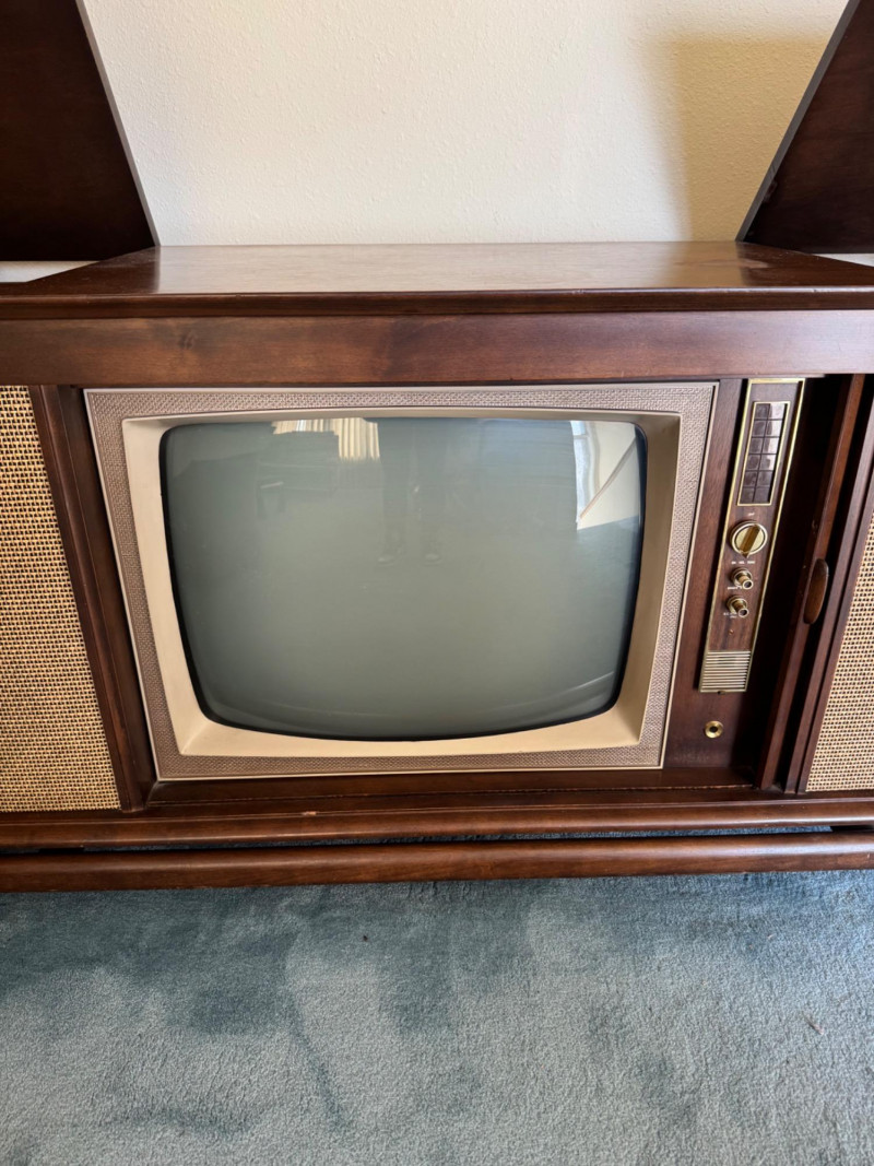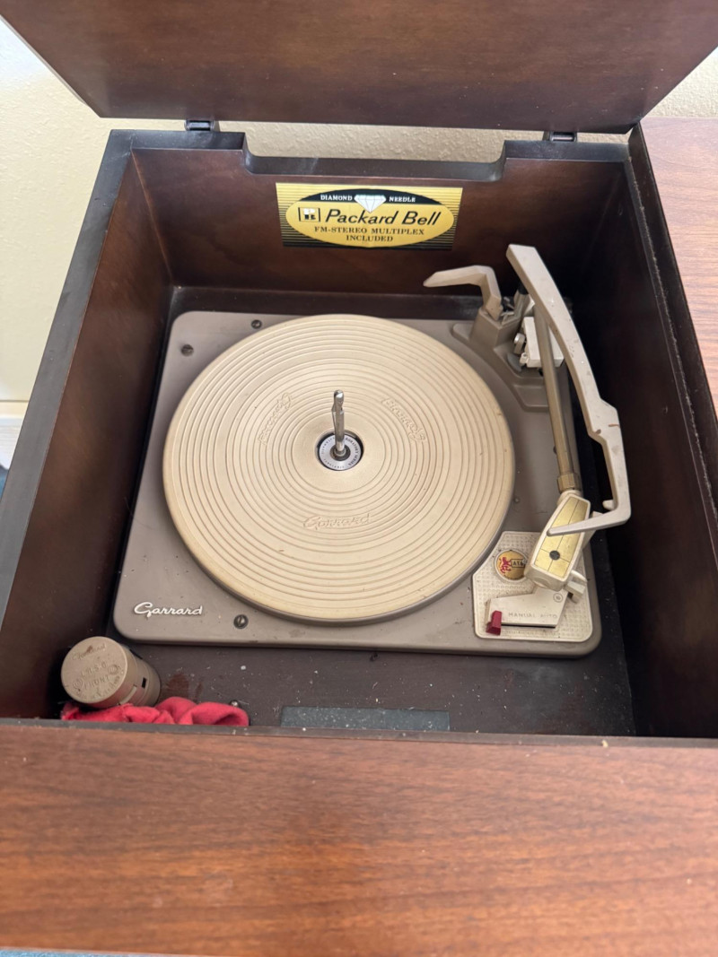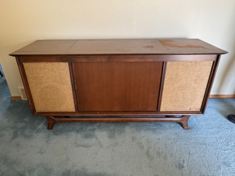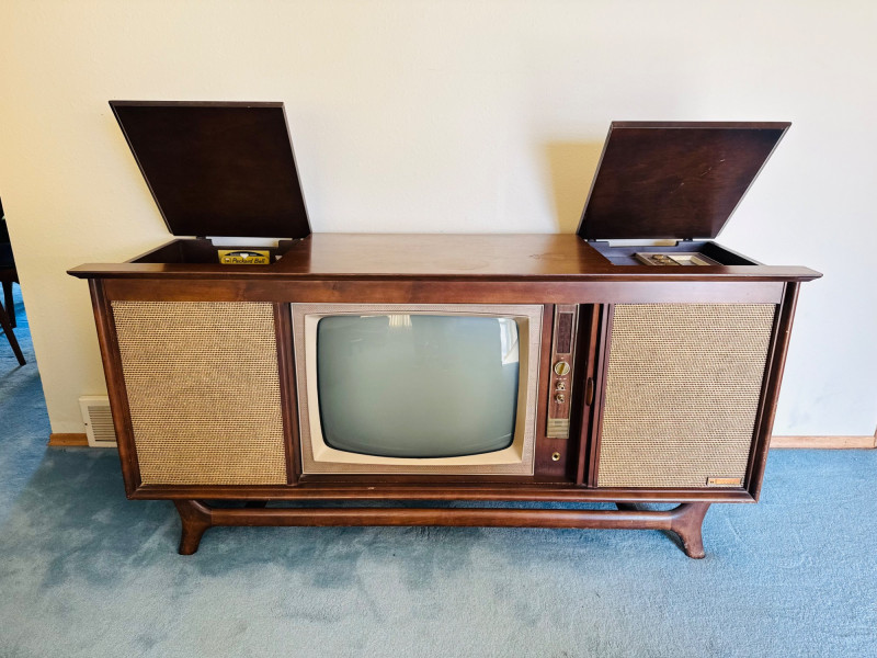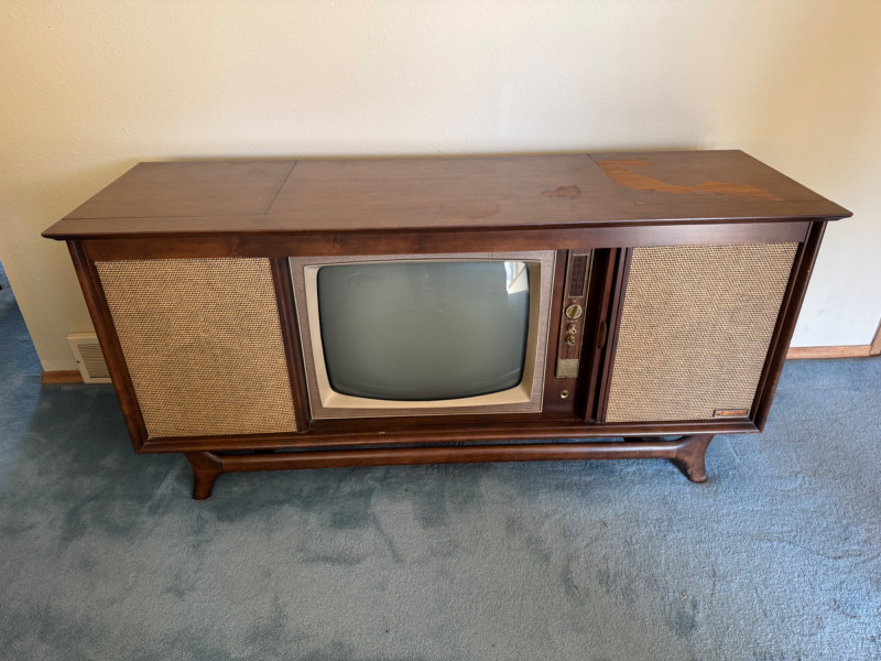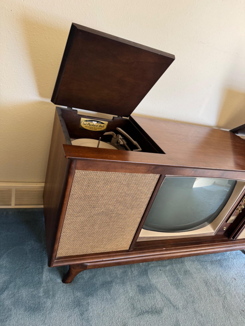 Mid-Century Stereo Cabinet: Garrard, Packard Bell, & TV Combo. Bidding on this lot is an agreement that: (1.) You will have at least 2 capable, able bodied persons to lift and load at a minimum. (2.) You will bring a hand truck and/or any other tools needed to remove this item. If these steps are not followed your item will be forfeit and no refund given.