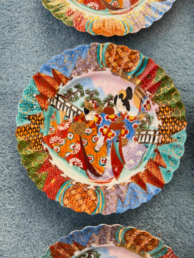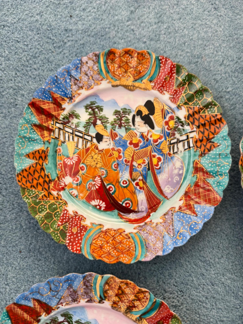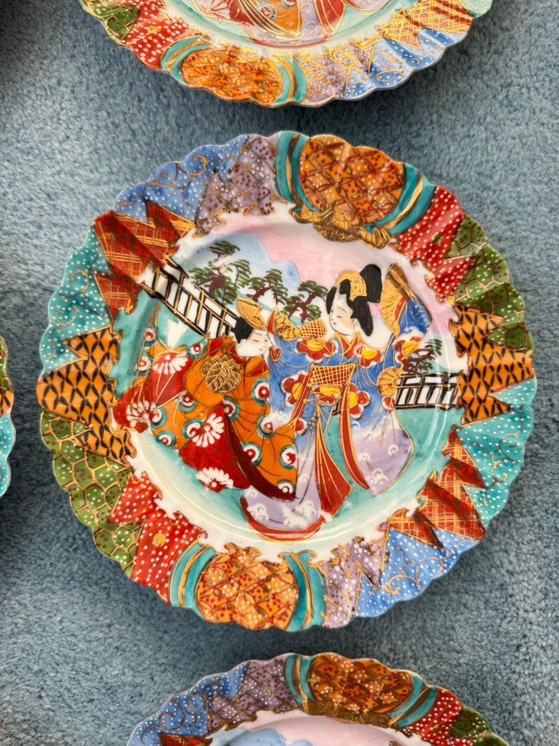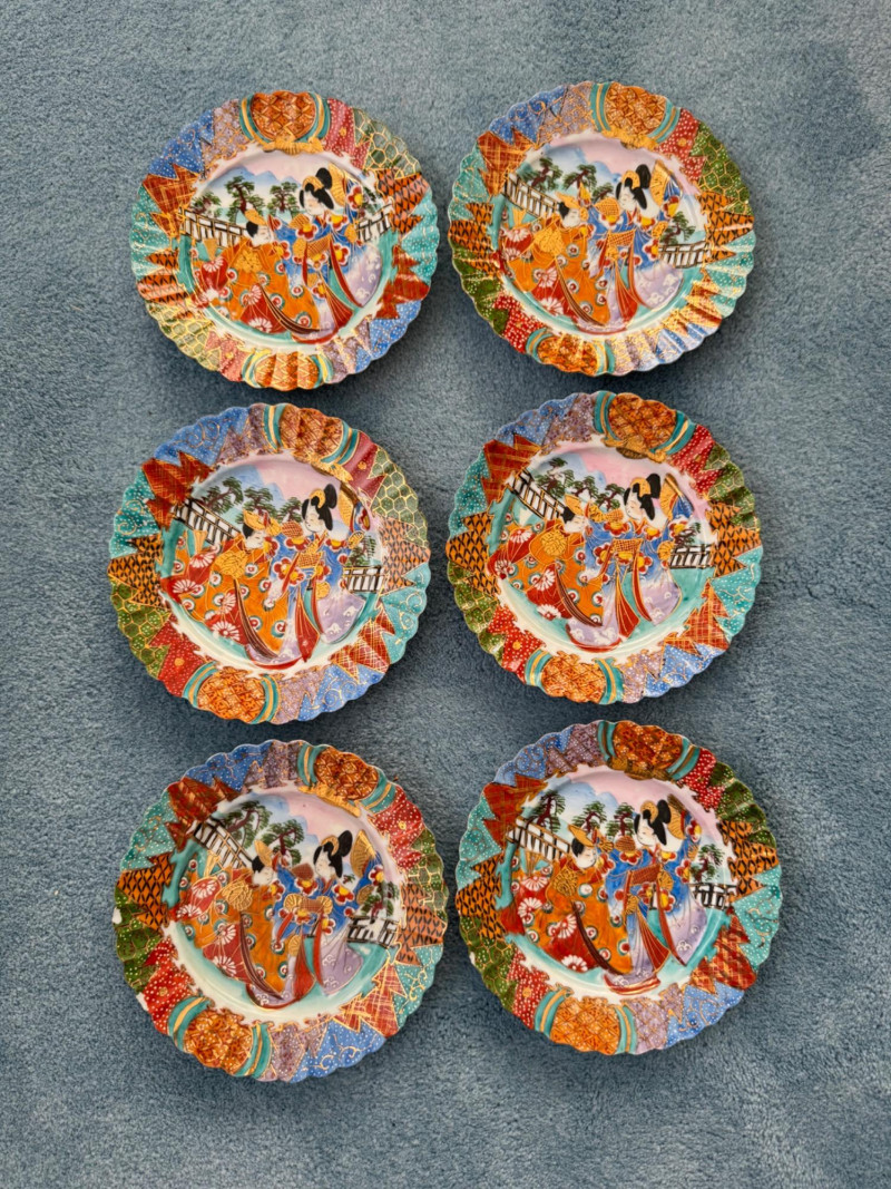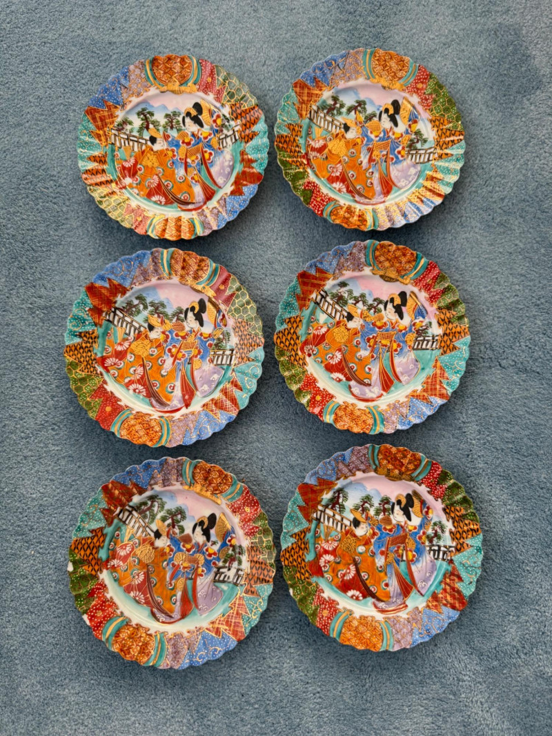 Lot # 8 - Set of 6 Vintage Nippon Porcelain Plates – Geisha Design, Meiji Era