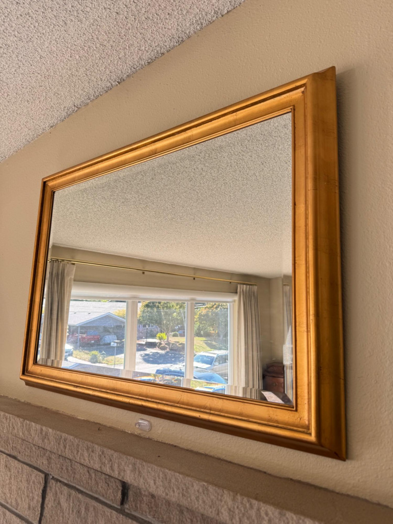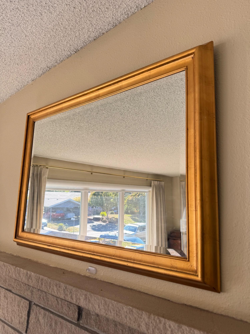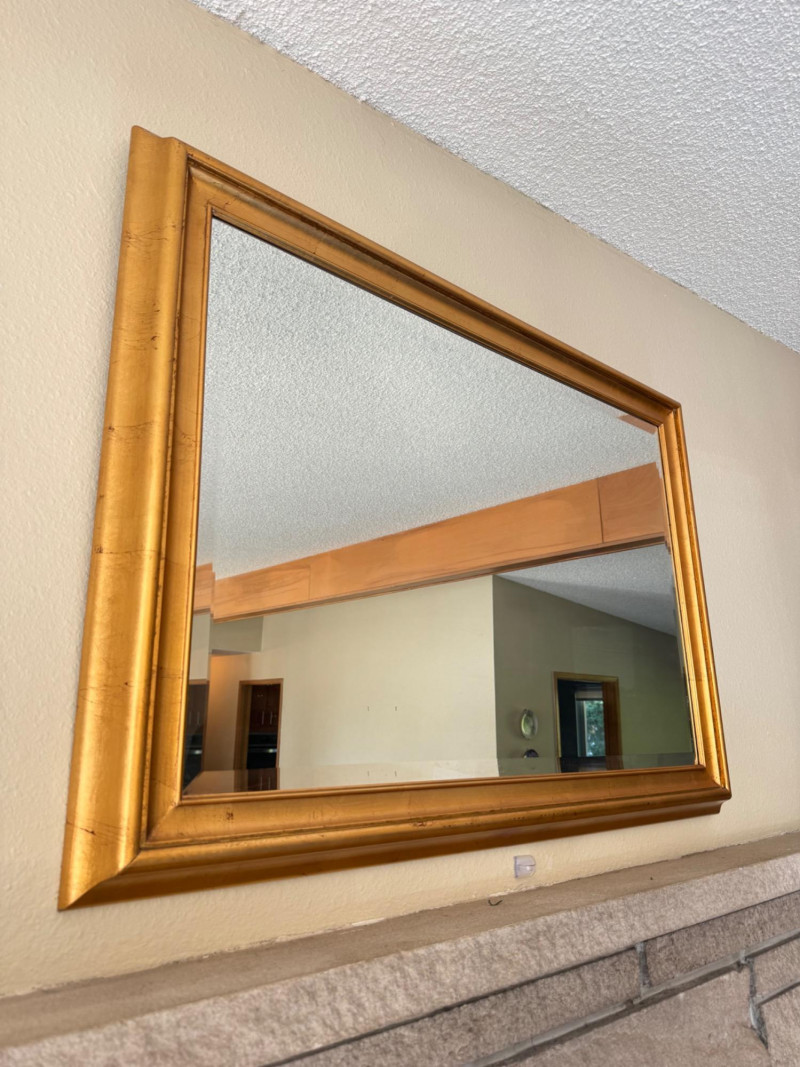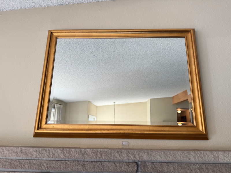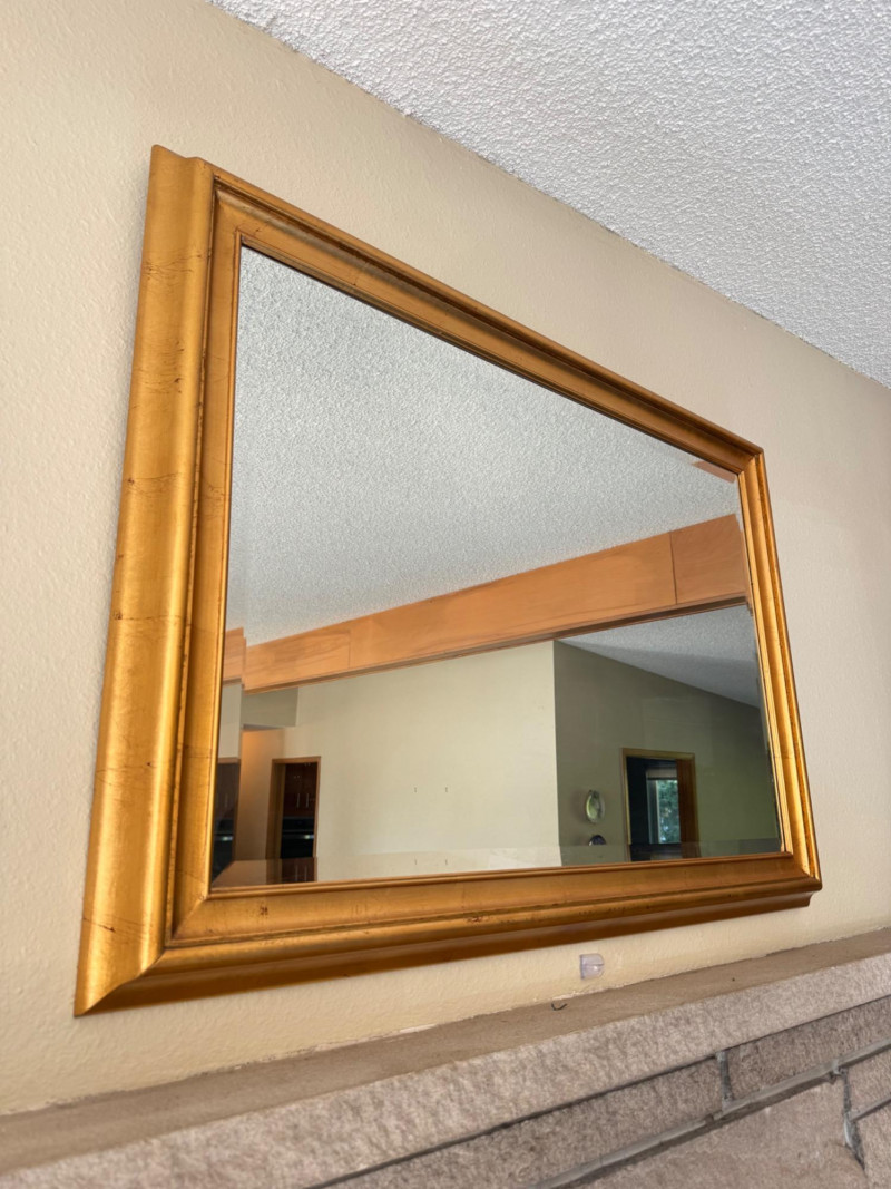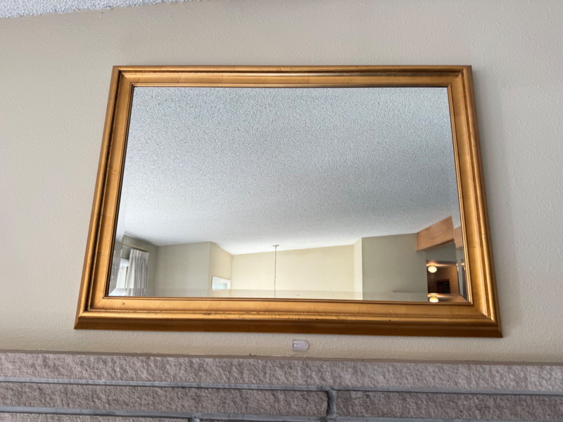 Rectangular Wall Mirror – Gold Tone Wood Frame.
