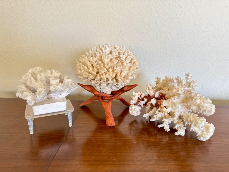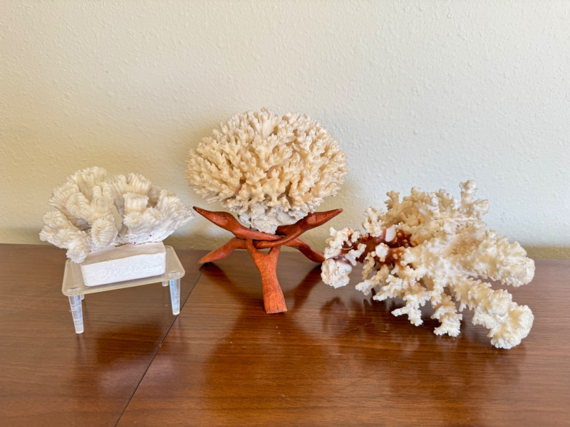 Set of 3 White Coral Specimens – Includes Barbados Piece.