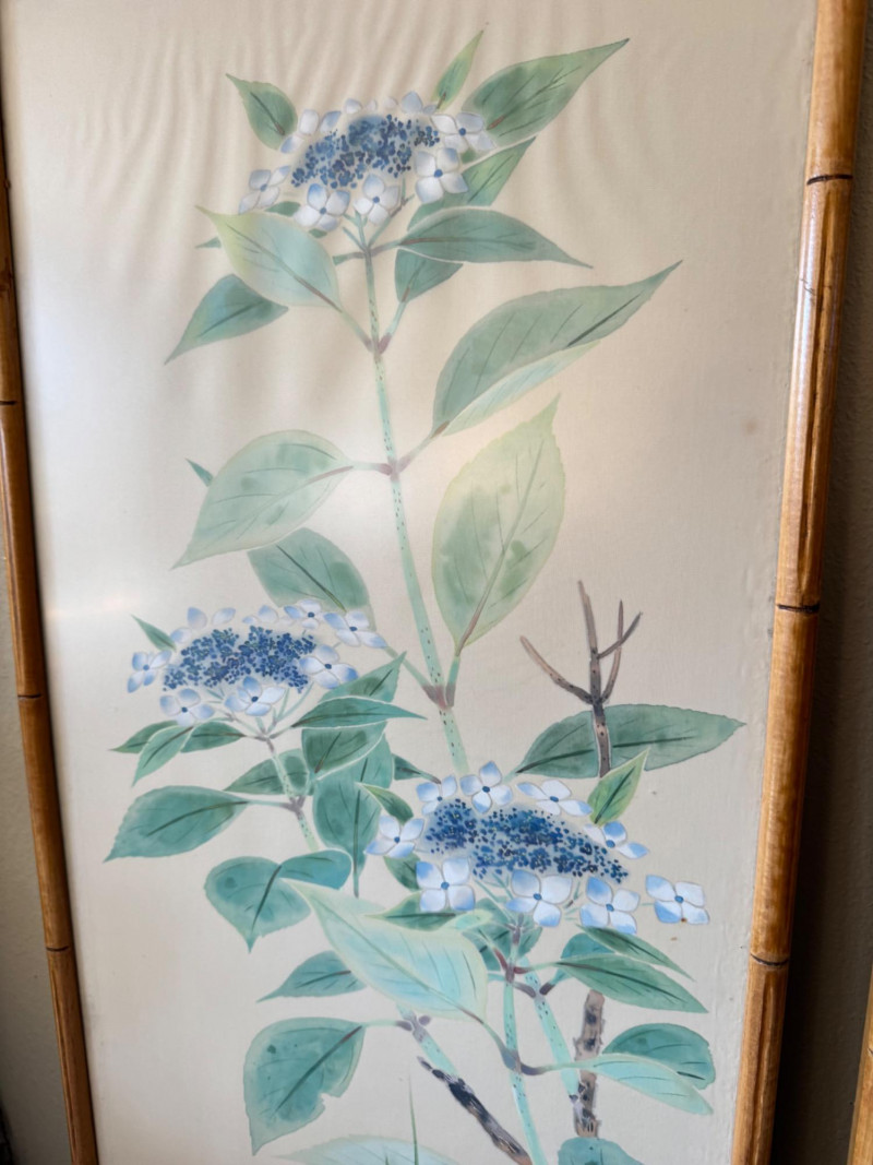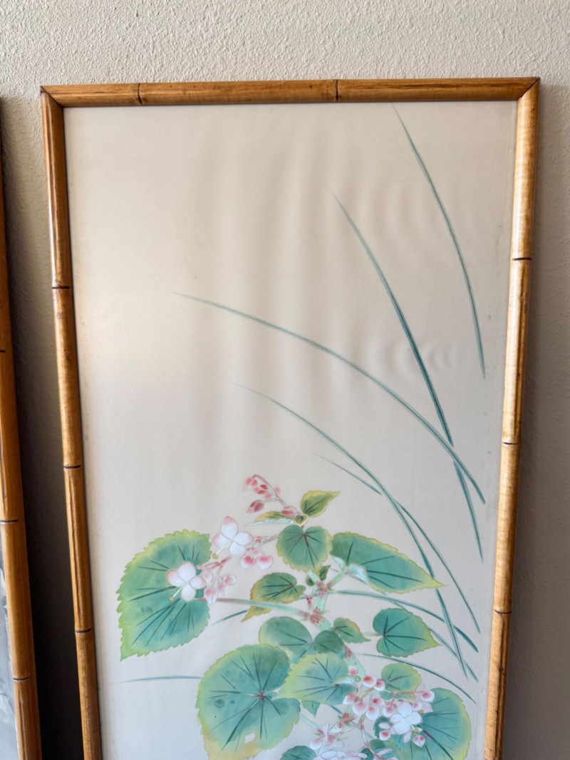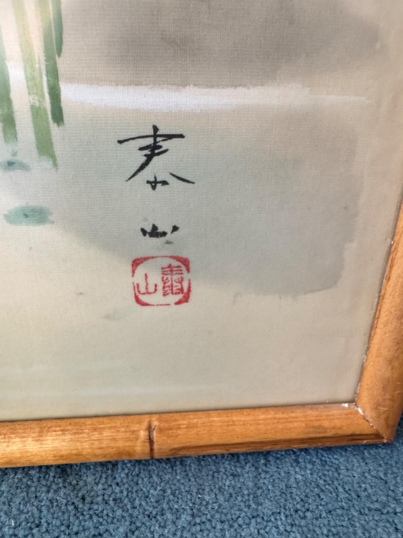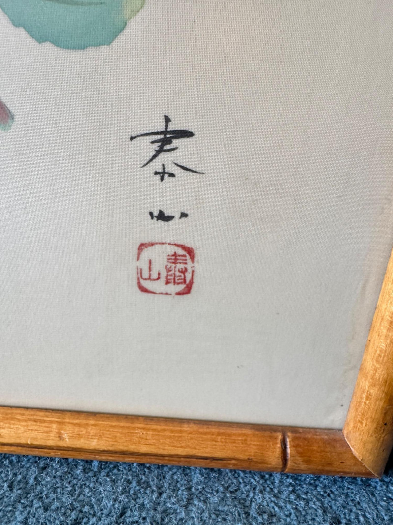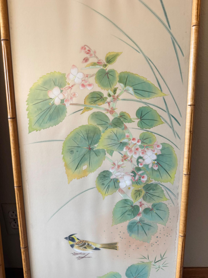 Lot # 15 - Set of 3 Framed Asian Silk Artwork – Birds, Blossoms & Boat Scene