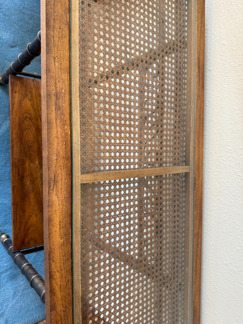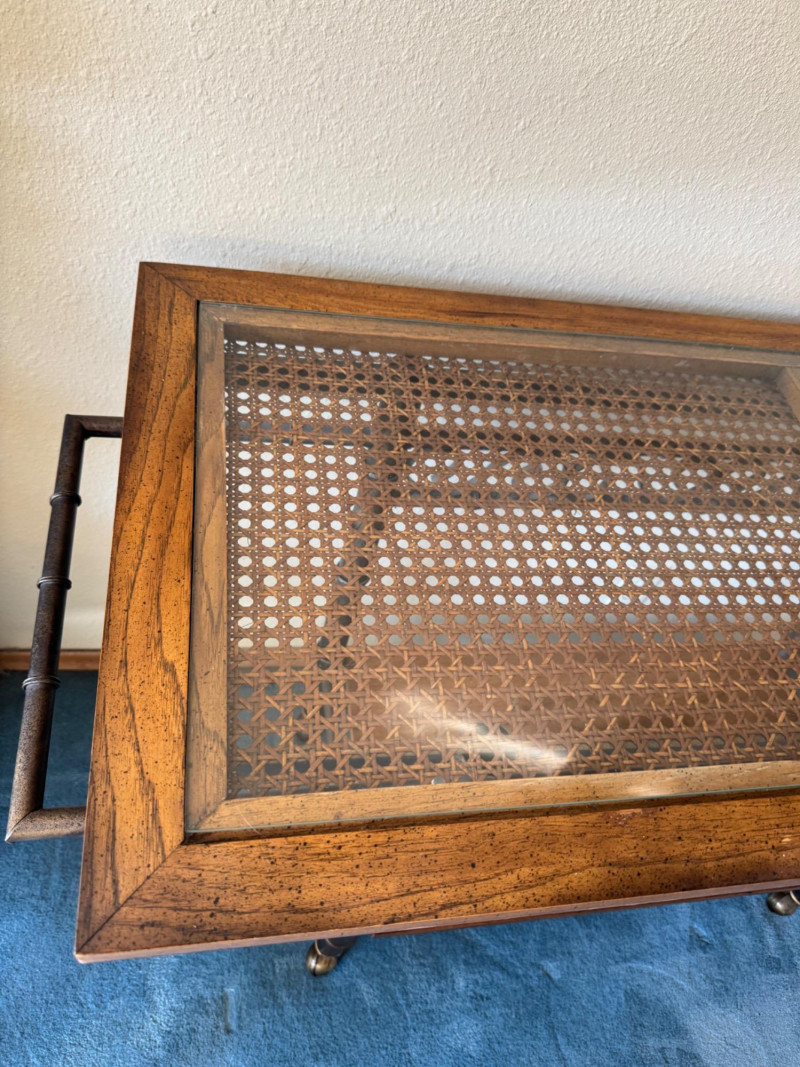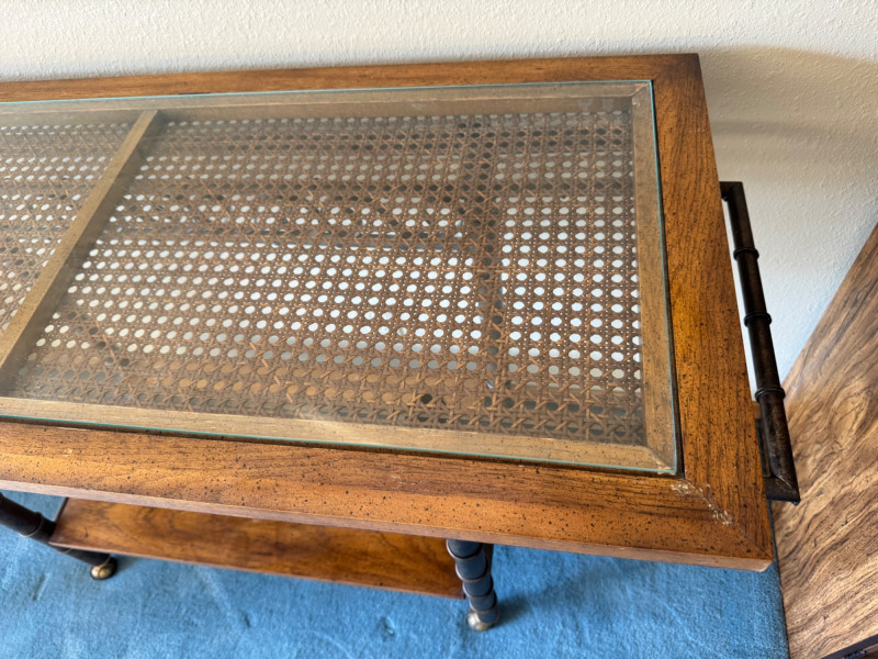 Mid Century Rolling Bar or Console Table w/ Caning Detail.