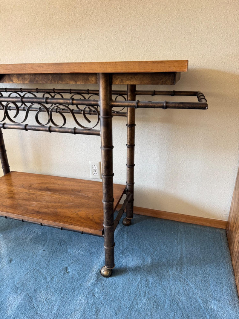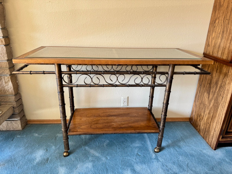 Lot # 16 - Mid Century Rolling Bar or Console Table w/ Caning Detail