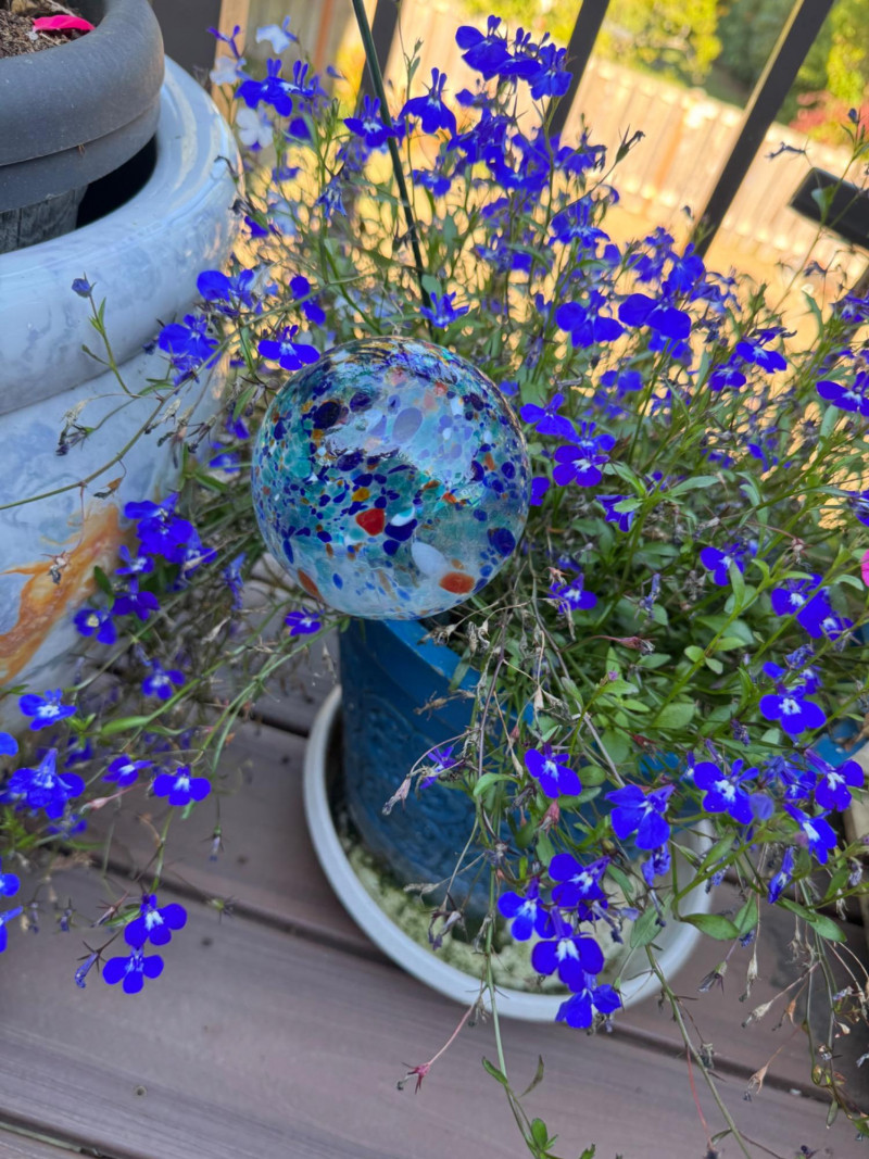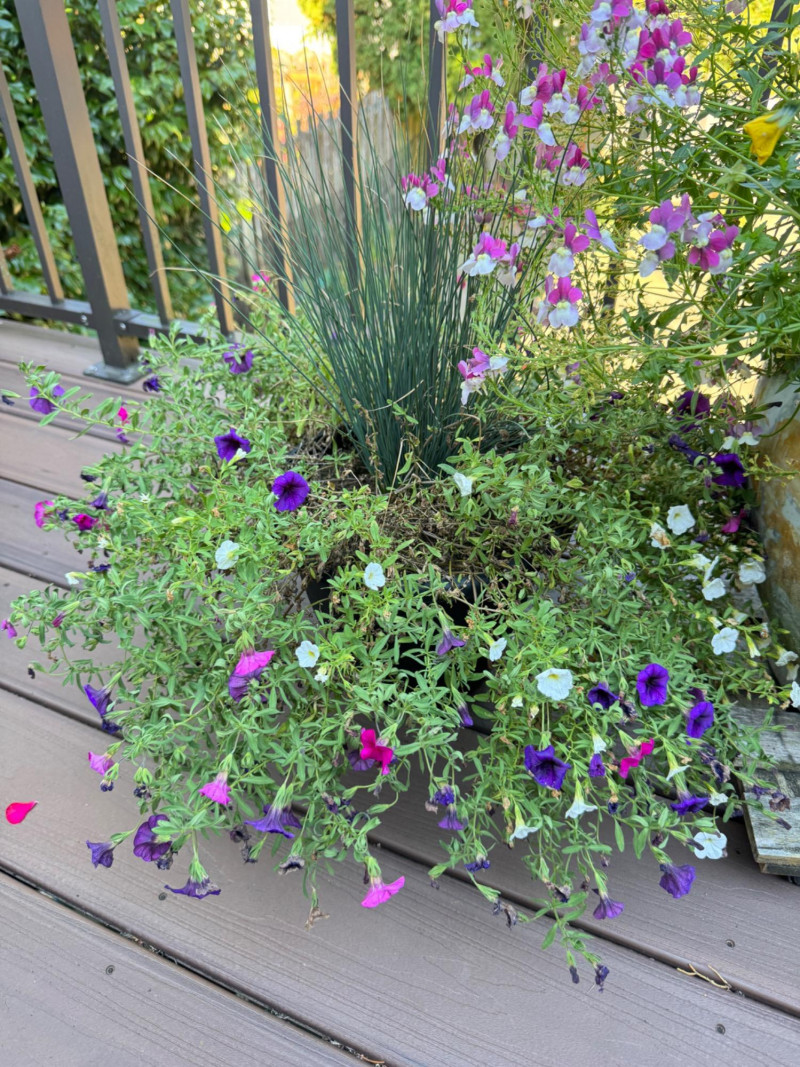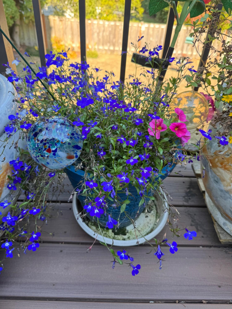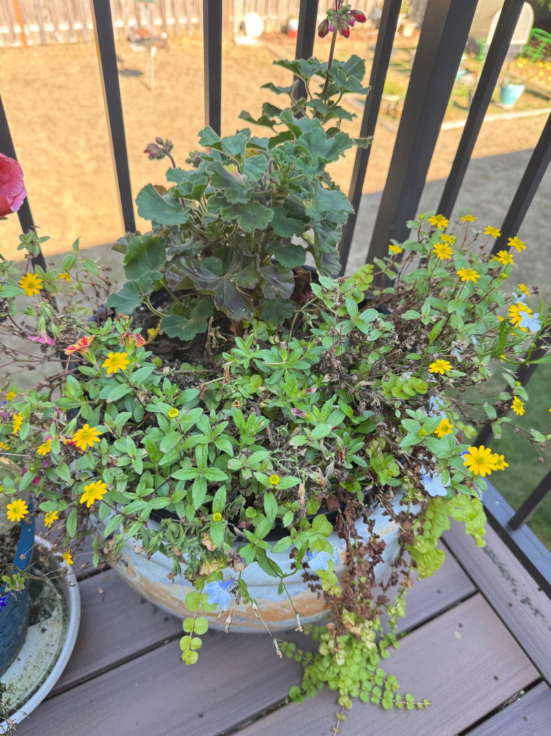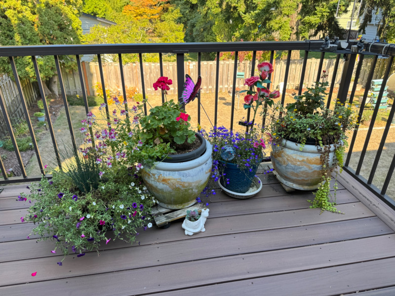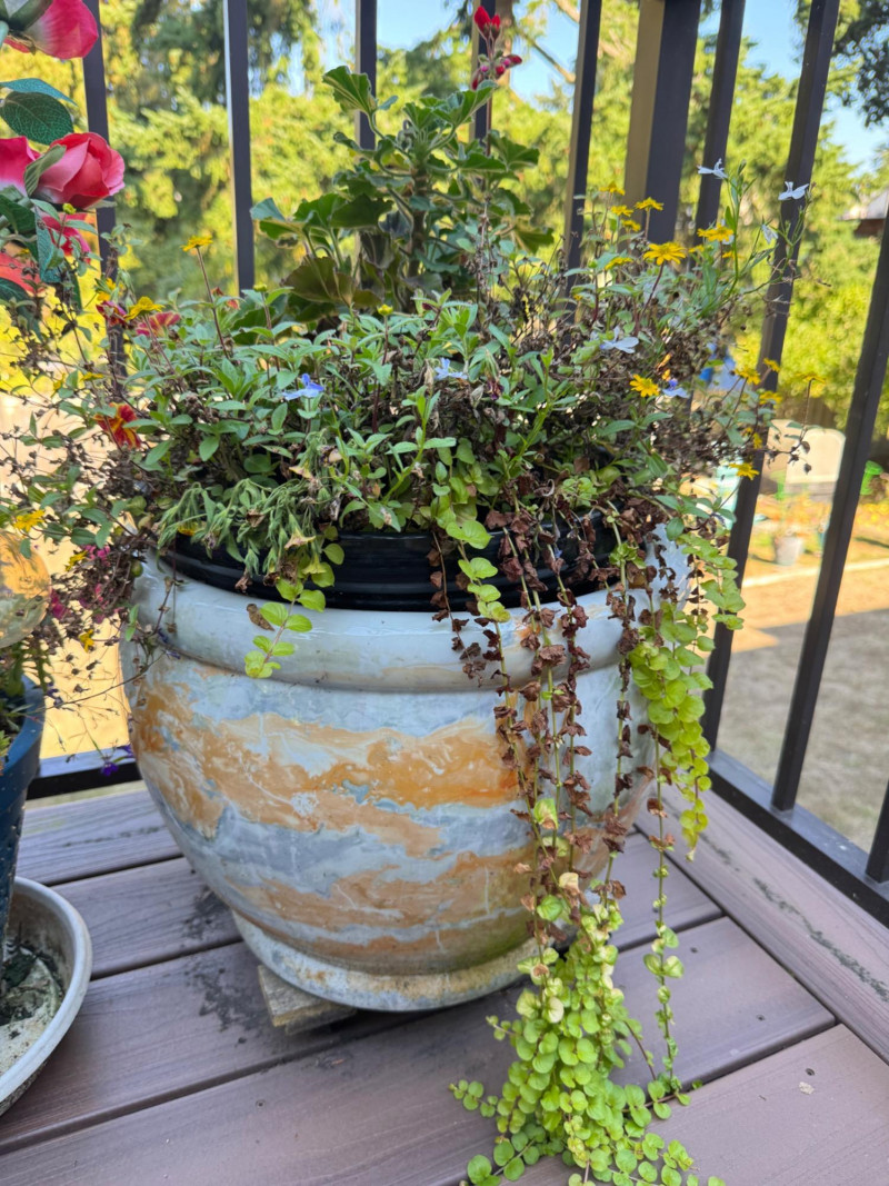 Set of Outdoor Ceramic Planters w/ Flowers & Turtle Pot Décor.