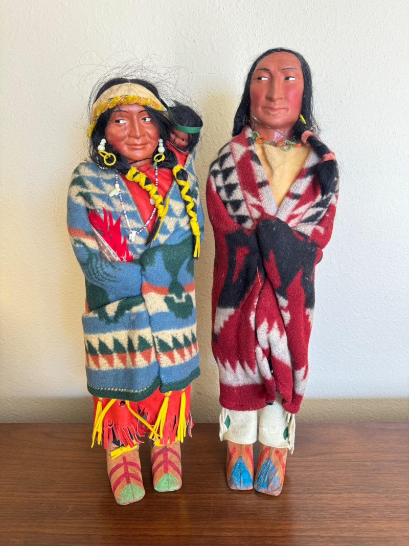Lot # 27 - Pair of Vintage Skookum Dolls, Male Chief & Female w/ Baby – See Notes